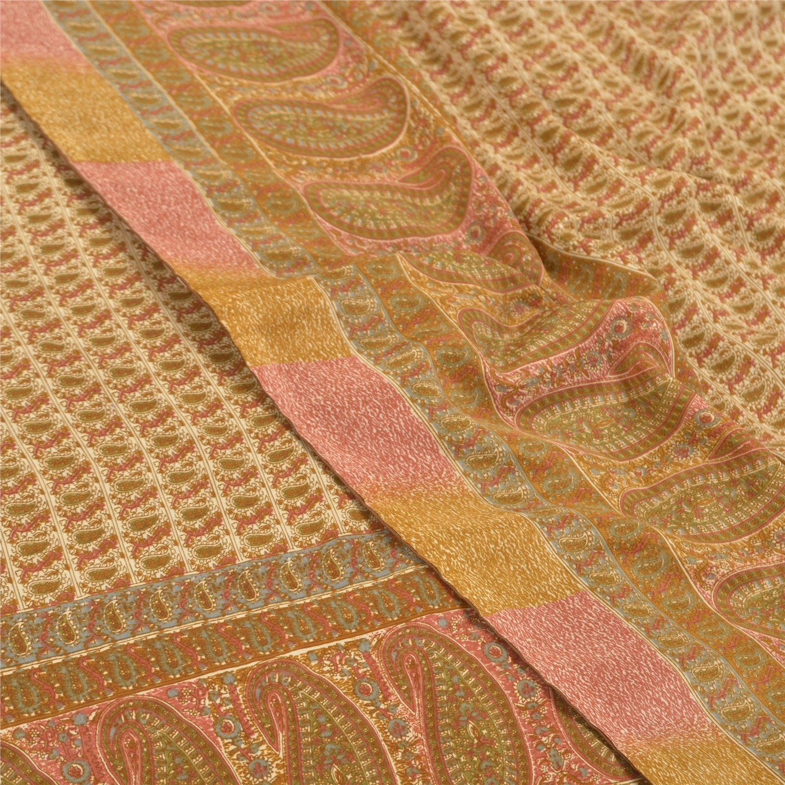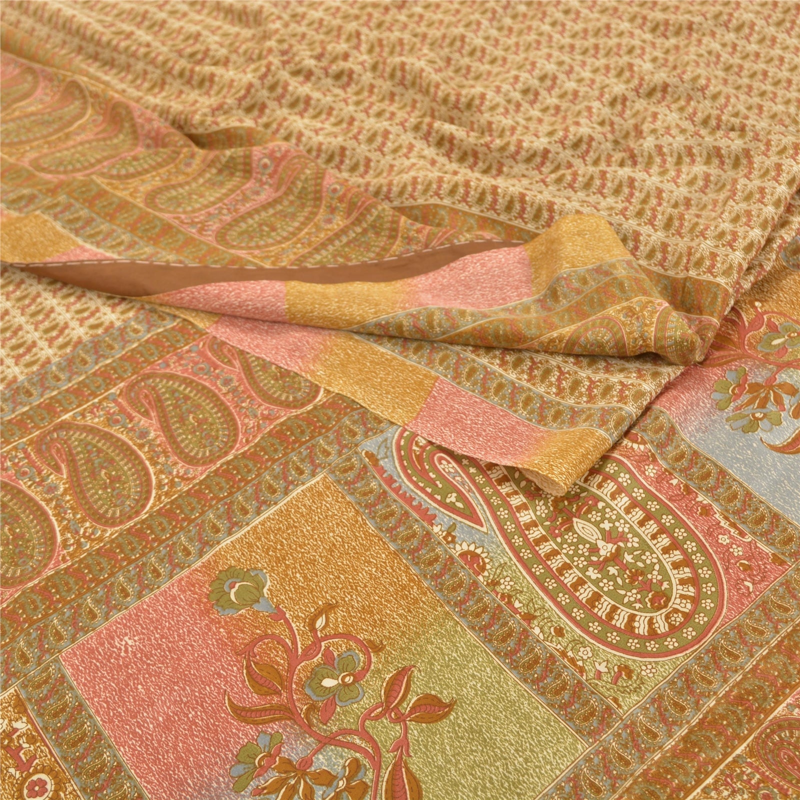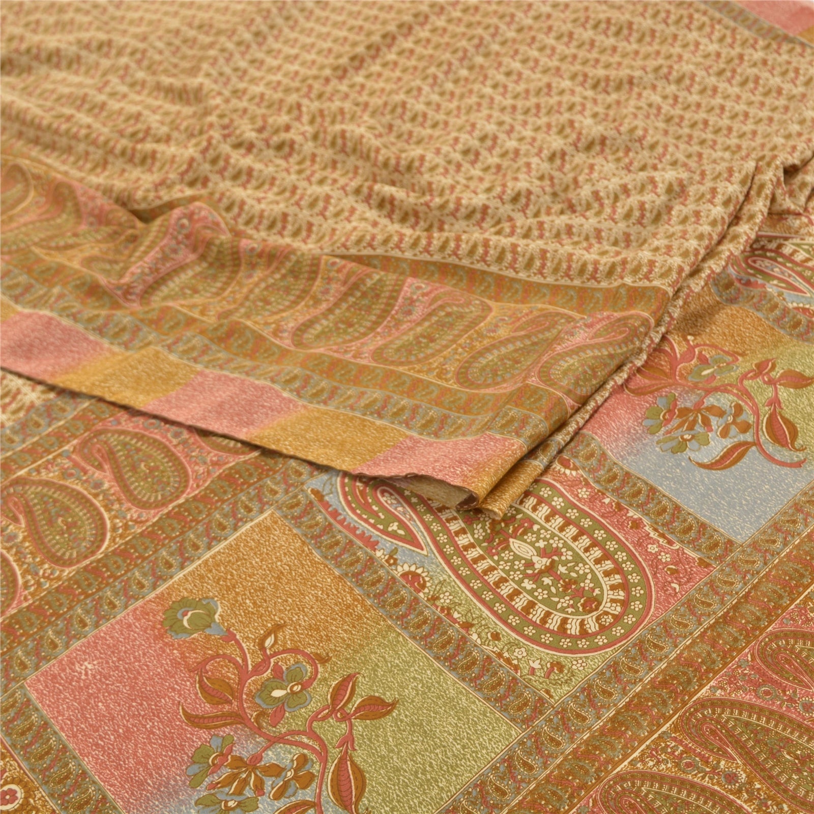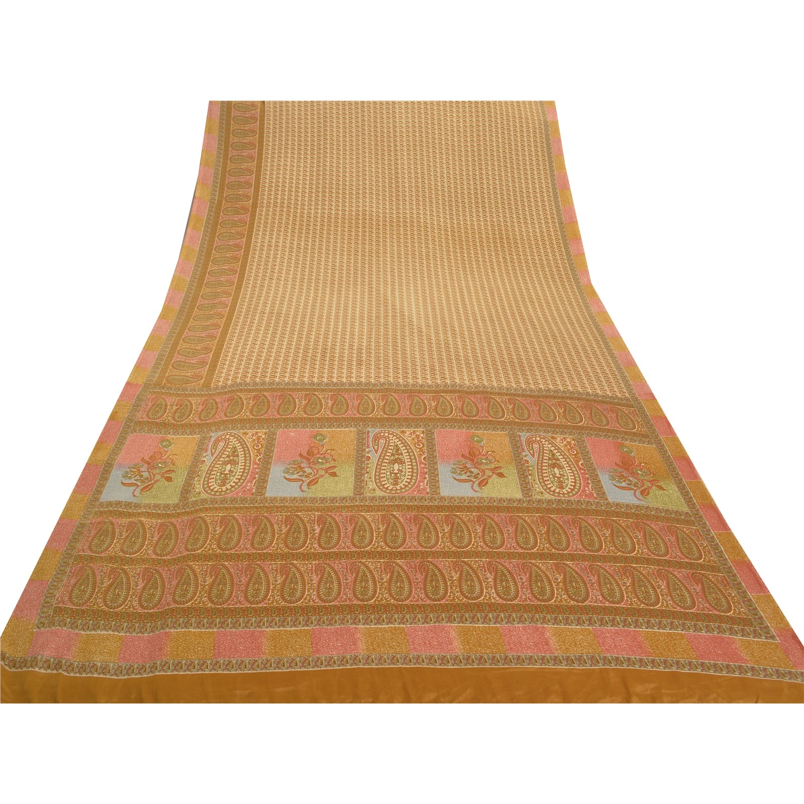 Sanskriti Vintage Brown Sarees Crepe Silk Printed Sari Soft Craft Sustainable Fabric