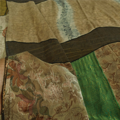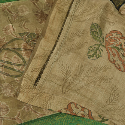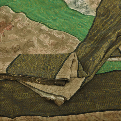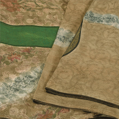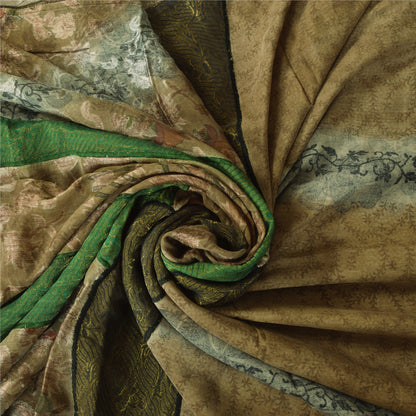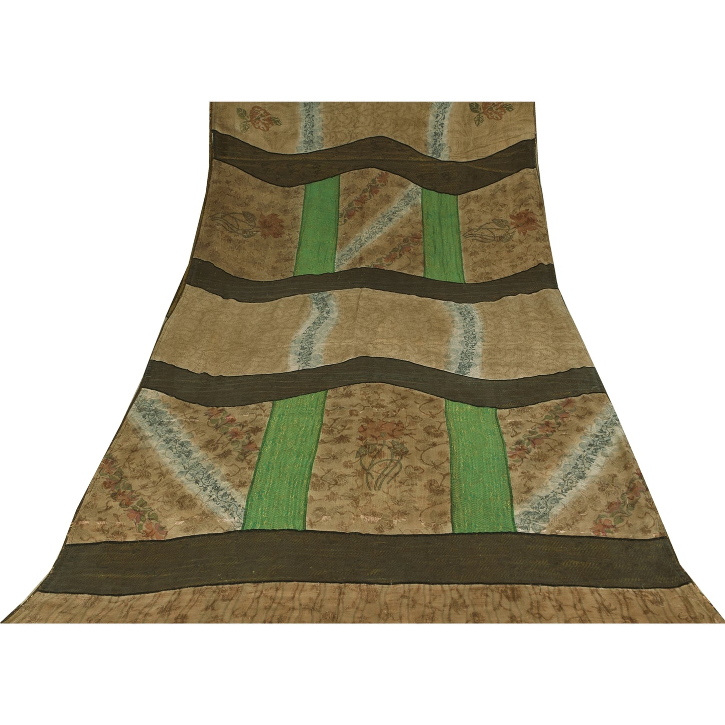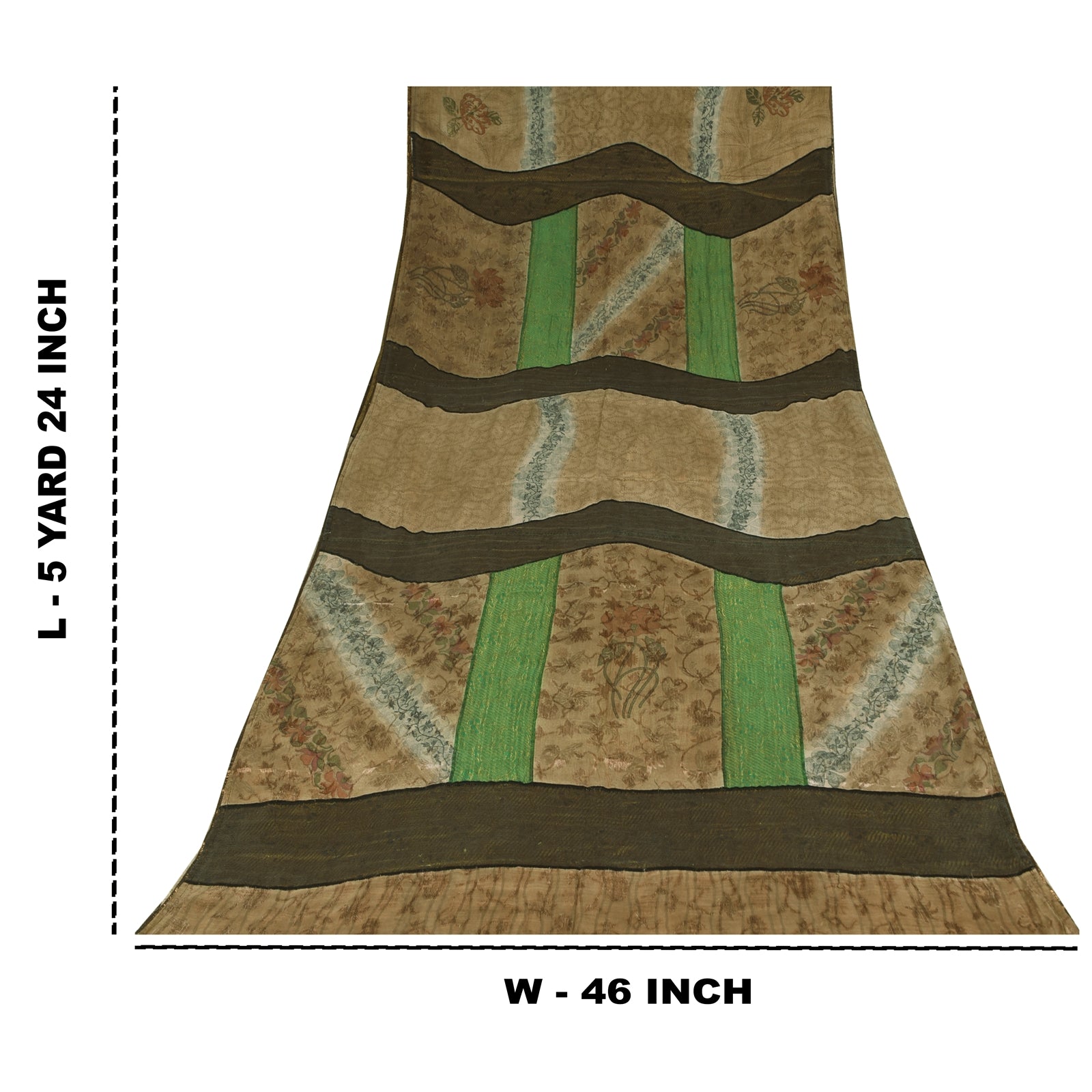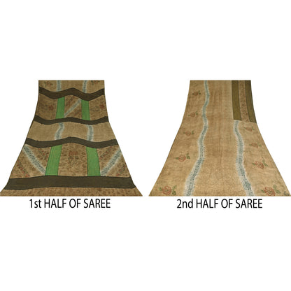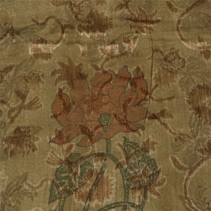 Sanskriti Vintage Brown Sarees Pure Crepe Silk Woven Printed Sari Craft Sustainable Fabric