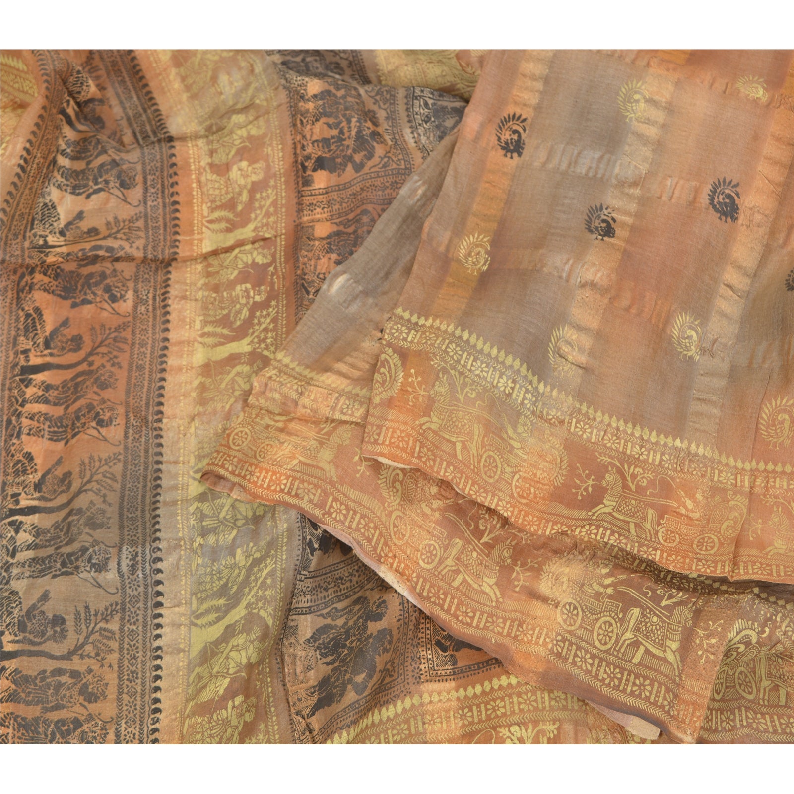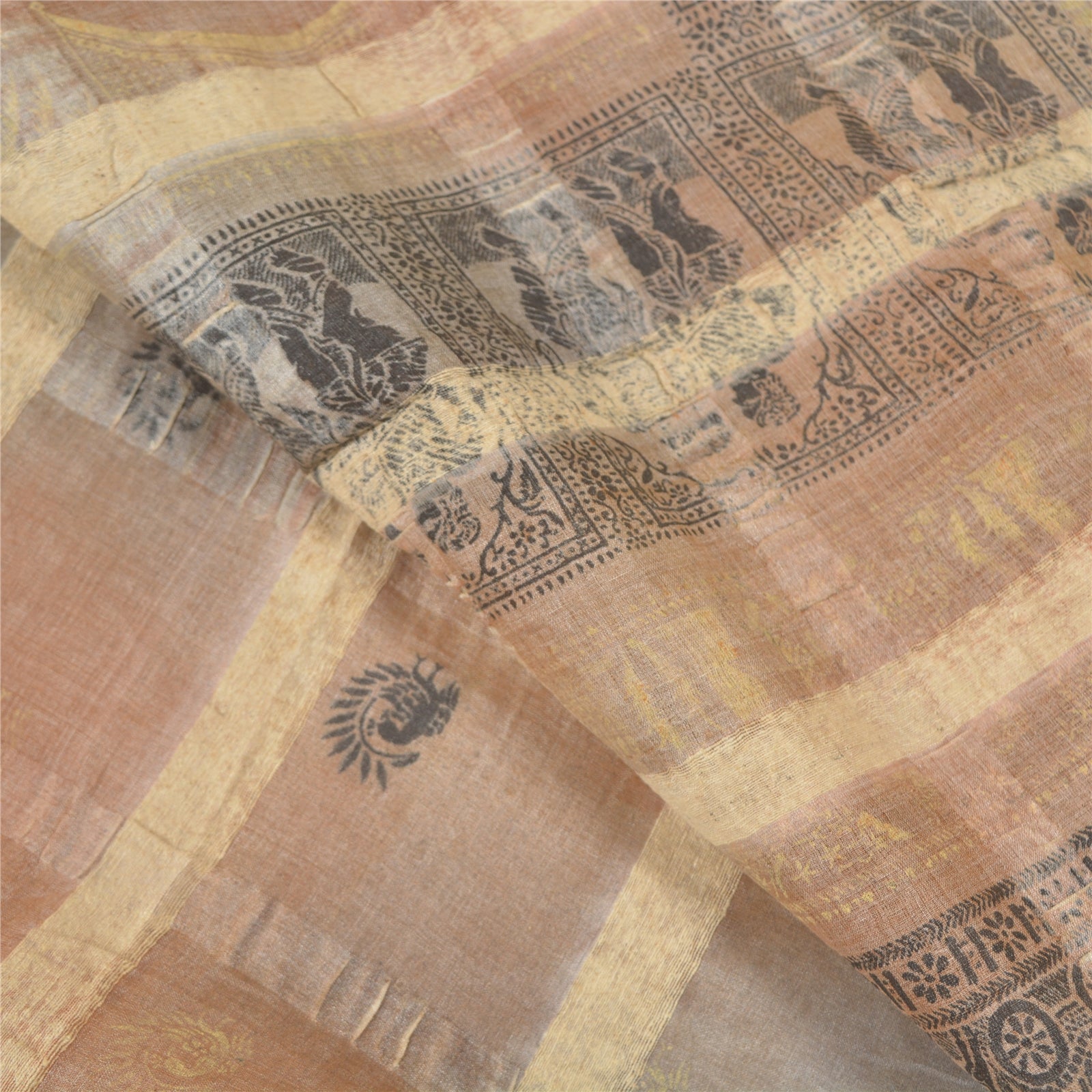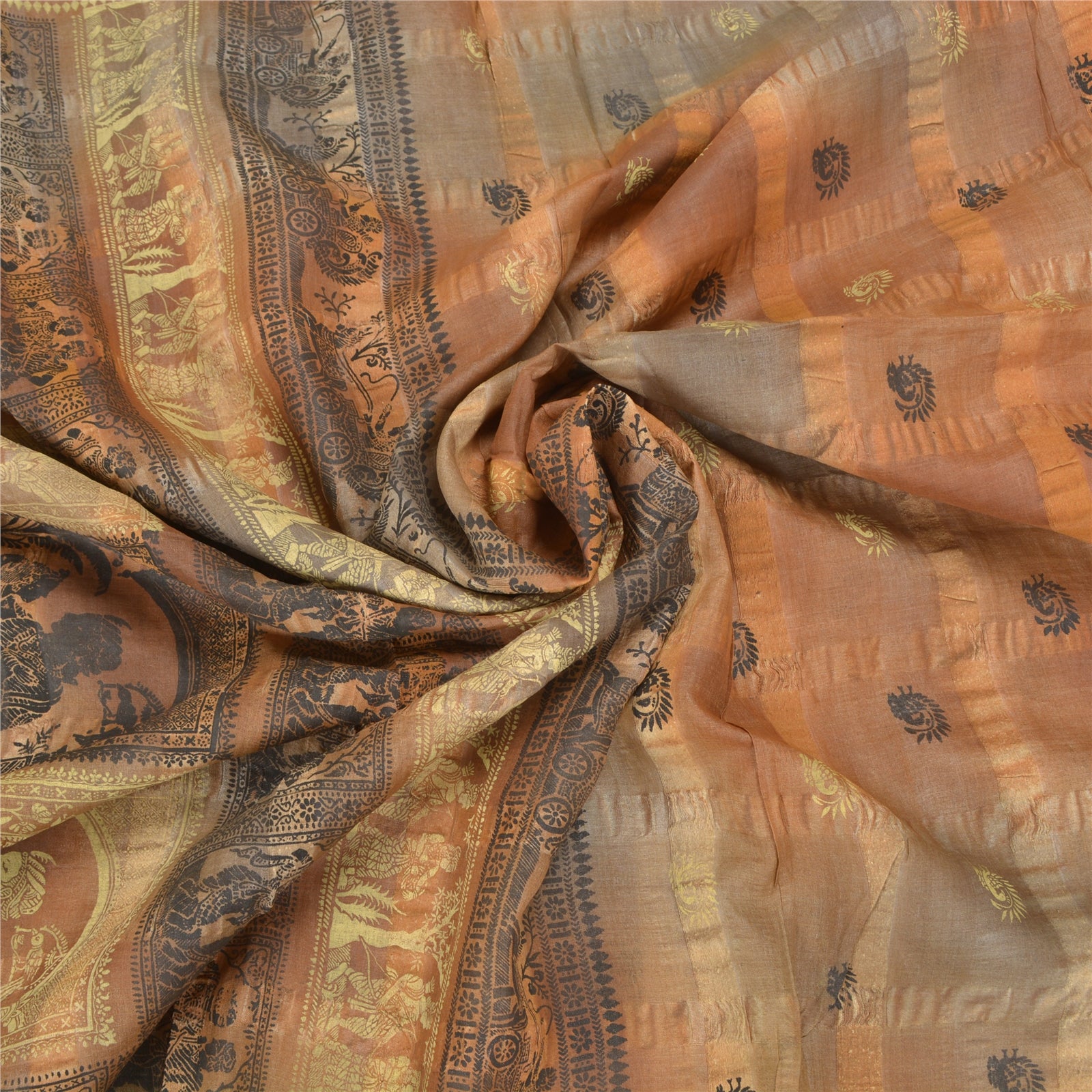 Sanskriti Vintage Brown Sarees Pure Silk Block Printed Craft Sari Sustainable Fabric