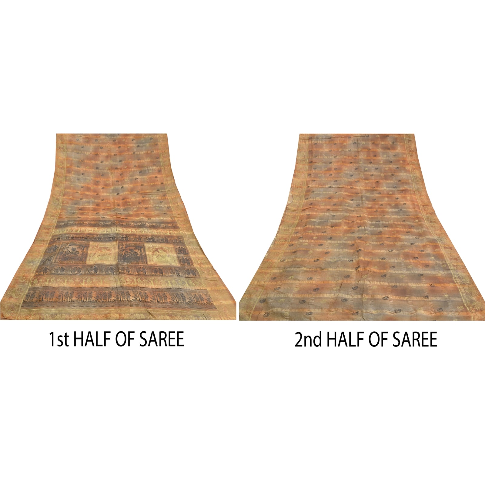 Beautiful shades of brown colored 100% Pure Silk Hand-Woven Sari. Pallu & Border of this sari has block print work with human and floral design. You can see similar block print work with floral design in center part of the sari. What is special about this saree? Graceful block print work with interesting pattern is really enhancing the beauty of the saree. This saree can be used for various crafting ideas too. Use it for dress designing, as a throw, as window dressing, upholstery, table linen and much more. Let your creative juices flow. Please note - Buyers from Australia are required to pay postage. Registered air mail to Australia is temporarily suspended due to the pandemic. Once it goes back to normal we'll revert to free shipping. For now, we are using Aramex and DHL to ship orders. These services are expensive but faster compared to regular mail. Thank you for your support. If you are buying in bulk we will refund whatever excess is left. Contact us after that purchase. For USA buyers - Single item ships via registered air mail, buy 1 more to get FedEx.
