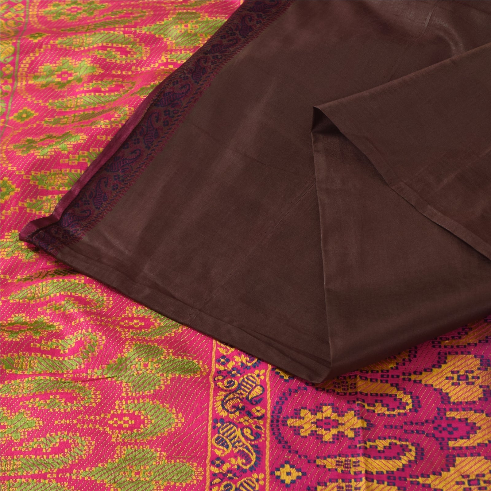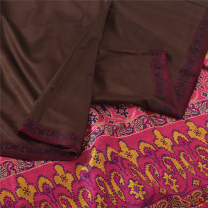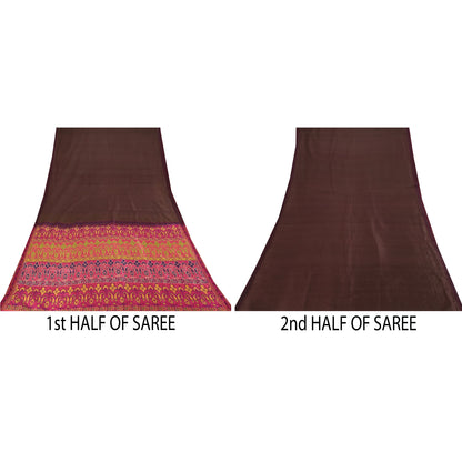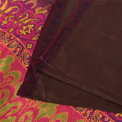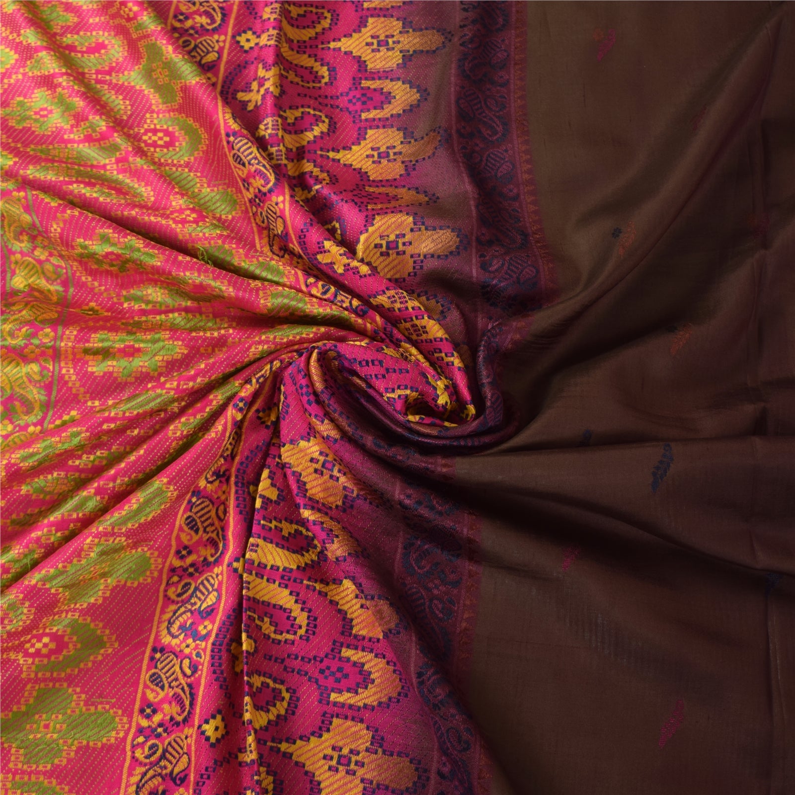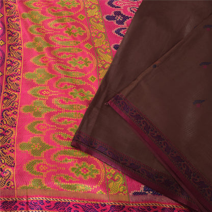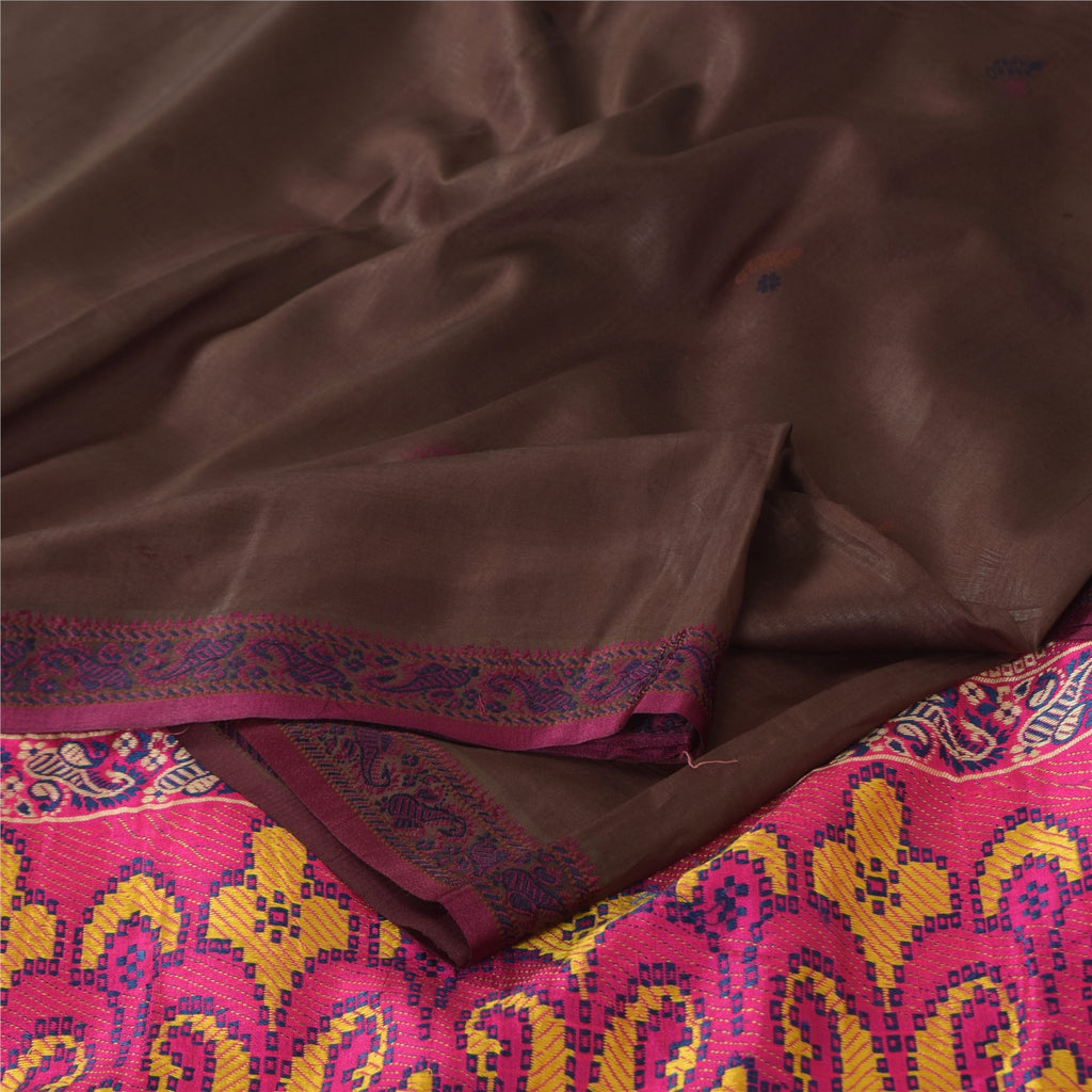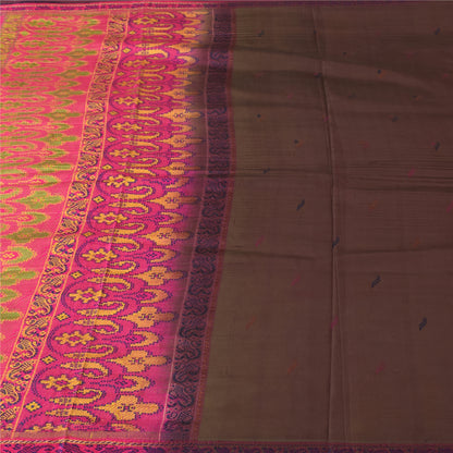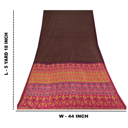 Sanskriti Vintage Brown Sarees Pure Silk Woven Premium Sari 5+ yrd Craft Fabric
