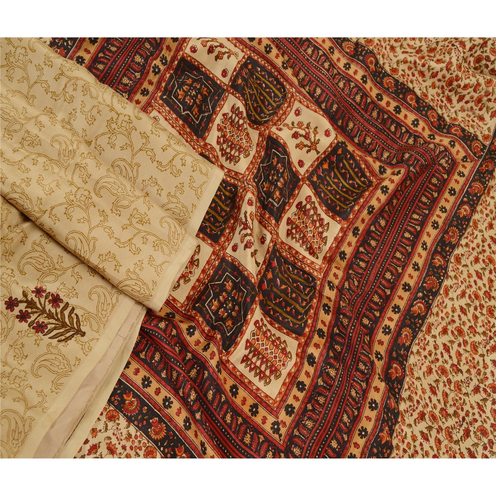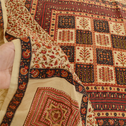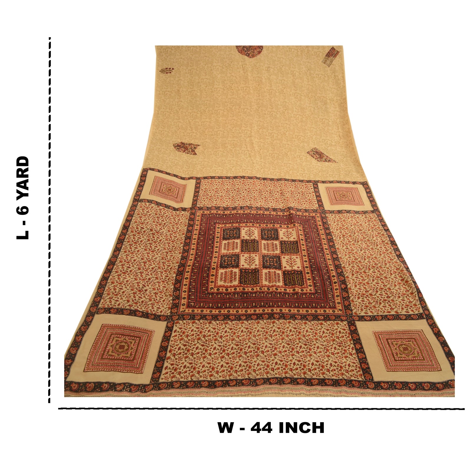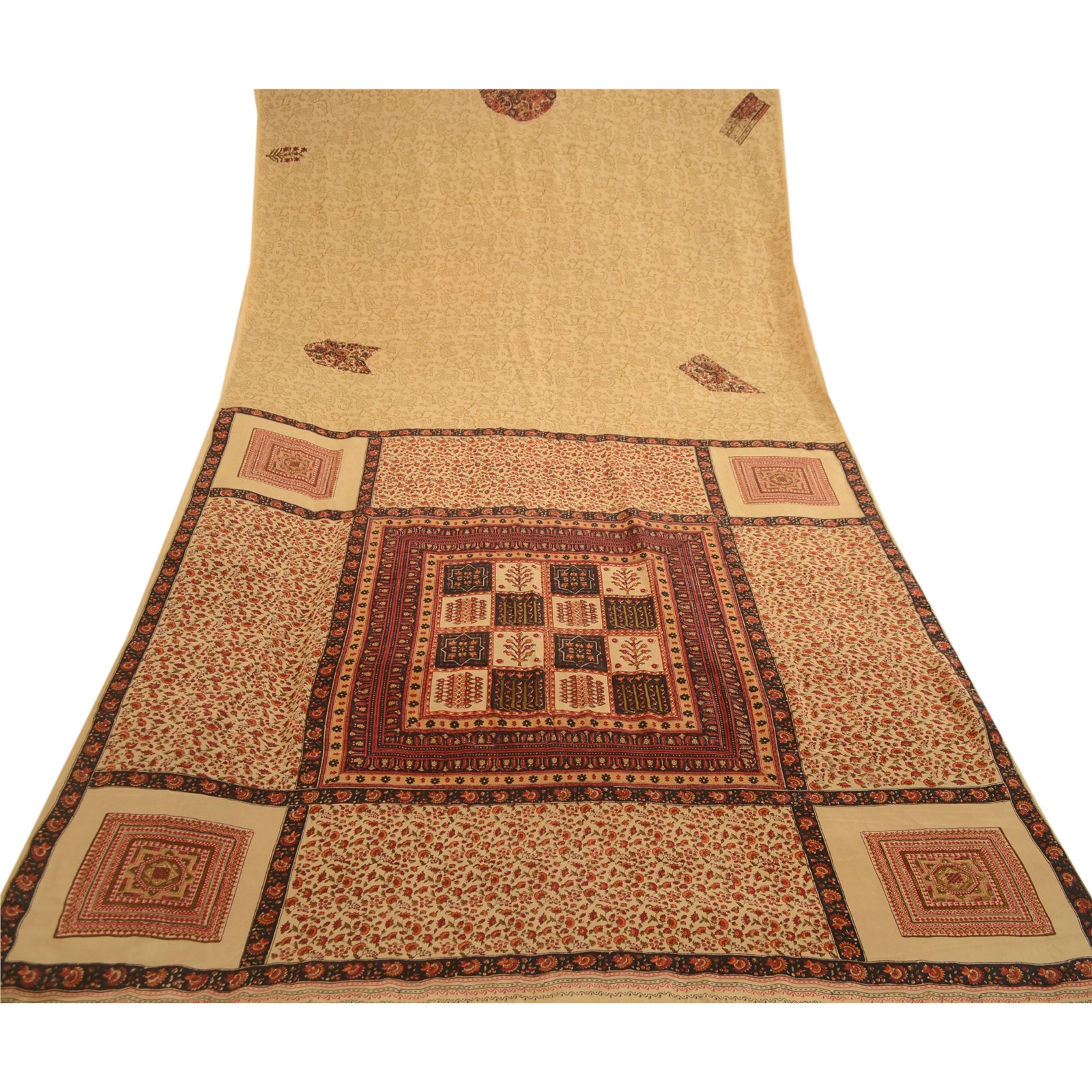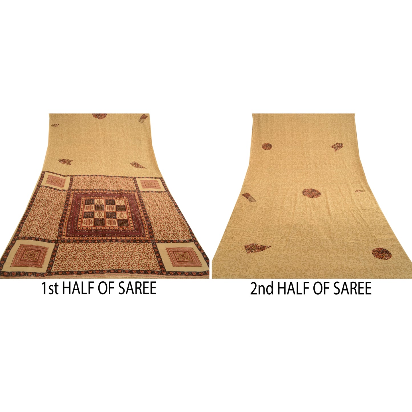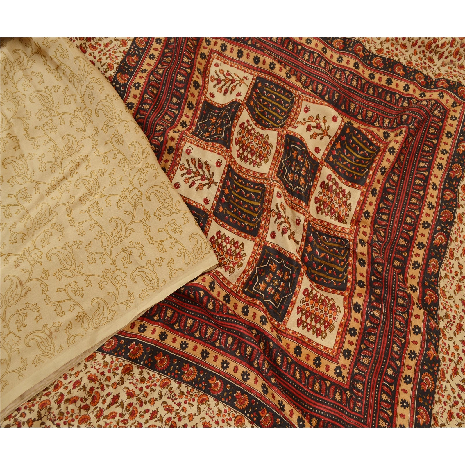 Sanskriti Vintage Cream Indian Sarees Printed Pure Silk Sari Soft Craft Sustainable Fabric