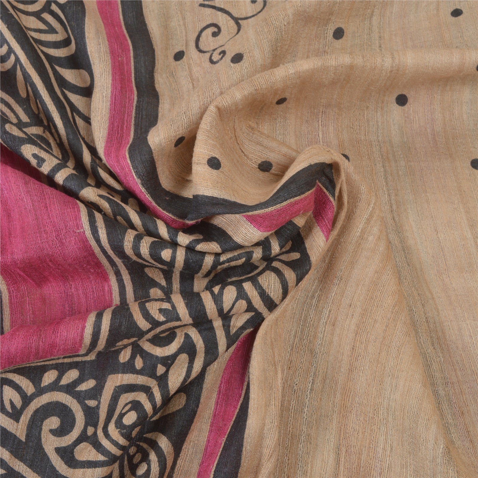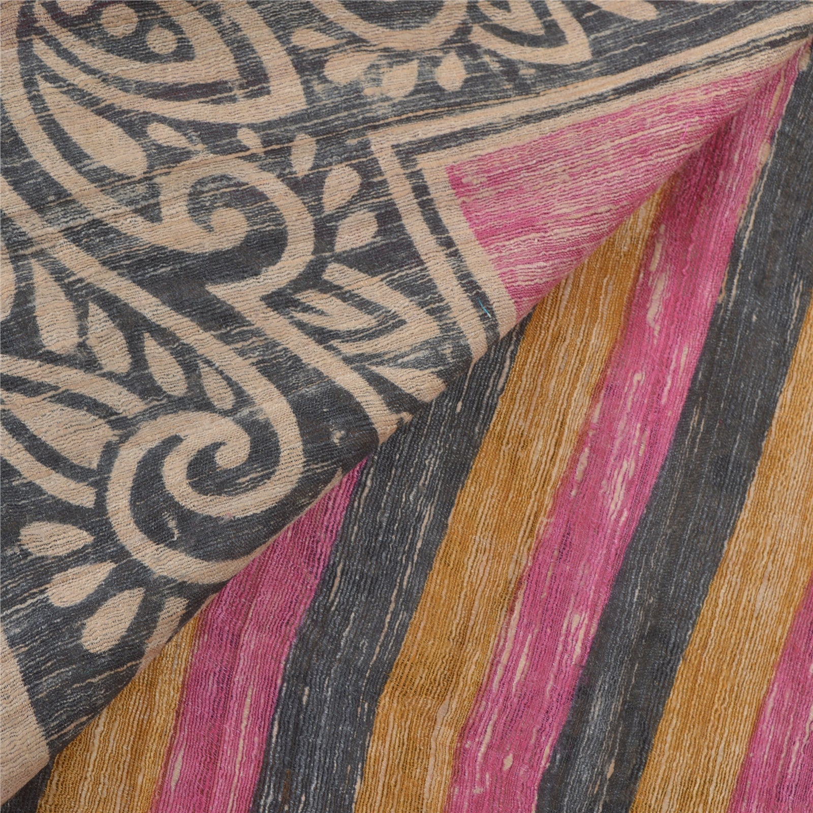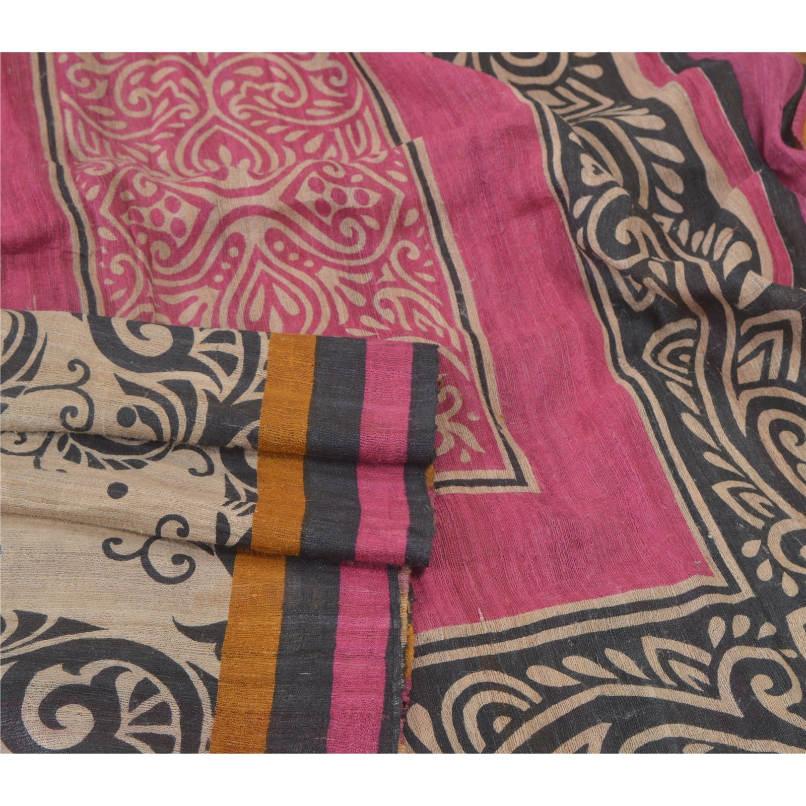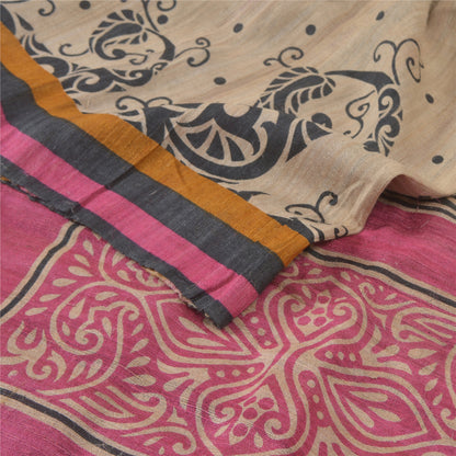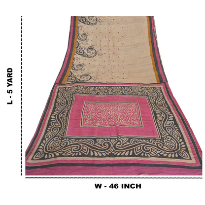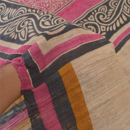 Sanskriti Vintage Cream Indian Sari Pure Handloom Silk Printed Sarees Sustainable Fabric