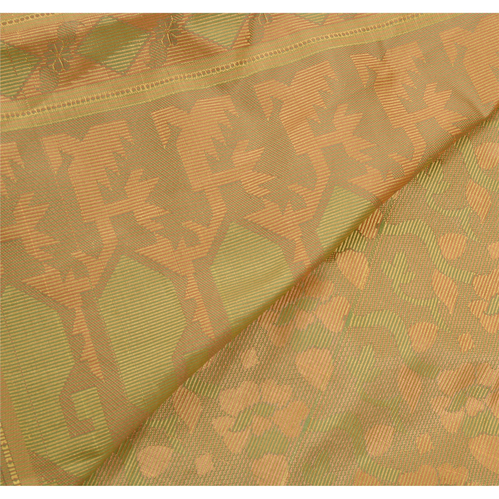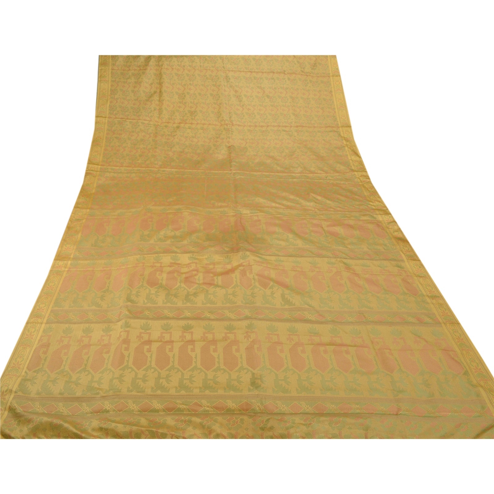 Sanskriti Vintage Cream Sarees Art Silk Woven Craft Sustainable Fabric Premium 5 Yard Sari