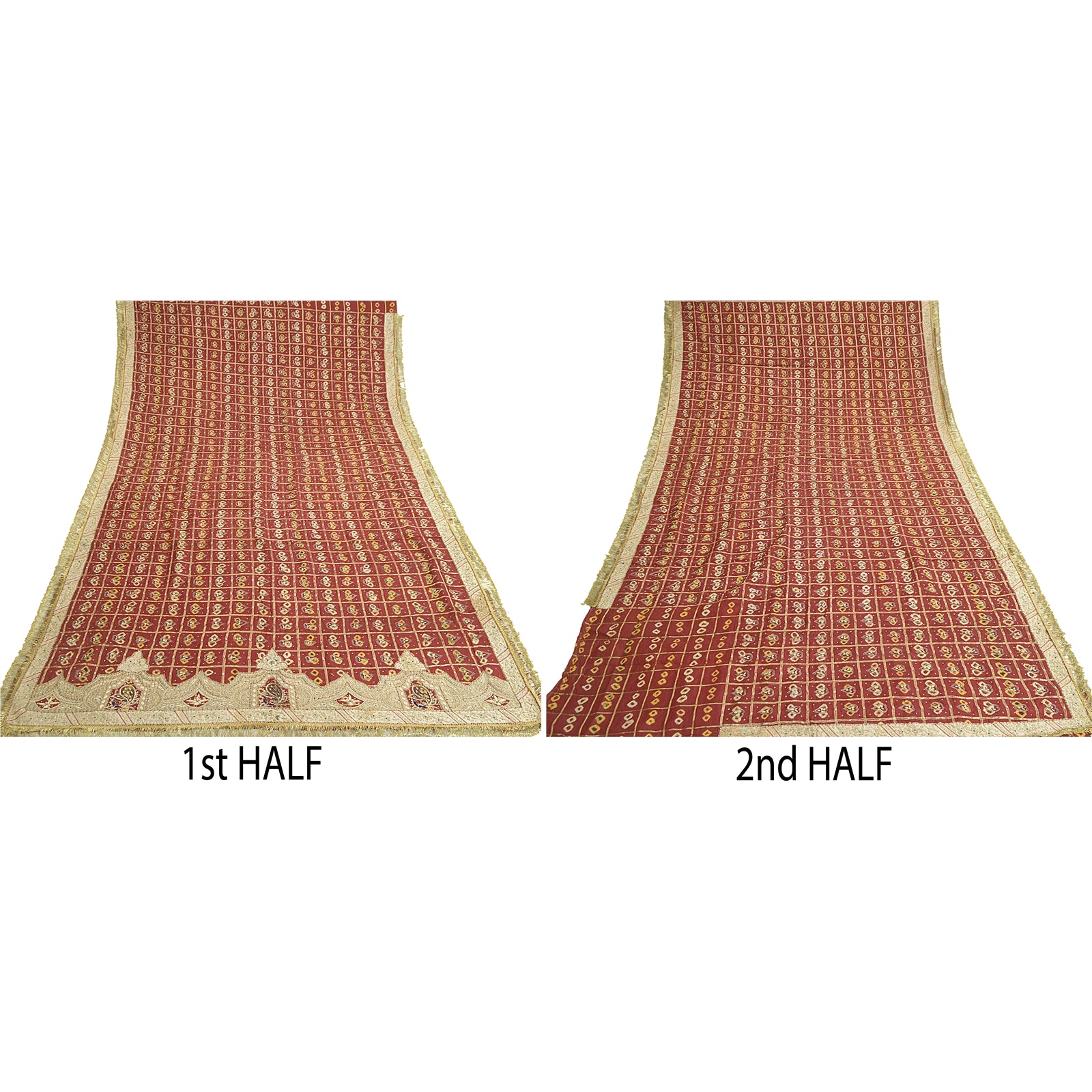Beautiful Dupatta Hand Embroidered Woven Bandhani Gharchola 100% Pure Cotton Dupatta/Stole In Shade of Dark Red Color Fabric. This one of a kind item is difficult to express in words. Border feature is floral & peacock design embroidered with golden fabric patch work and embellished with metallic golden zari/zardozi work, red glass beads, golden dori & golden fringes work. Also you can see center portion of the dupatta has fully covered with traditional bandhani work with golden zari woven work along with grid & floral design in center part of the dupatta. Gharchola is a saree/dupatta, traditionally used as a head/ shoulder drape, called as Odhani/ Chunari/ Chunari. Since it is a wedding apparel, it is usually in auspicious colours of red/ maroon and green/ yellow. A variant of the popular Bandhani saree, Gharchola is distinguishable by its typical grid pattern. International buyers please note: Import duties, taxes, and charges are not included in the item price or postage cost. These charges are the buyer's responsibility. Please check with your country's customs office to determine what these additional costs will be prior to bidding or buying. Buyer will pay custom duty/tax. It is calculated and charged differently by every country. As a seller I do not have any control over it. VAT or sales tax is calculated by the platform at the time of checkout. Customs charge is payable at the time of delivery.
