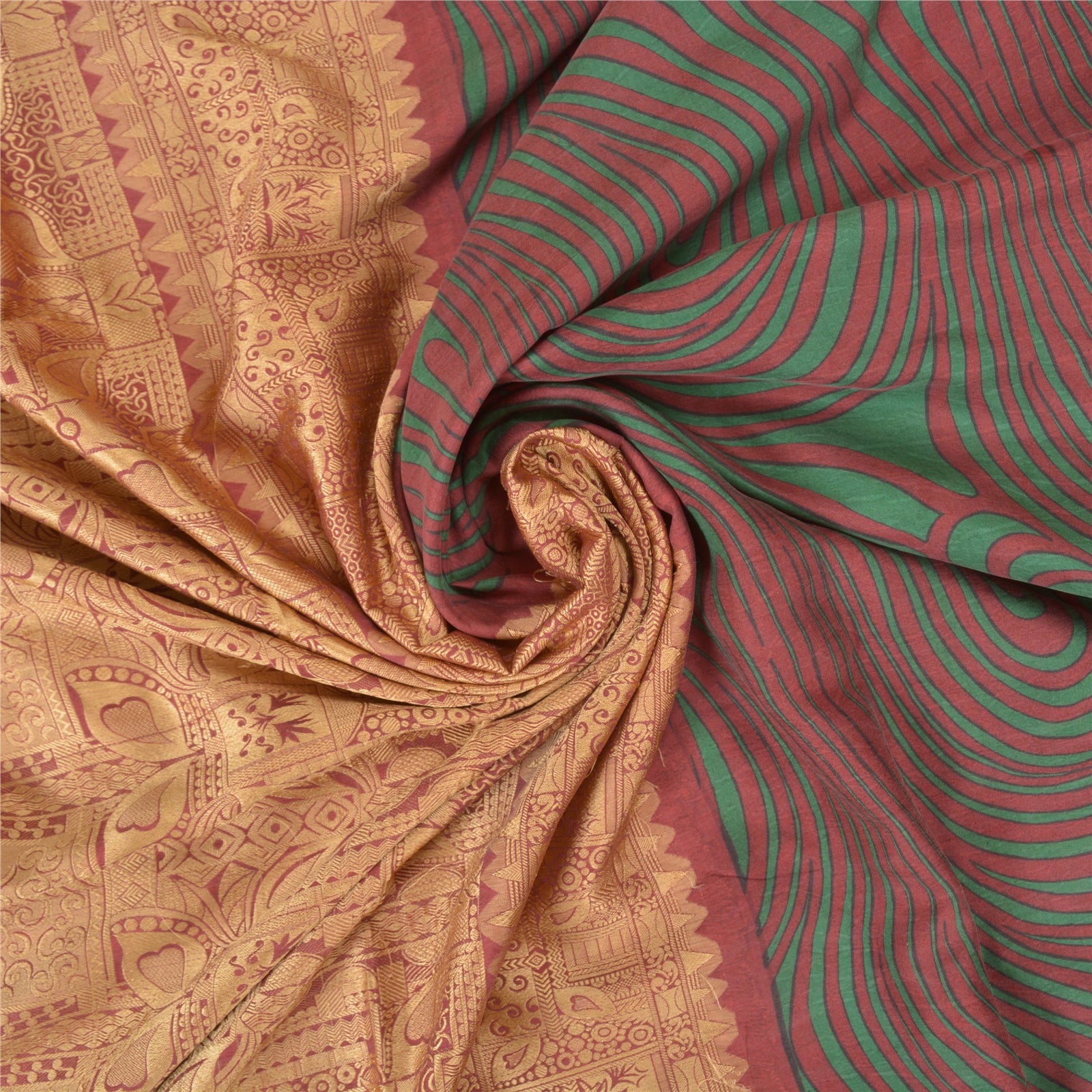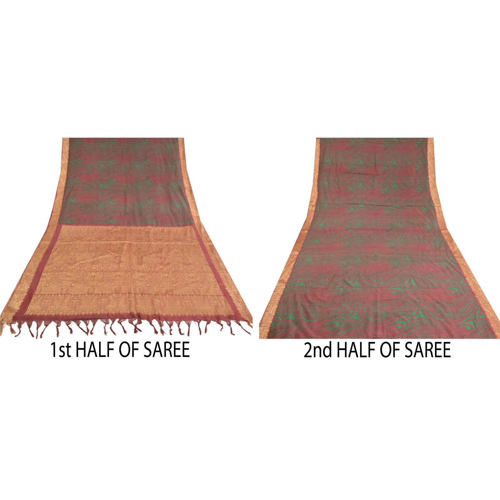 Sanskriti Vintage Dark Red Sarees 100% Pure Silk Woven Printed Sari Craft Sustainable Fabric