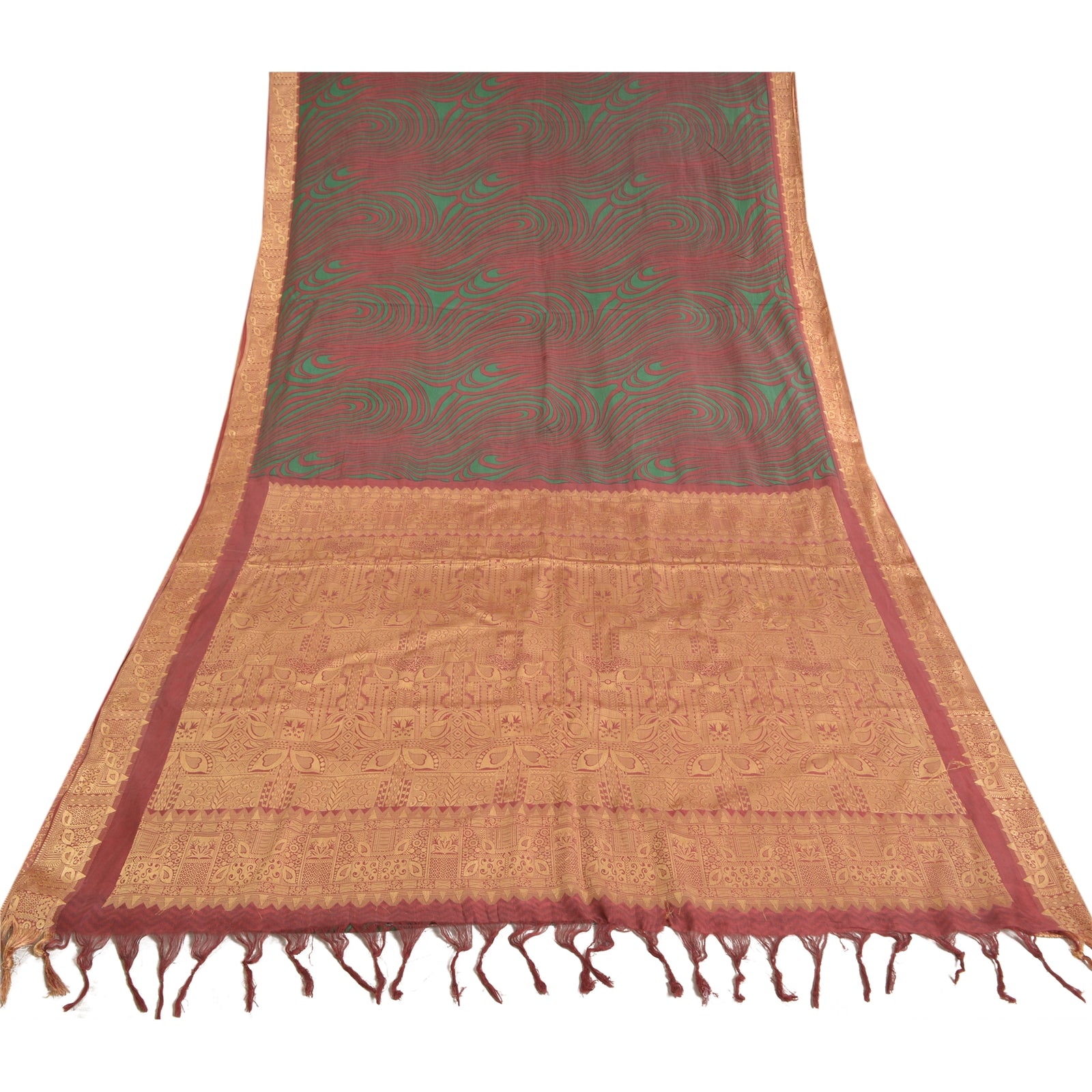 'THE ITEM COLOR OR SHADE MAY BE DARKER OR LIGHTER THAN THE PICTURE.' Beautiful dark red& green colored 100% pure silk woven & printed sari/Sustainable Fabric. Pallu & border features are cream woven thread work with floral design. The center of the saree has printed abstract pattern. This saree can be used for various crafting ideas too. Use it for dress designing, as a throw, as window dressing, upholstery, table linen and much more. Let your creative juices flow. 'International buyers please note: Import duties, taxes, and charges are not included in the item price or postage cost. These charges are the buyer's responsibility. Please check with your country's customs office to determine what these additional costs will be prior to bidding or buying. Buyer will pay custom duty/tax. It is calculated and charged differently by every country. As a seller I do not have any control over it. VAT or sales tax is calculated by the platform at the time of checkout. Customs charge is payable at the time of delivery.'