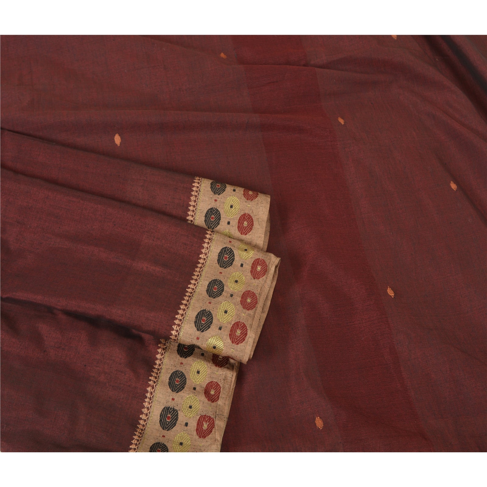 Sanskriti Vintage Dark Red Sarees Blend Cotton Hand-Woven Tant Sari 5 YD Sustainable Fabric