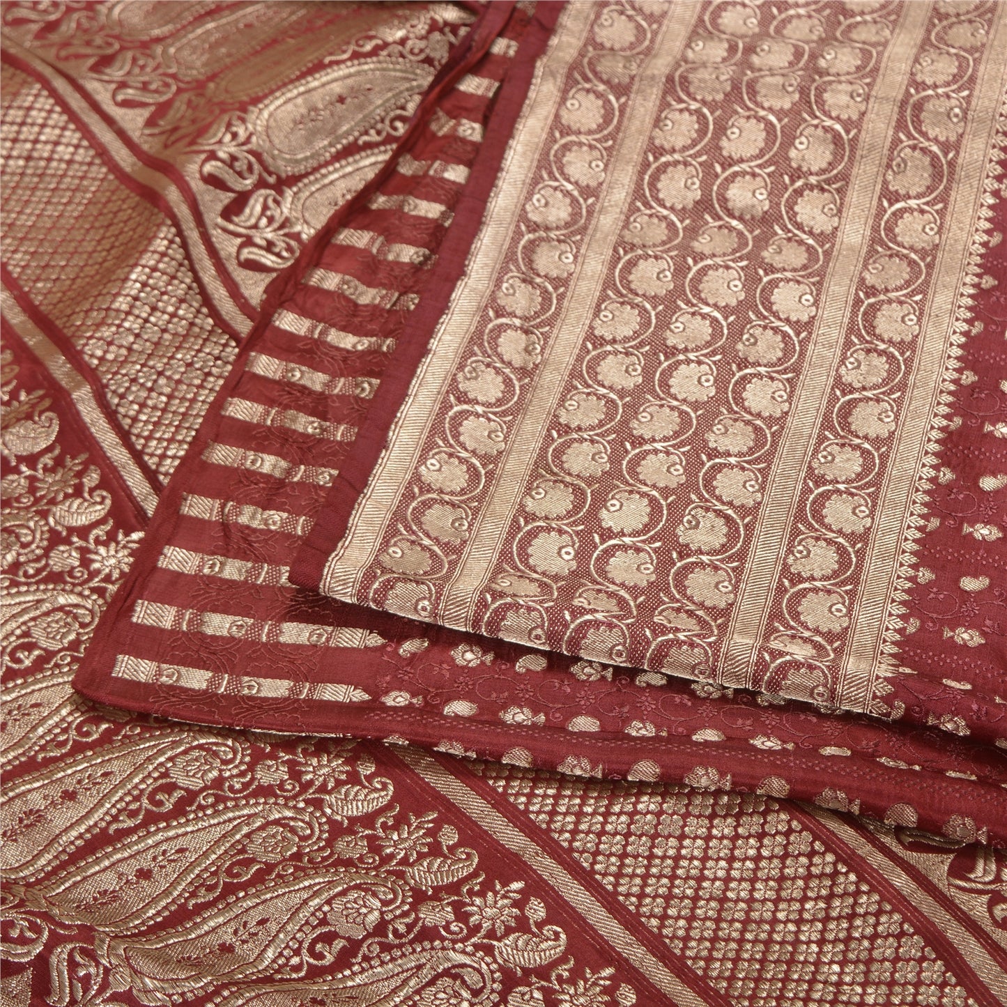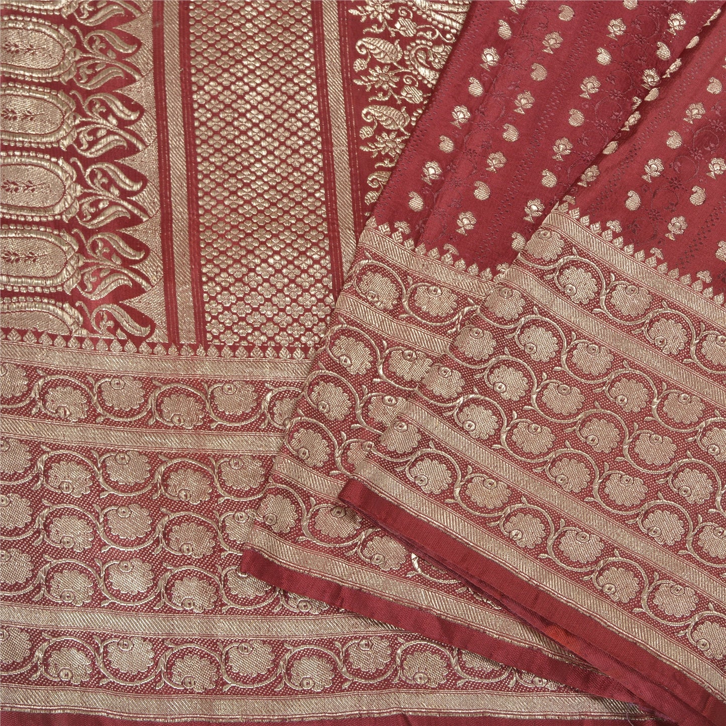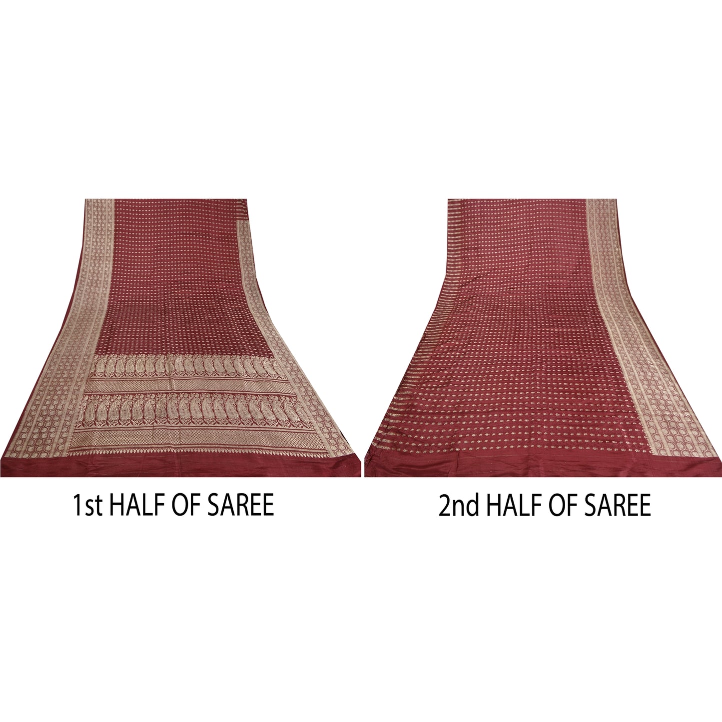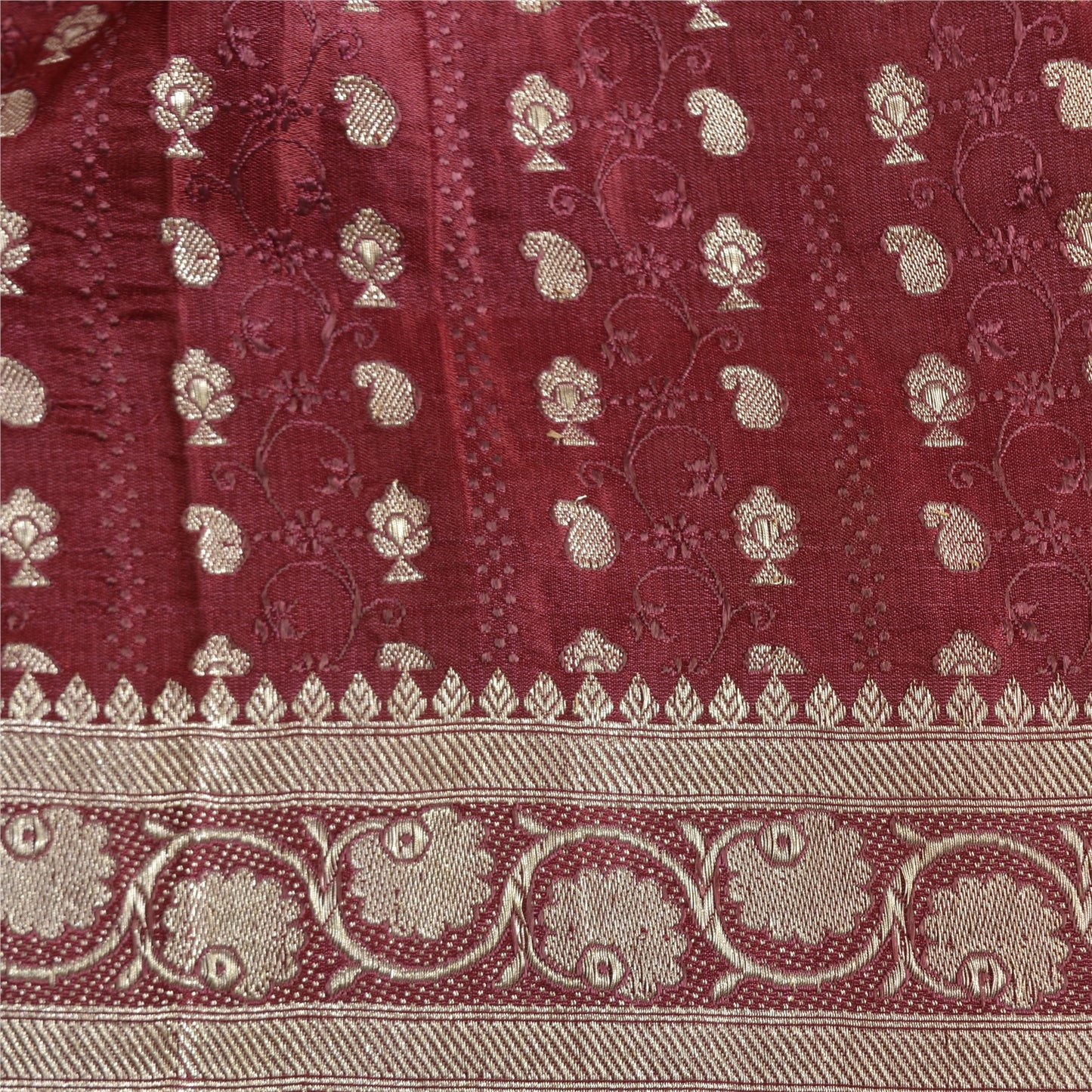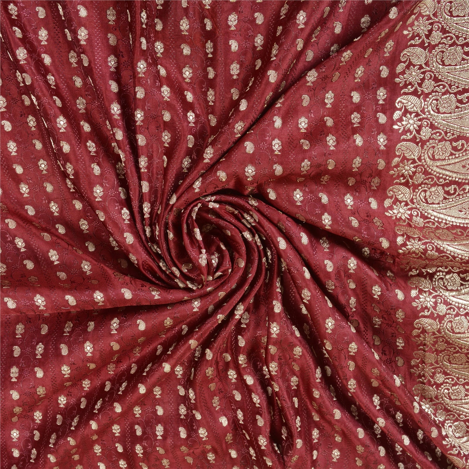 Sanskriti Vintage Dark Red Sarees Pure Satin Silk Brocade/Banarasi Sari Sustainable Fabric