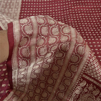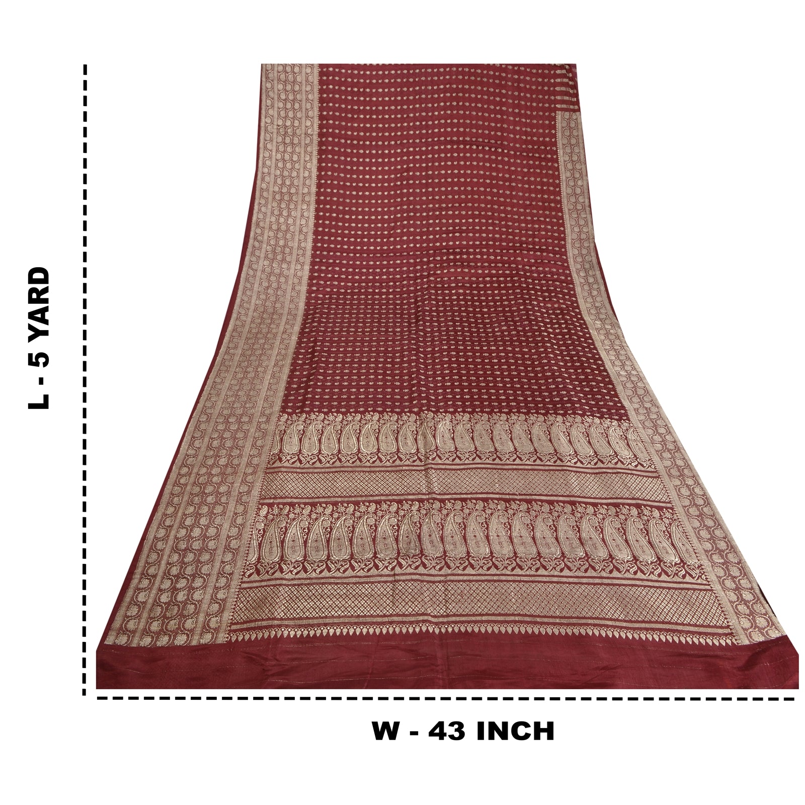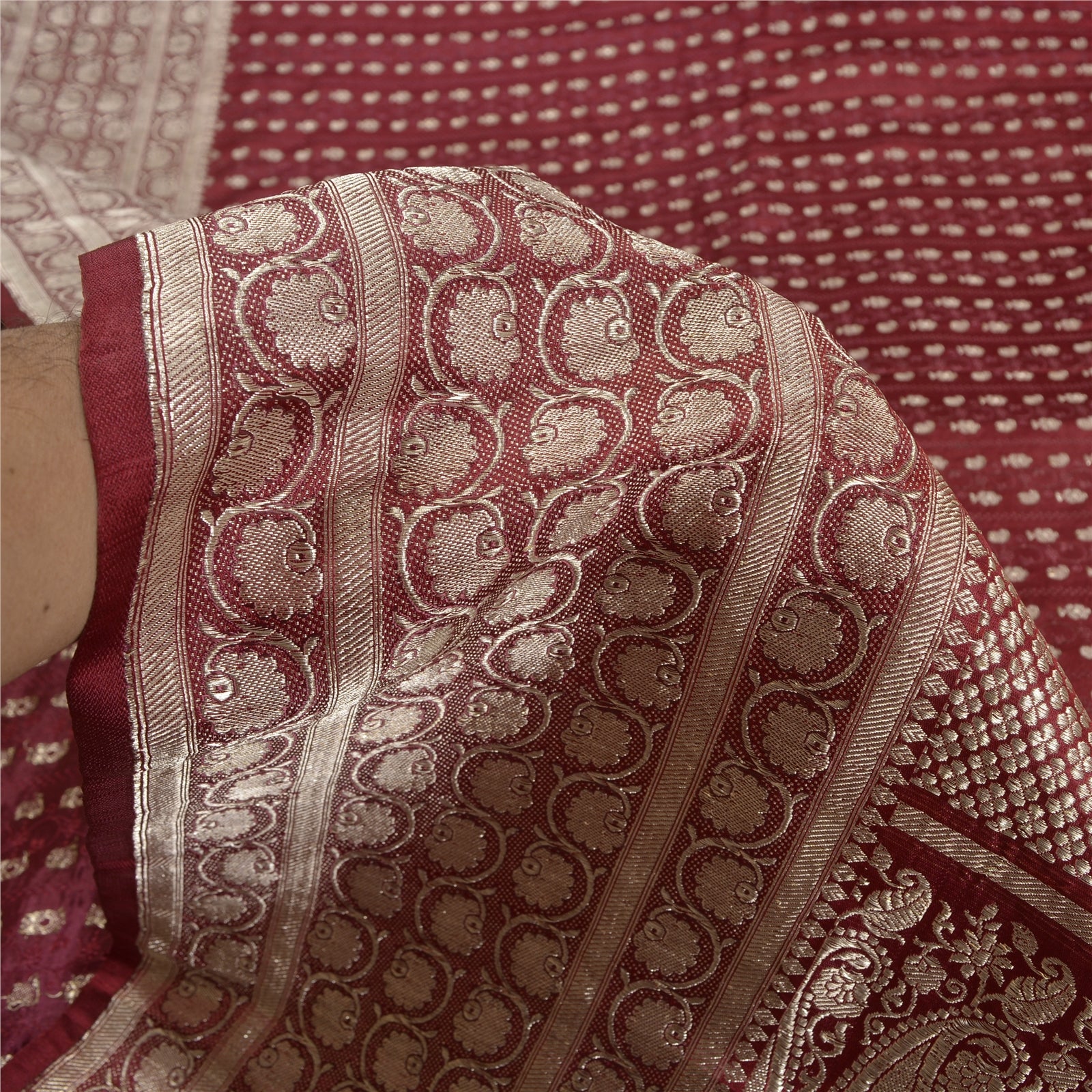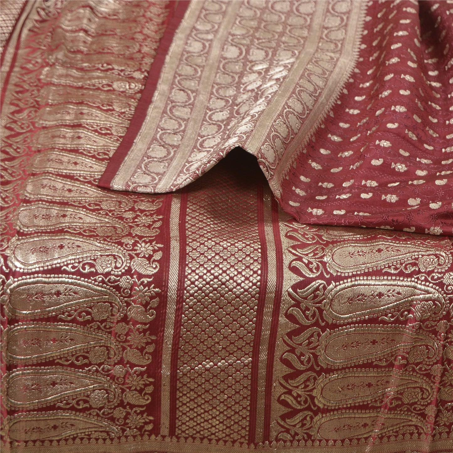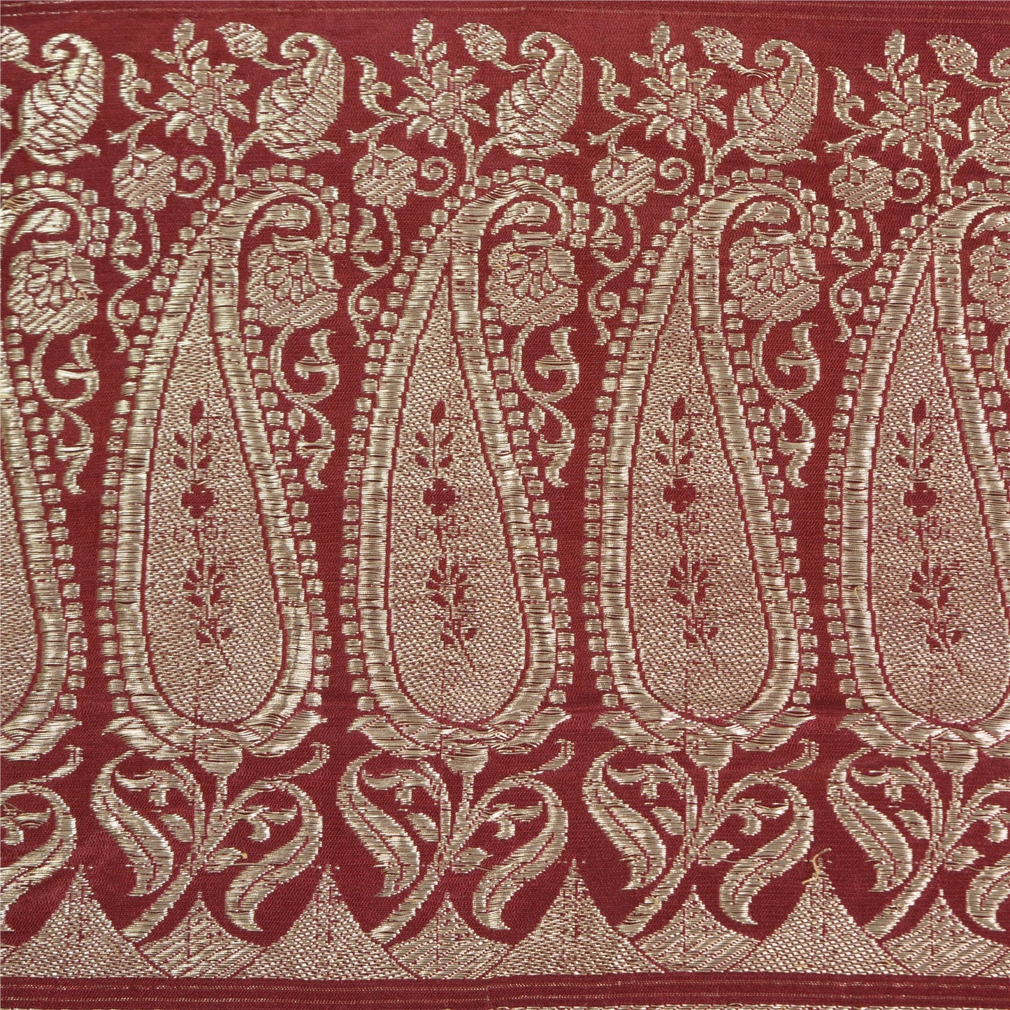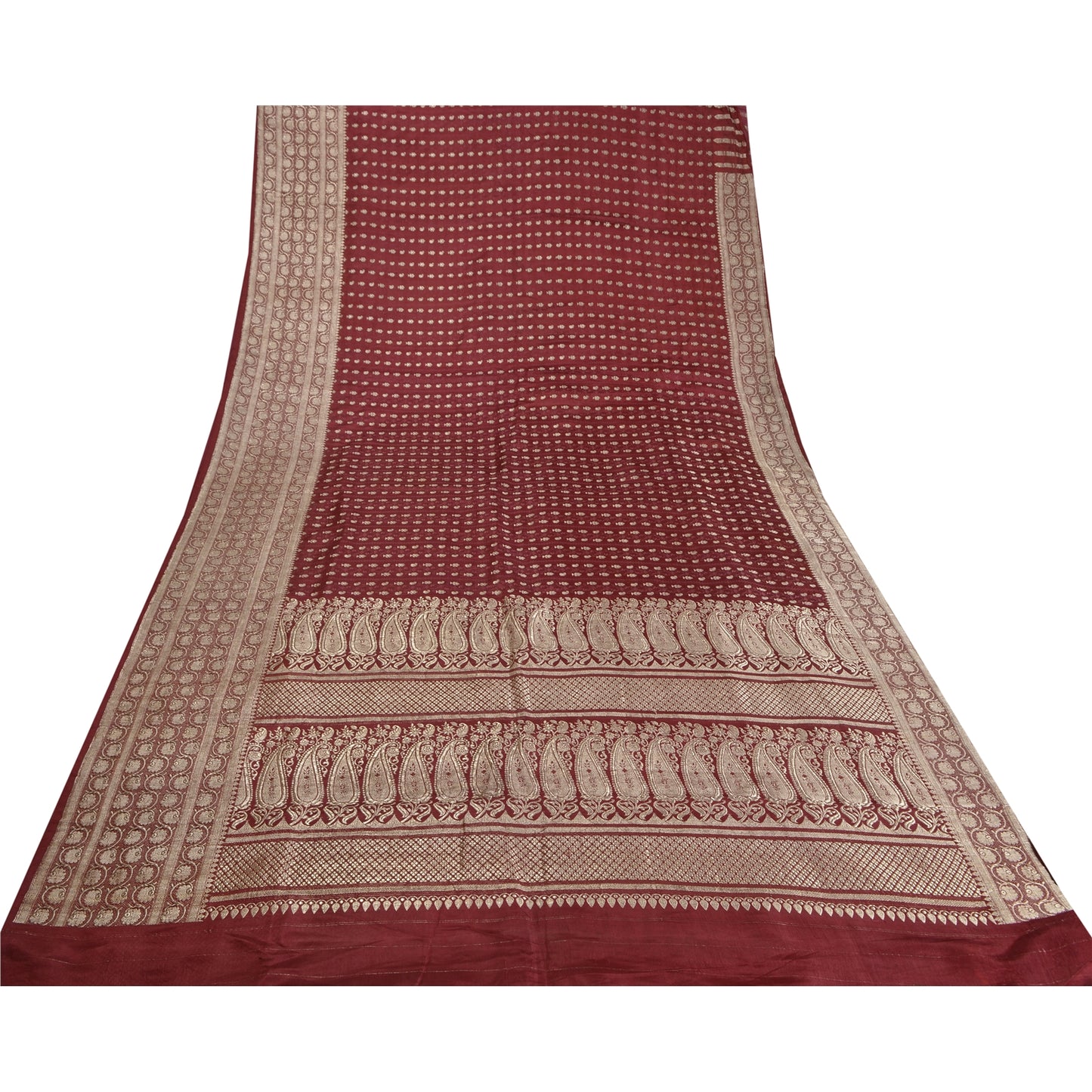 Sanskriti Vintage Dark Red Sarees Pure Satin Silk Brocade/Banarasi Sari Sustainable Fabric