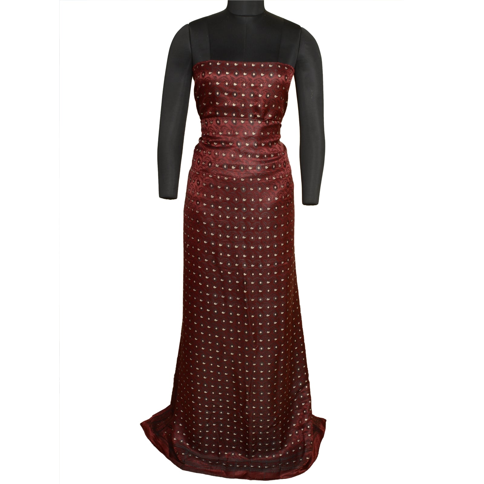 'THE ITEM COLOR OR SHADE MAY BE DARKER OR LIGHTER THAN THE PICTURE.' Beautiful Dark Red Colored 100% Pure Satin Woven Brocade Sari. Border has black woven thread & metallic golden zari work with floral design. The center of the saree has similar zari & thread work with floral design. This saree can be used for various crafting ideas too. Use it for dress designing, as a throw, as window dressing, upholstery, table linen and much more. Let your creative juices flow. 'International buyers please note: Import duties, taxes, and charges are not included in the item price or postage cost. These charges are the buyer's responsibility. Please check with your country's customs office to determine what these additional costs will be prior to bidding or buying. Buyer will pay custom duty/tax. It is calculated and charged differently by every country. As a seller I do not have any control over it. VAT or sales tax is calculated by the platform at the time of checkout. Customs charge is payable at the time of delivery.'