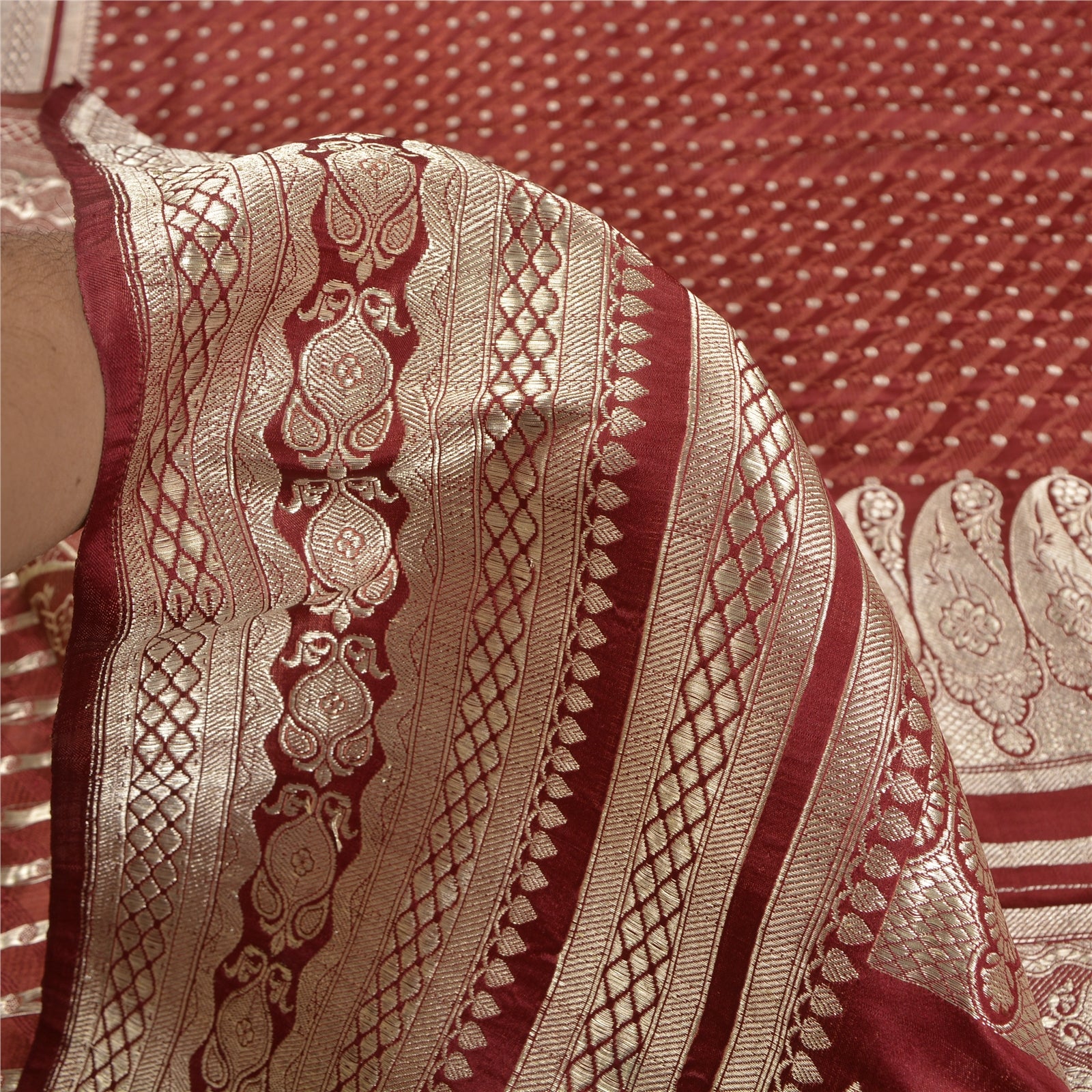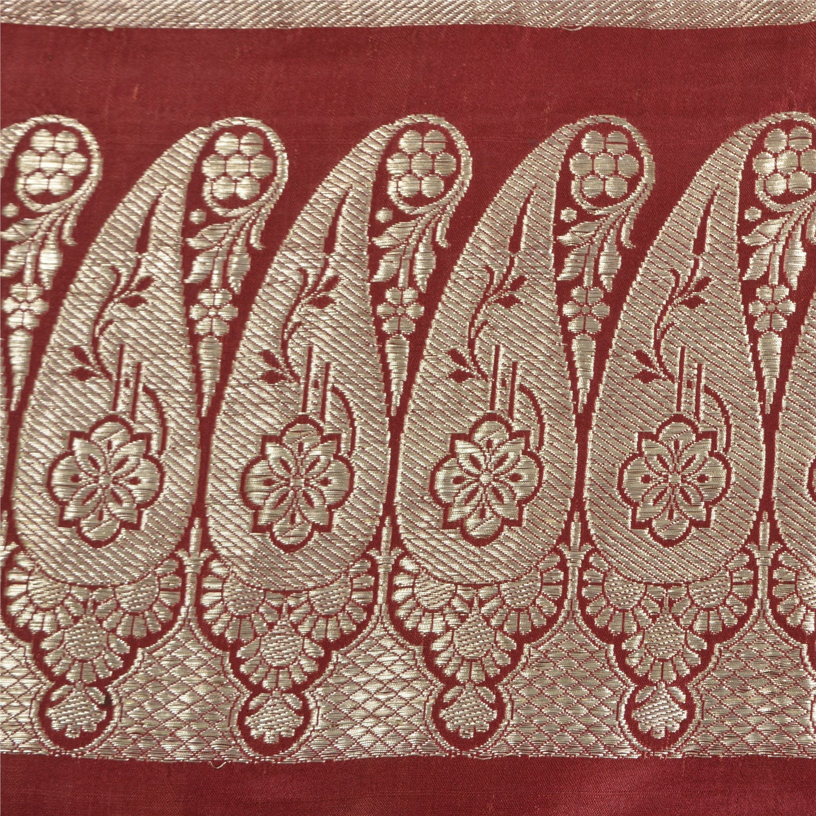 Sanskriti Vintage Dark Red Sarees Pure Satin Woven Brocade/Banarasi Sari Fabric
