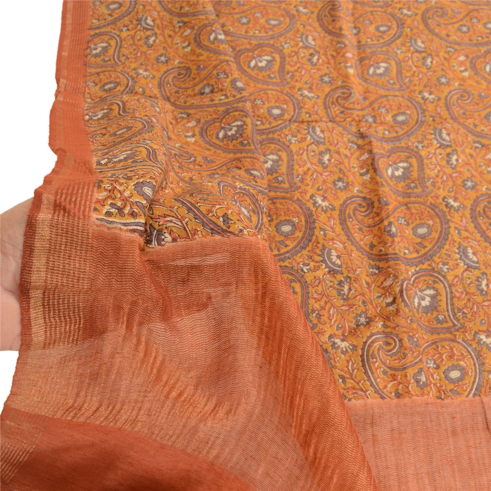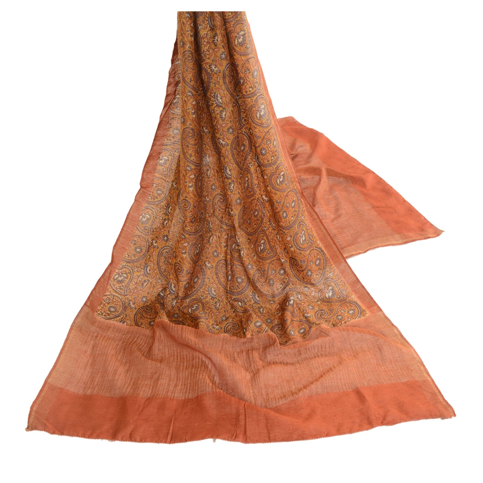 Elegant Shade Of Brown Colored 100% Pure Silk Printed Long Scarf/Dupatta. Center part of the dupatta has printed floral & paisley pattern. Border has golden woven work with soft base Sustainable Fabric is really enhancing beauty of the dupatta. This dupatta/stole can be used for various crafting ideas too. Use it for dress designing, as a throw, as window dressing, upholstery, table linen and much more. Let your creative juices flow. For USA buyers - Single item ships via registered air mail, buy 1 more to get FedEx.