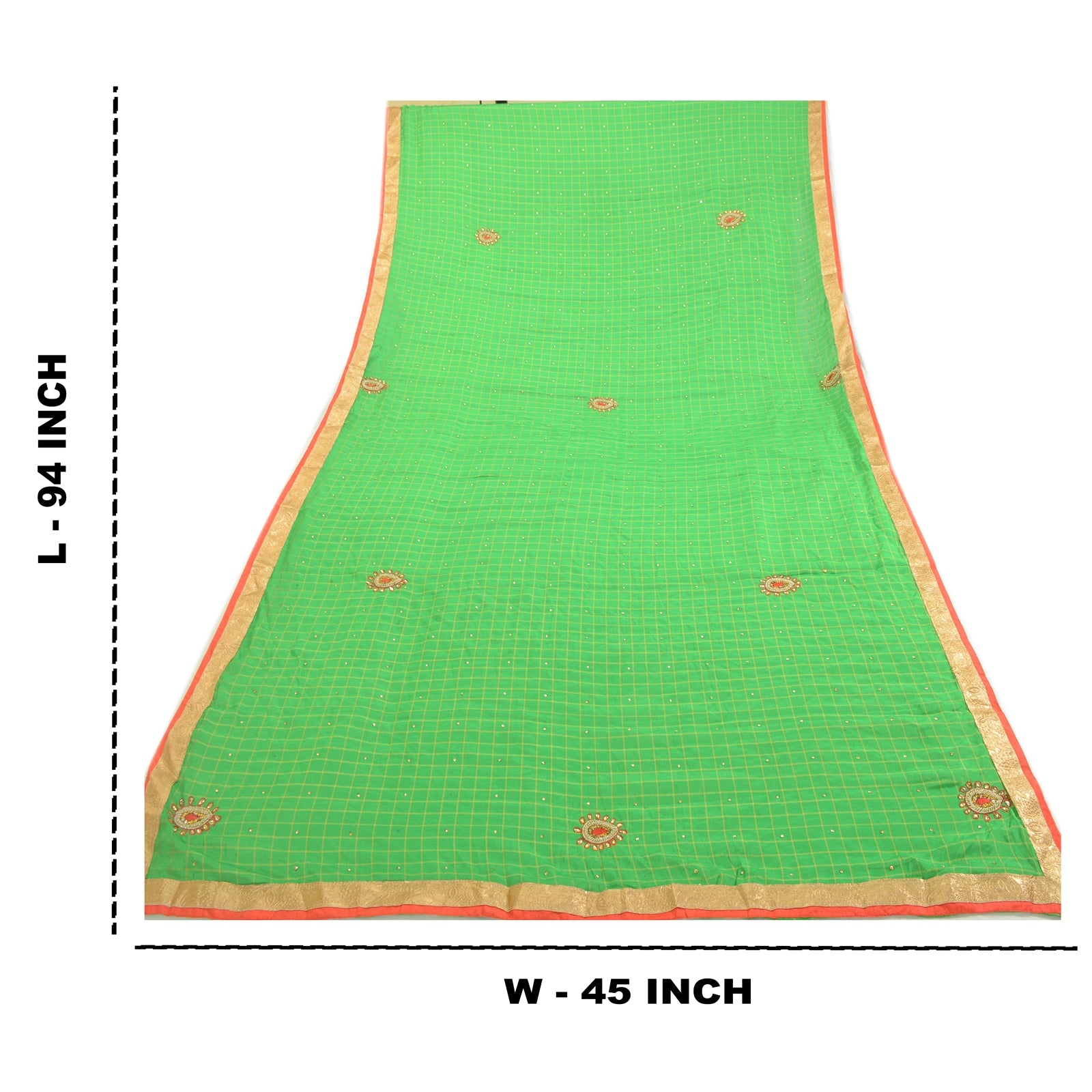 'THE ITEM COLOR OR SHADE MAY BE DARKER OR LIGHTER THAN THE PICTURE.' Beautiful green colored art (artificial) silk hand embroidered woven long scarf/dupatta. Center portion of the dupatta woven grid design embellished with shinning glass beads & rhinestones, red thread along with floral motifs. Border has golden lace with red Sustainable Fabric patch work are really enhancing beauty of the dupatta/stole. This dupatta/stole can be used for various crafting ideas too. Use it for dress designing, as a throw, as window dressing, upholstery, table linen and much more. Let your creative juices flow. International buyers please note: Import duties, taxes, and charges are not included in the item price or postage cost. These charges are the buyer's responsibility. Please check with your country's customs office to determine what these additional costs will be prior to bidding or buying. Buyer will pay custom duty/tax. It is calculated and charged differently by every country. As a seller I do not have any control over it. VAT or sales tax is calculated by the platform at the time of checkout. Customs charge is payable at the time of delivery.'