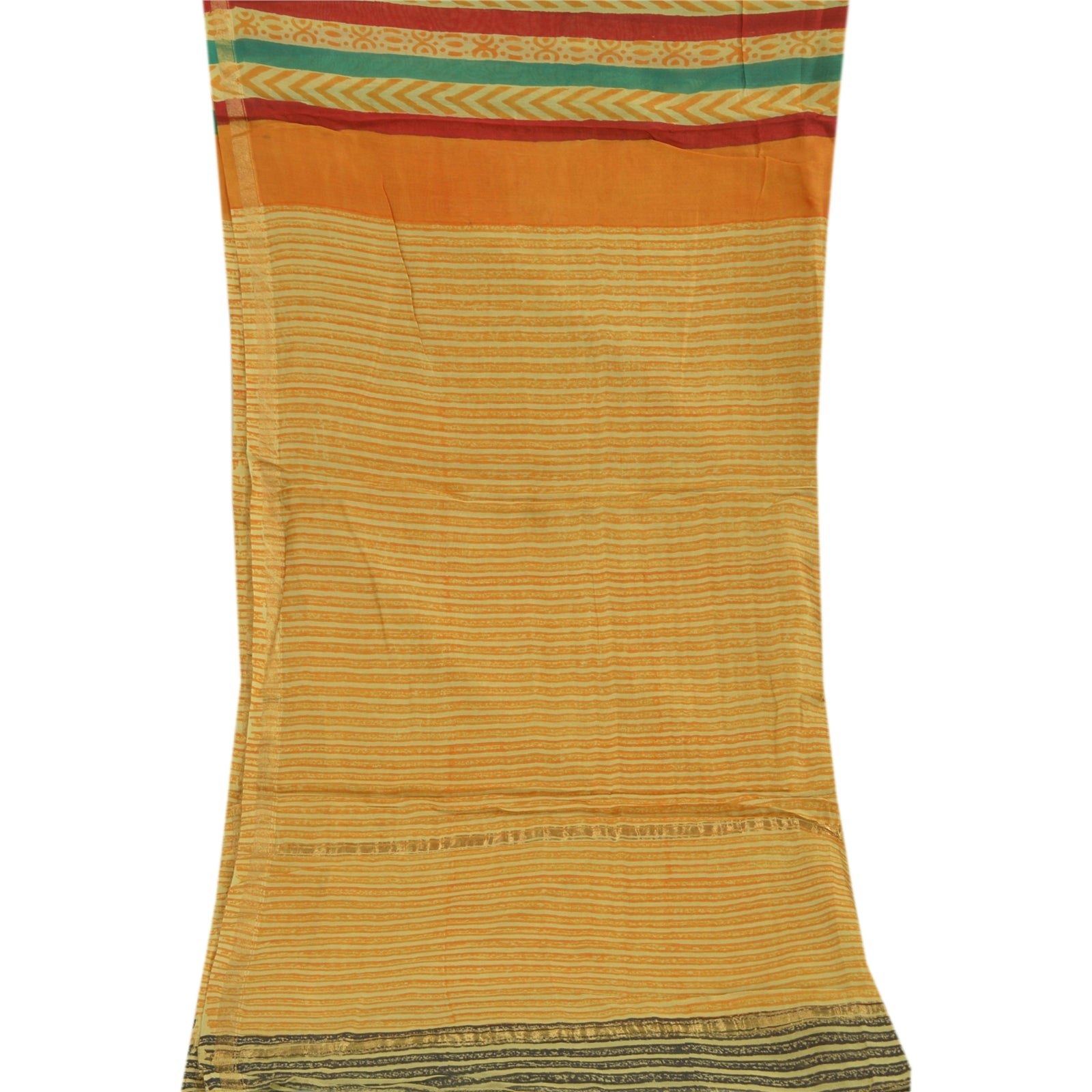 Beautiful multi colored blend silk printed long scarf/dupatta. Center portion of the dupatta printed abstract design. Border has printed floral pattern with golden zari woven work is really enhancing beauty of the dupatta/stole. This dupatta/stole can be used for various crafting ideas too. Use it for dress designing, as a throw, as window dressing, upholstery, table linen and much more. Let your creative juices flow.