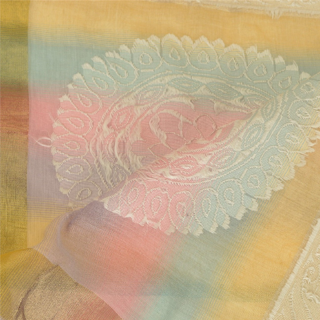 Sanskriti Vintage Dupatta Long Stole Blend Silk Ivory Hijab Hand-Woven Scarves