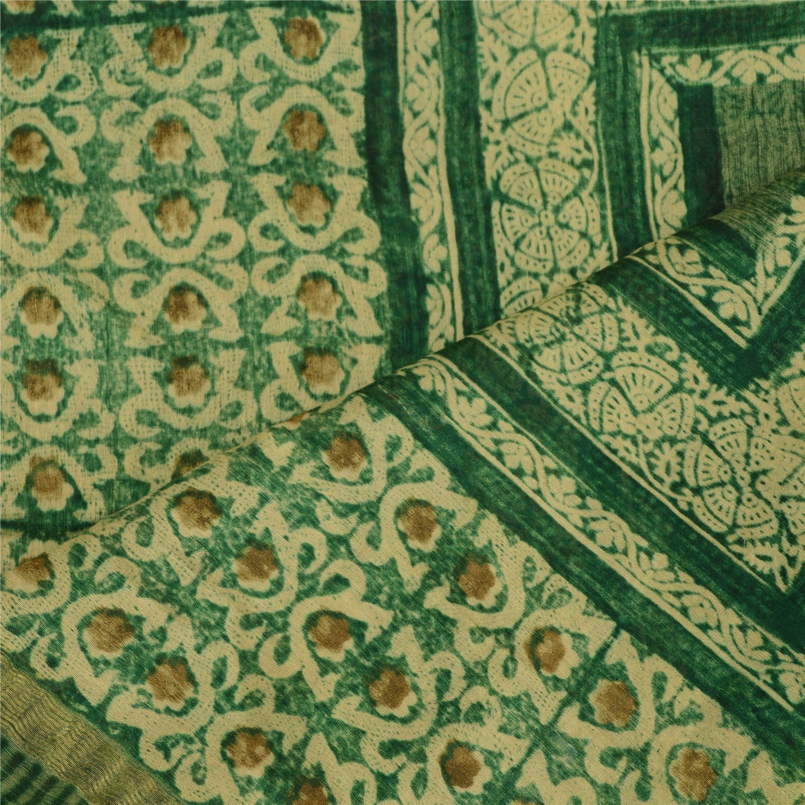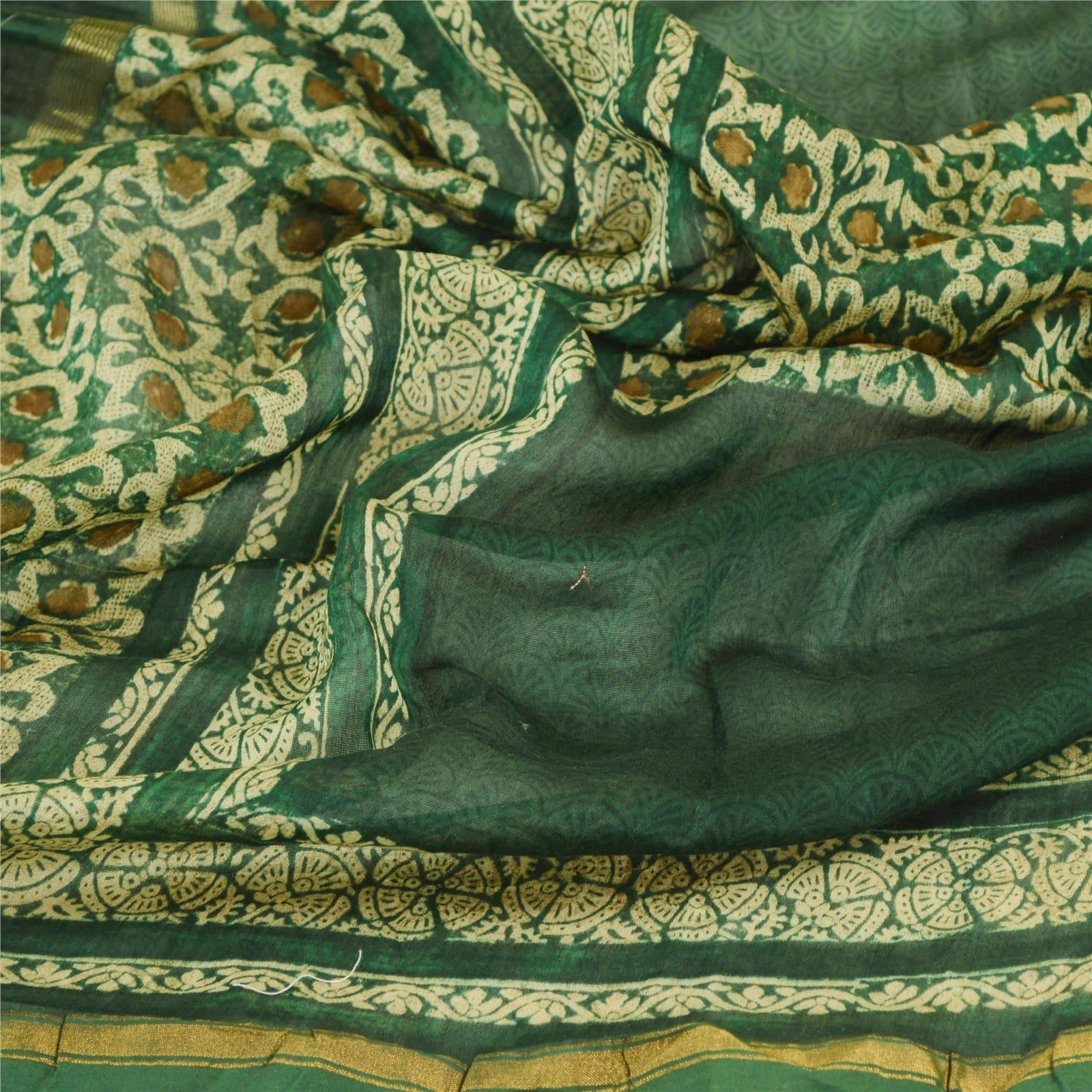 Sanskriti Vintage Dupatta Long Stole Chanderi Silk Green Printed Scarves