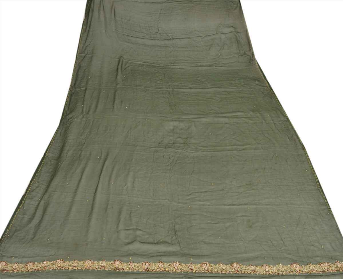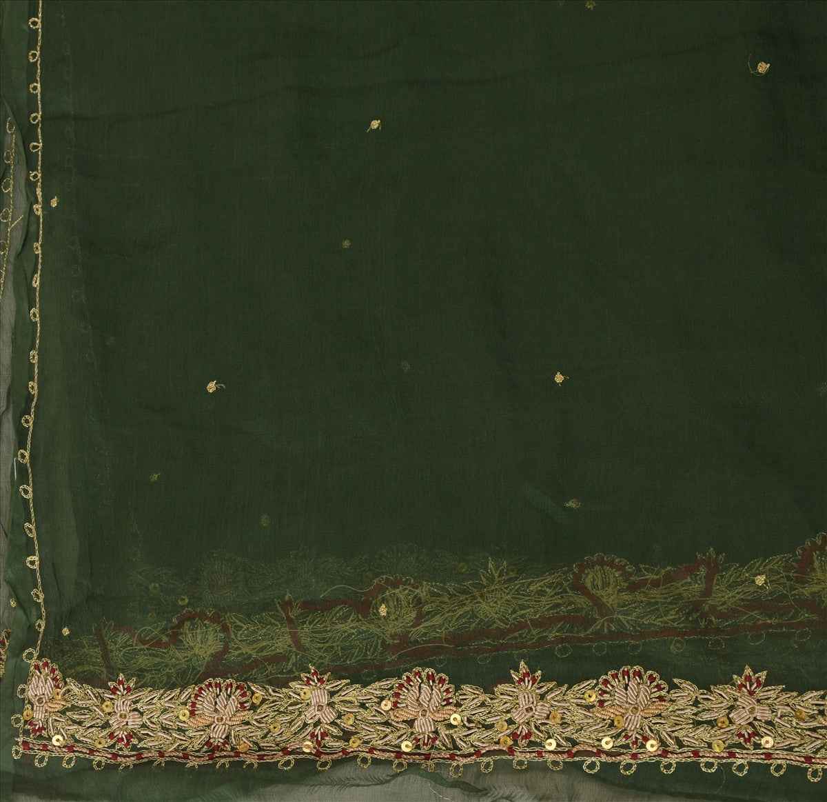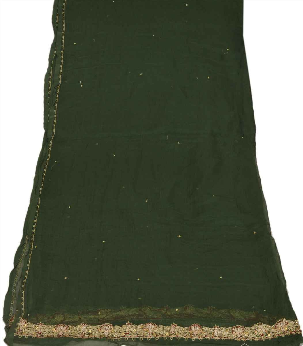 Sanskriti Vintage Dupatta Long Stole Chiffon Silk Green Hand Beaded Wrap Veil