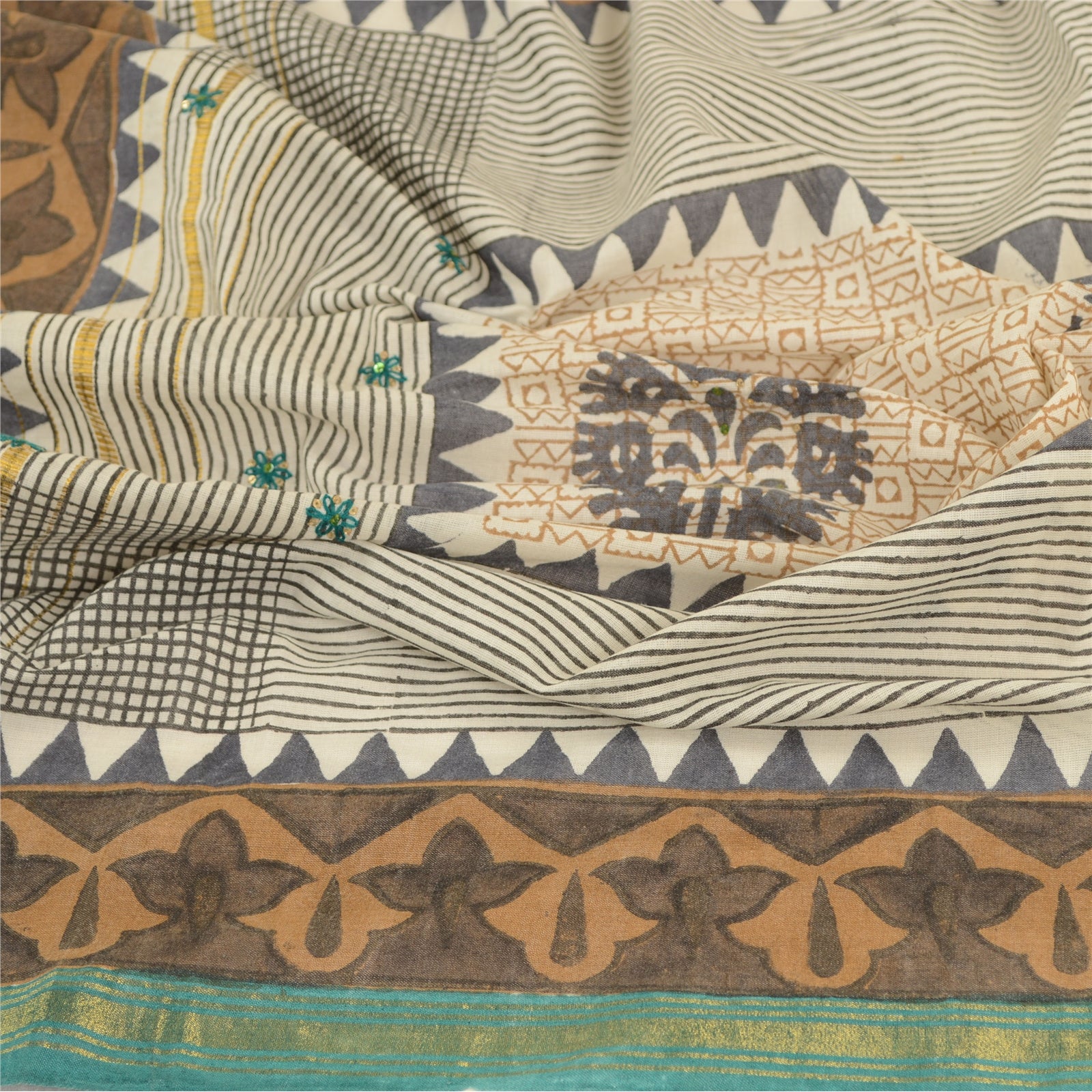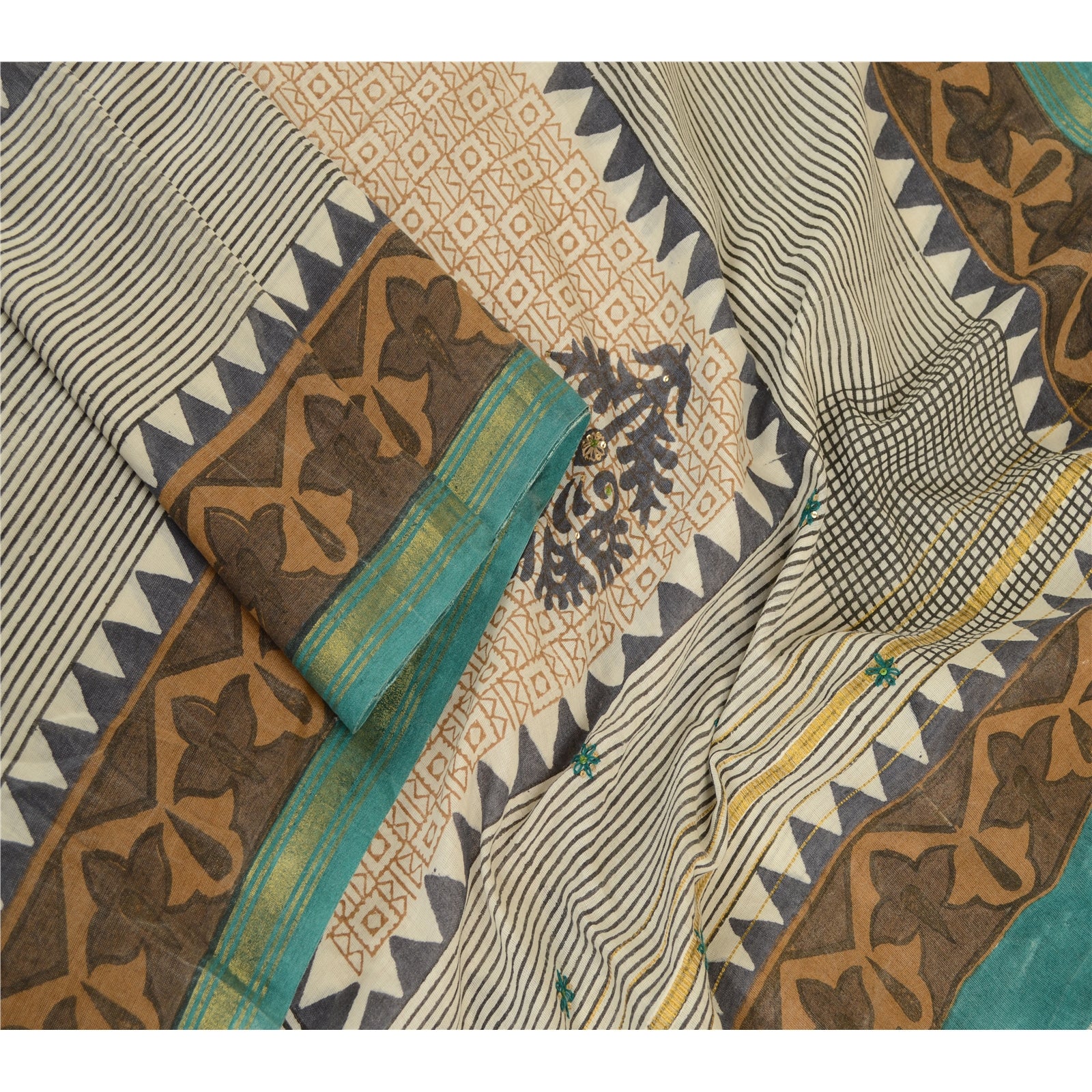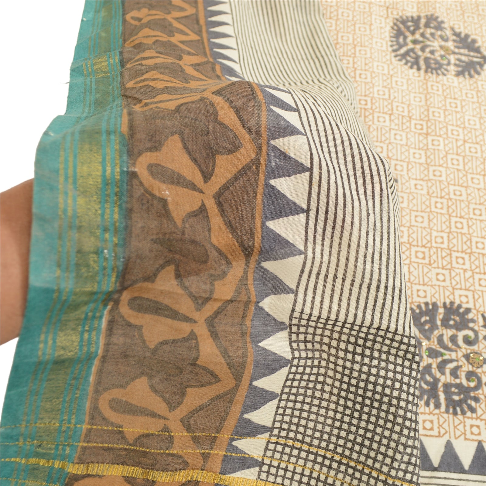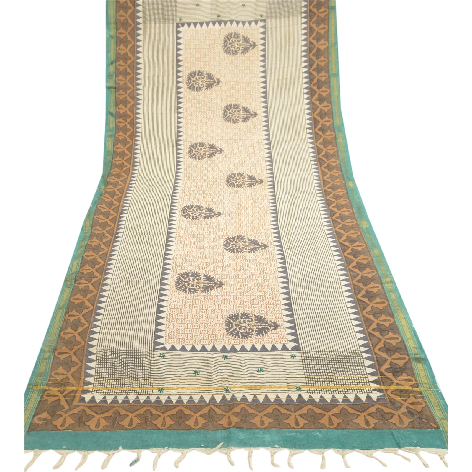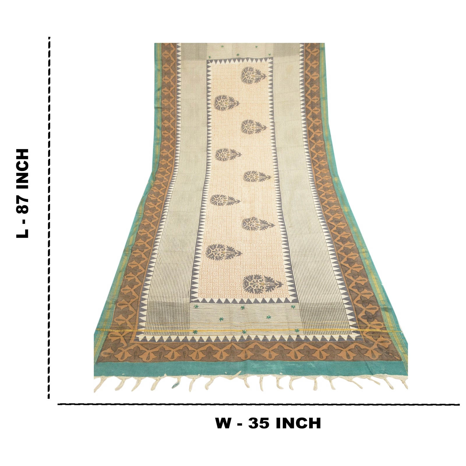 Sanskriti Vintage Dupatta Long Stole Cotton Cream Printed Scarves