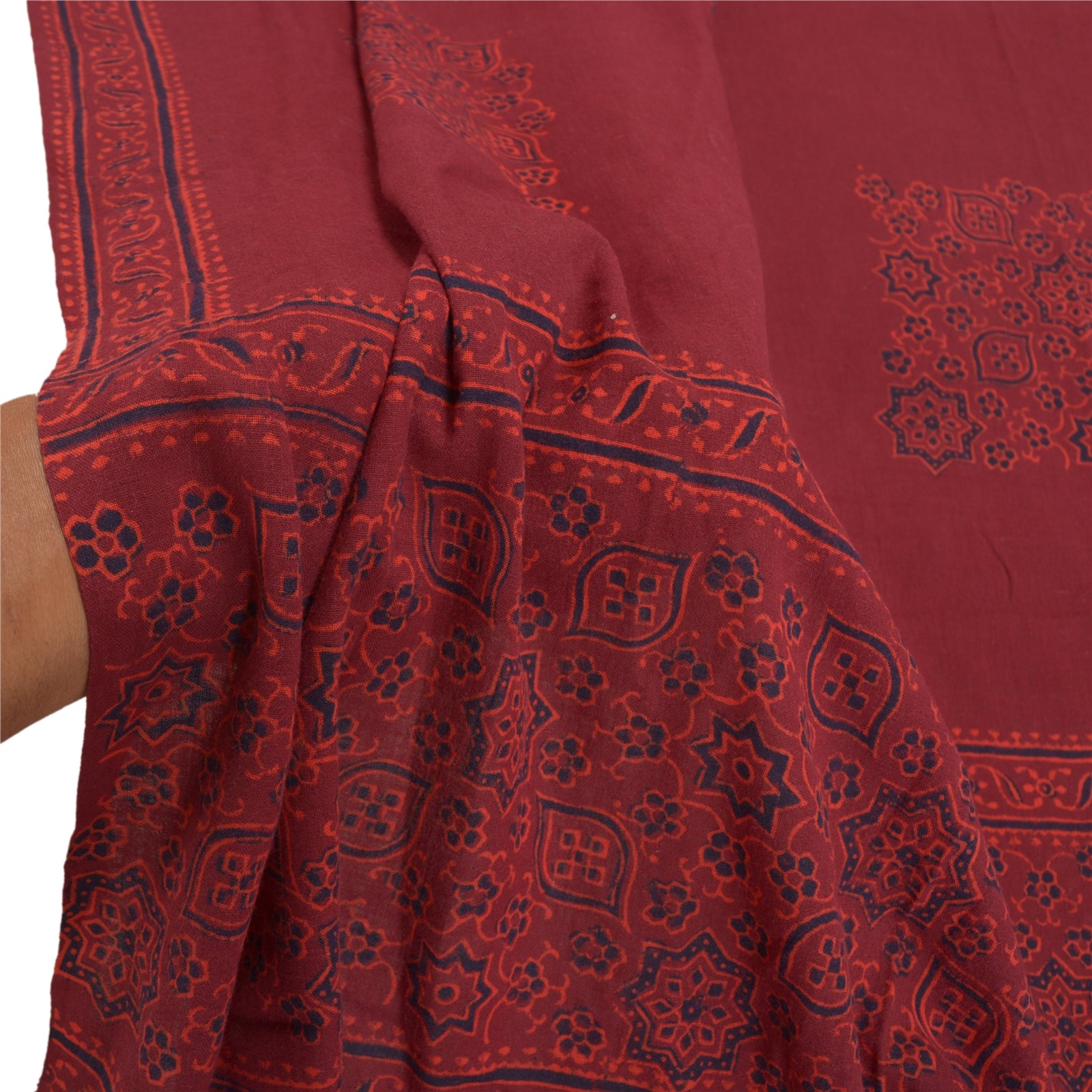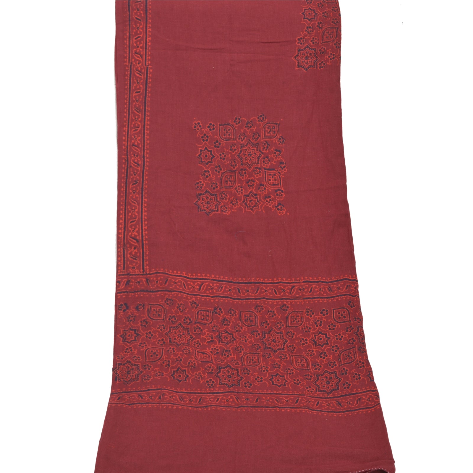 Sanskriti Vintage Dupatta Long Stole Cotton Dark Red Handmade Rare Ajrakh Veil