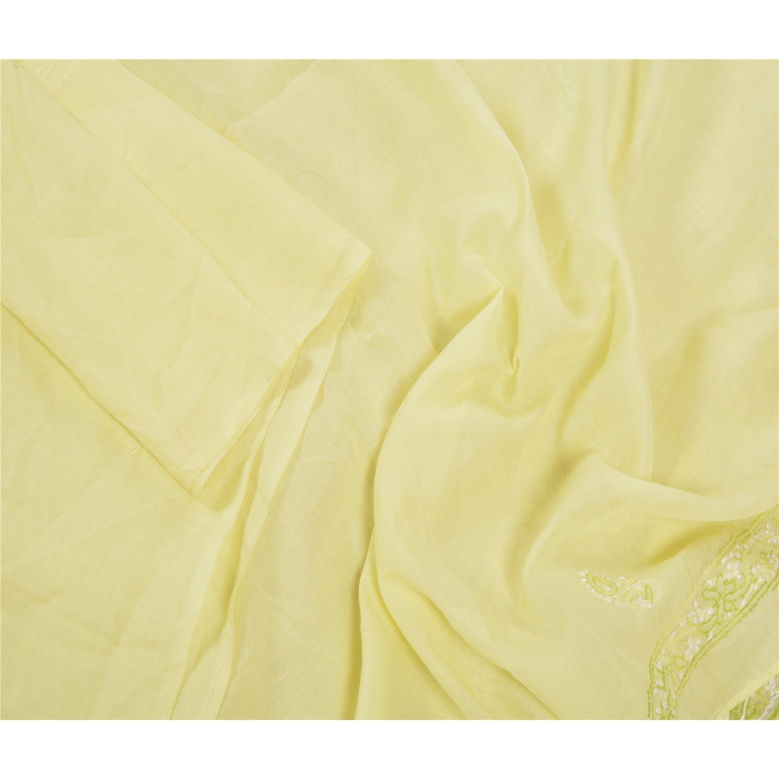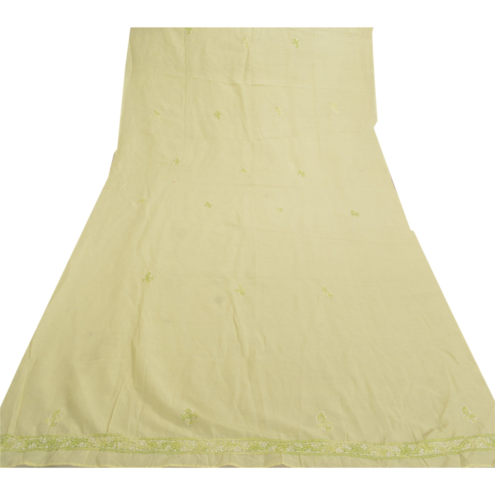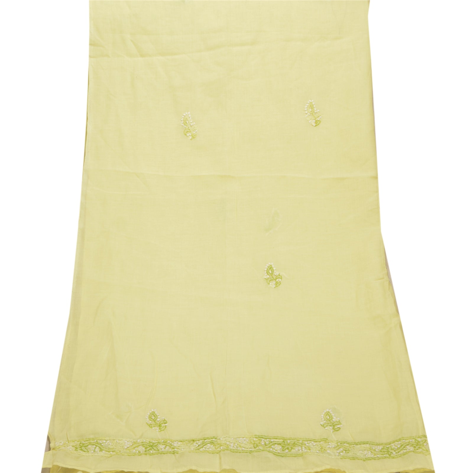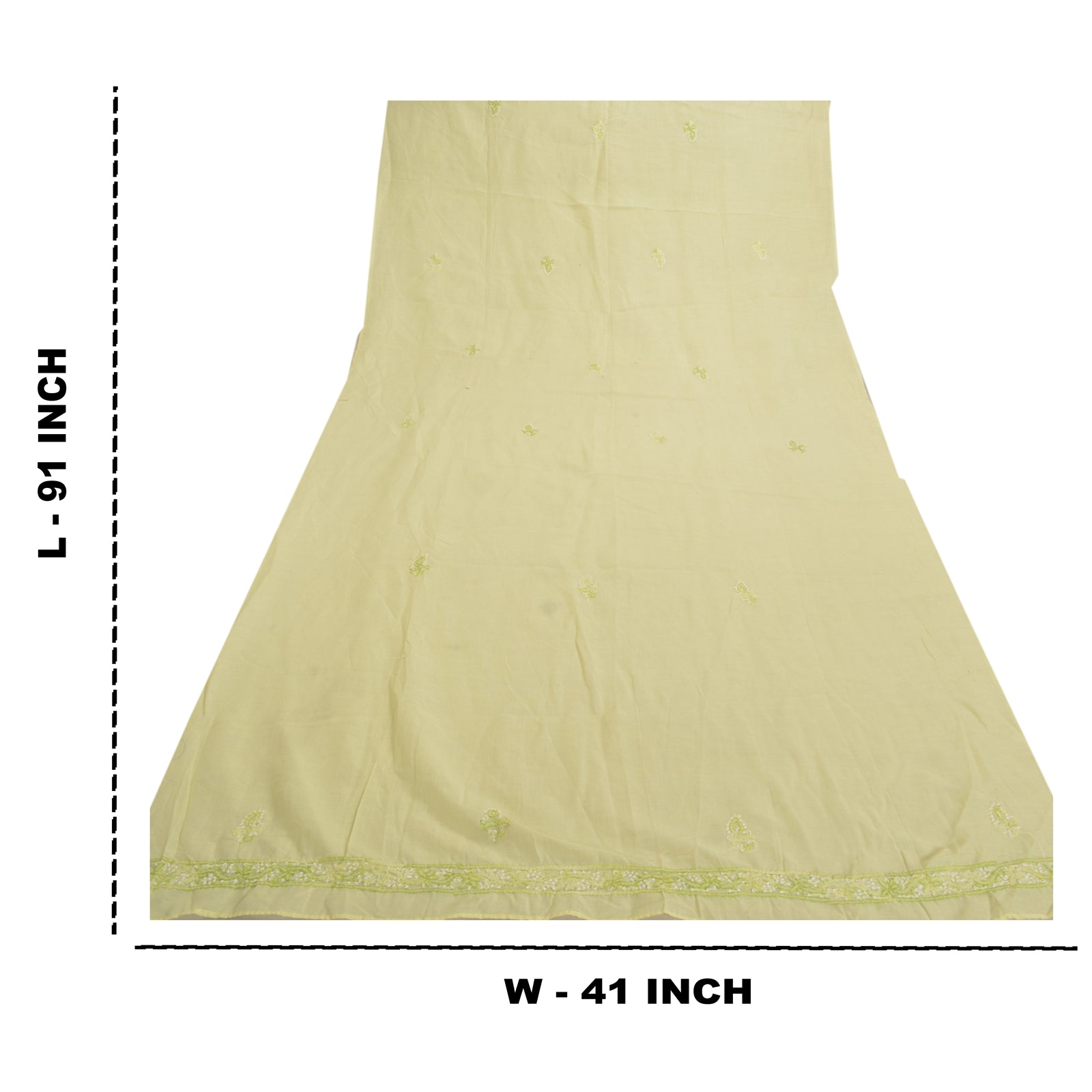 Sanskriti Vintage Dupatta Long Stole Cotton Green Hand Embroidered Chikankari