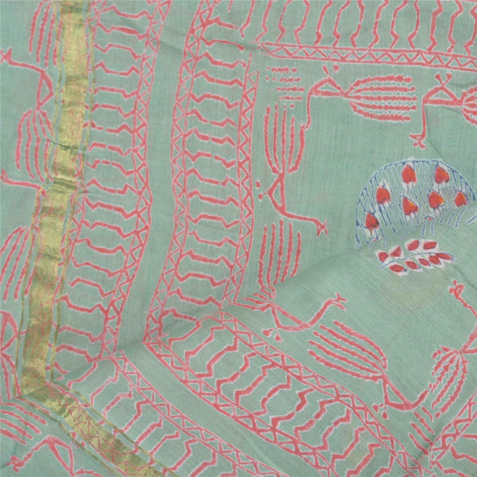 Sanskriti Vintage Dupatta Long Stole Cotton Green Printed Peacock Wrap Scarves