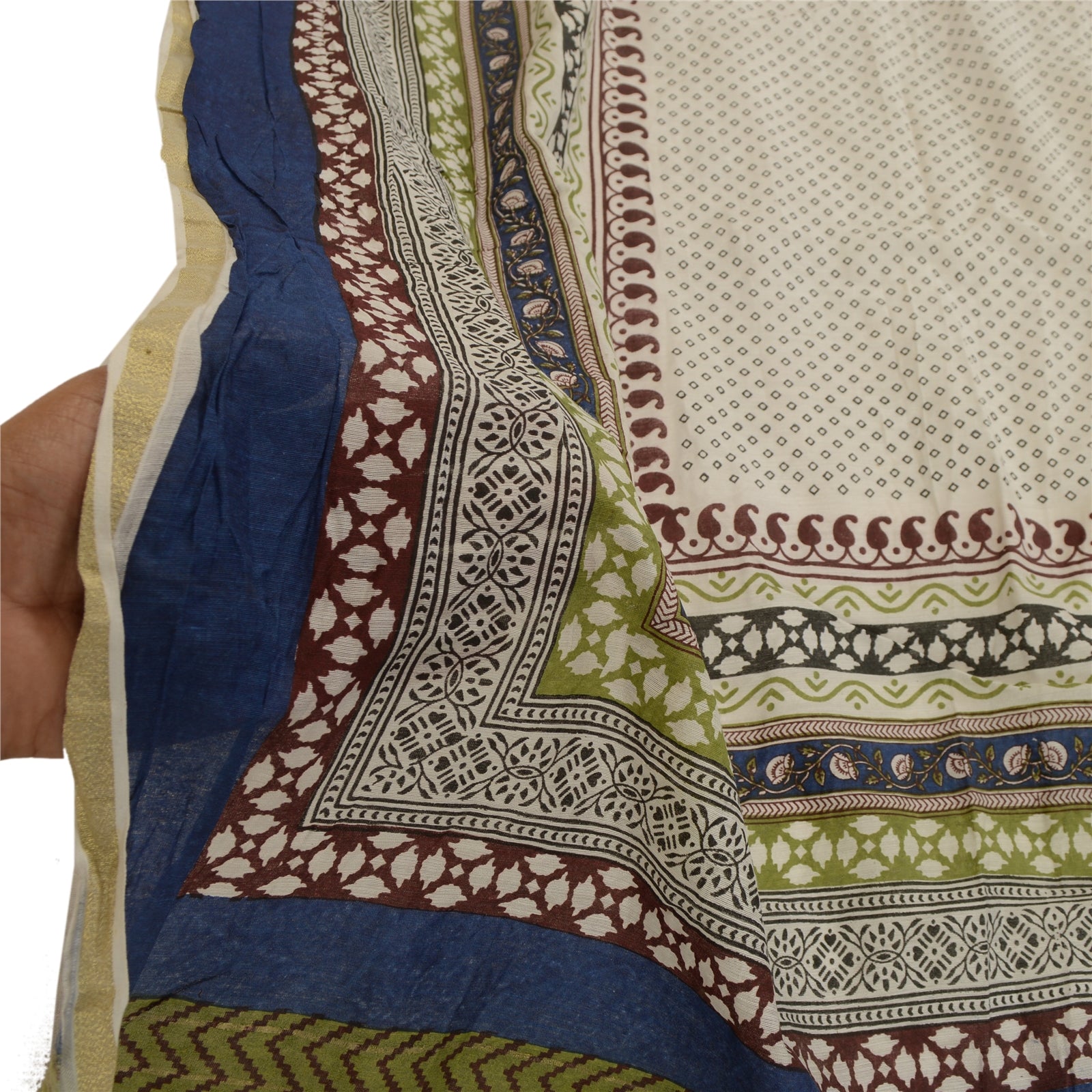 Sanskriti Vintage Dupatta Long Stole Cotton Hijab Ivory Printed Wrap Scarves