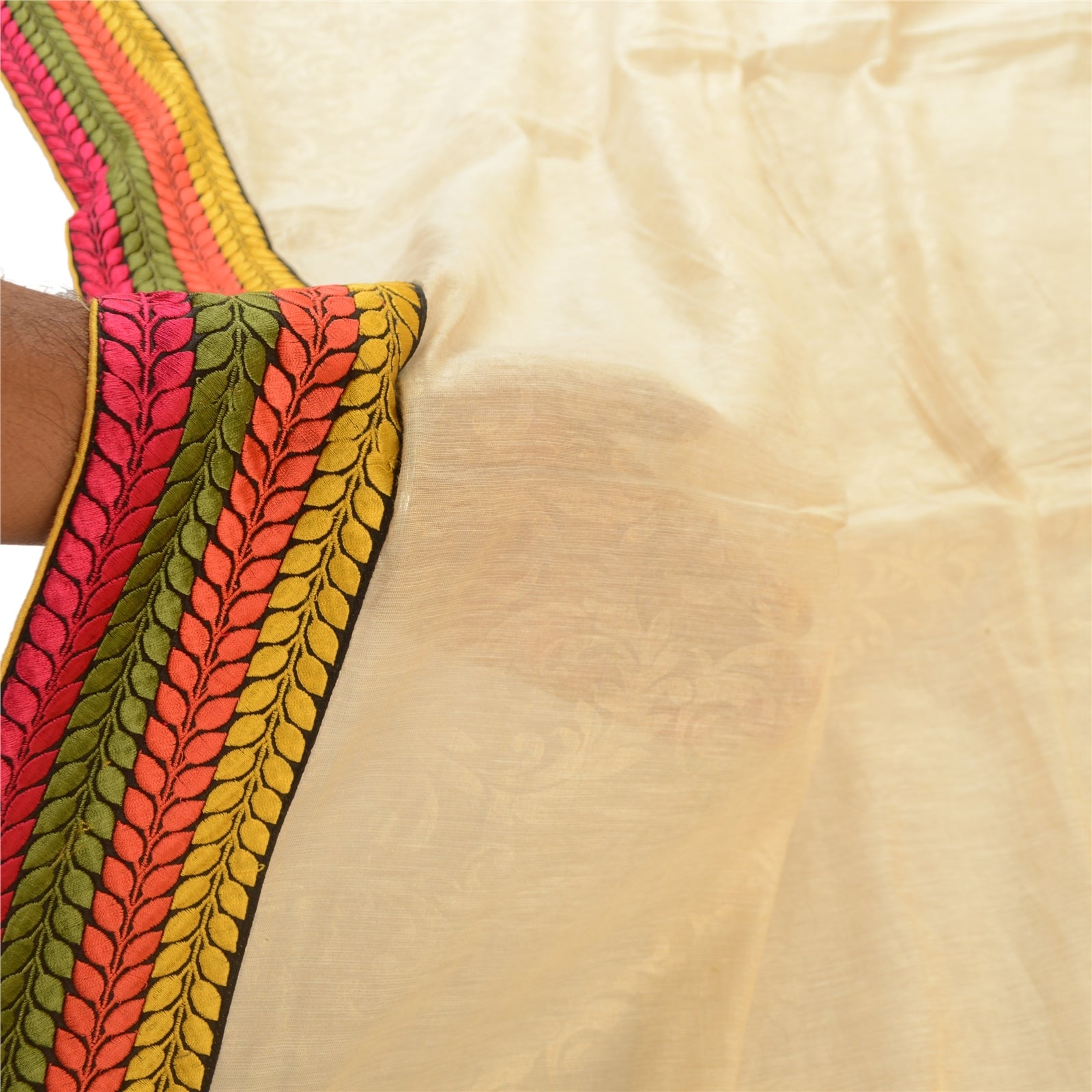 Sanskriti Vintage Dupatta Long Stole Cotton Silk Ivory Embroidered Patch Work