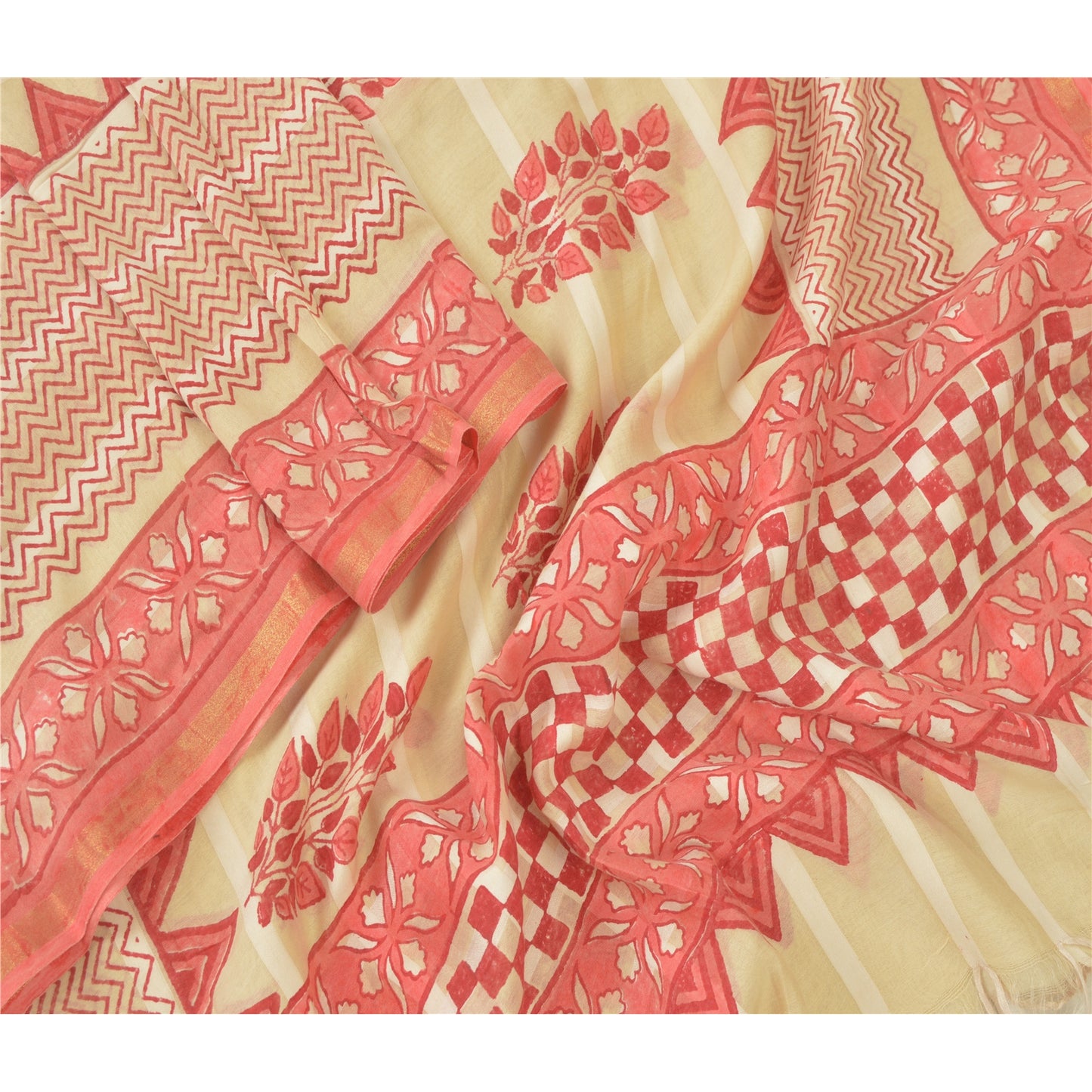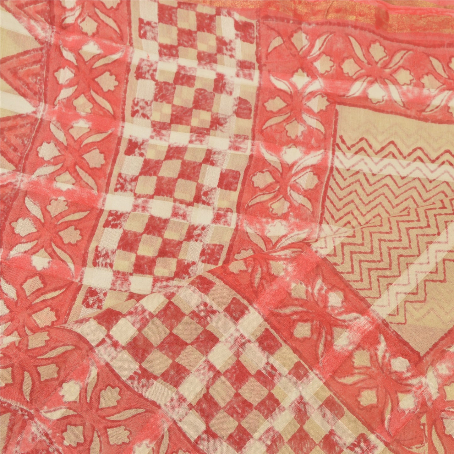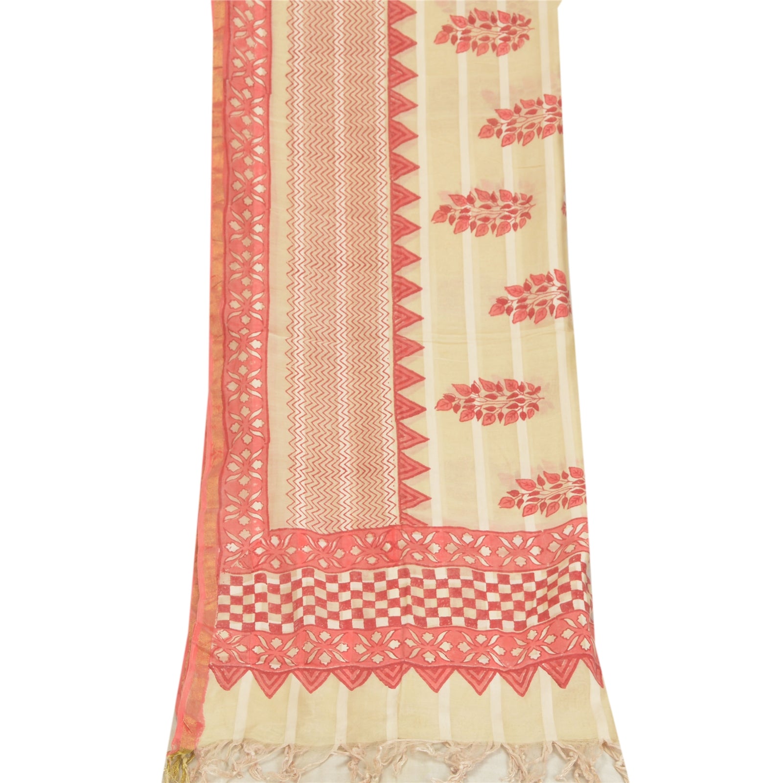 Elegant Cream & Red Colored Cotton Printed Long Scarf/Dupatta. The center portion has printed floral pattern. Border has similar printed work with floral pattern is really enhancing beauty of the dupatta/stole. A truly awesome dupatta.!!!! A truly awesome dupatta.!!!! This dupatta/stole can be used for various crafting ideas too. Use it for dress designing, as a throw, as window dressing, upholstery, table linen and much more. Let your creative juices flow.
