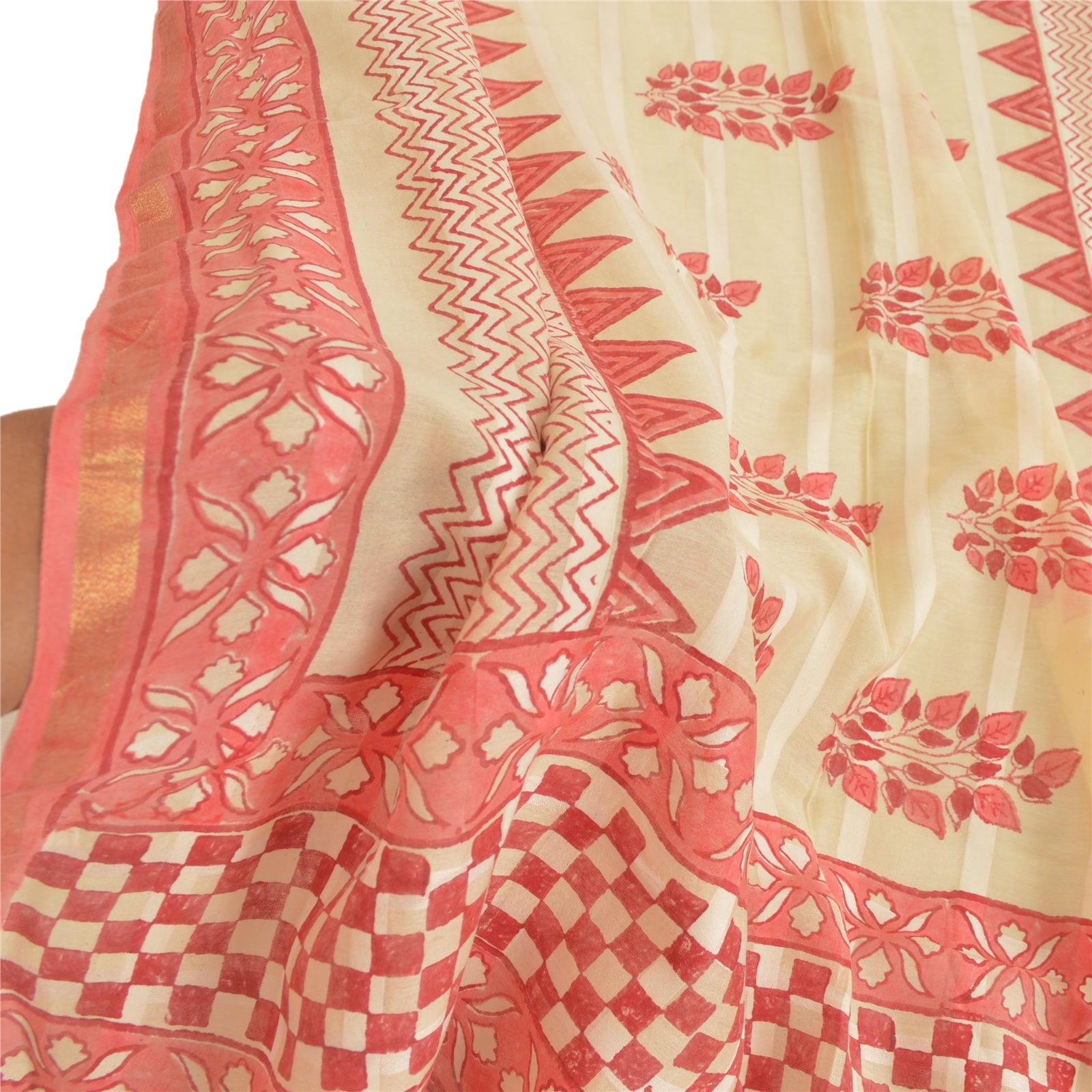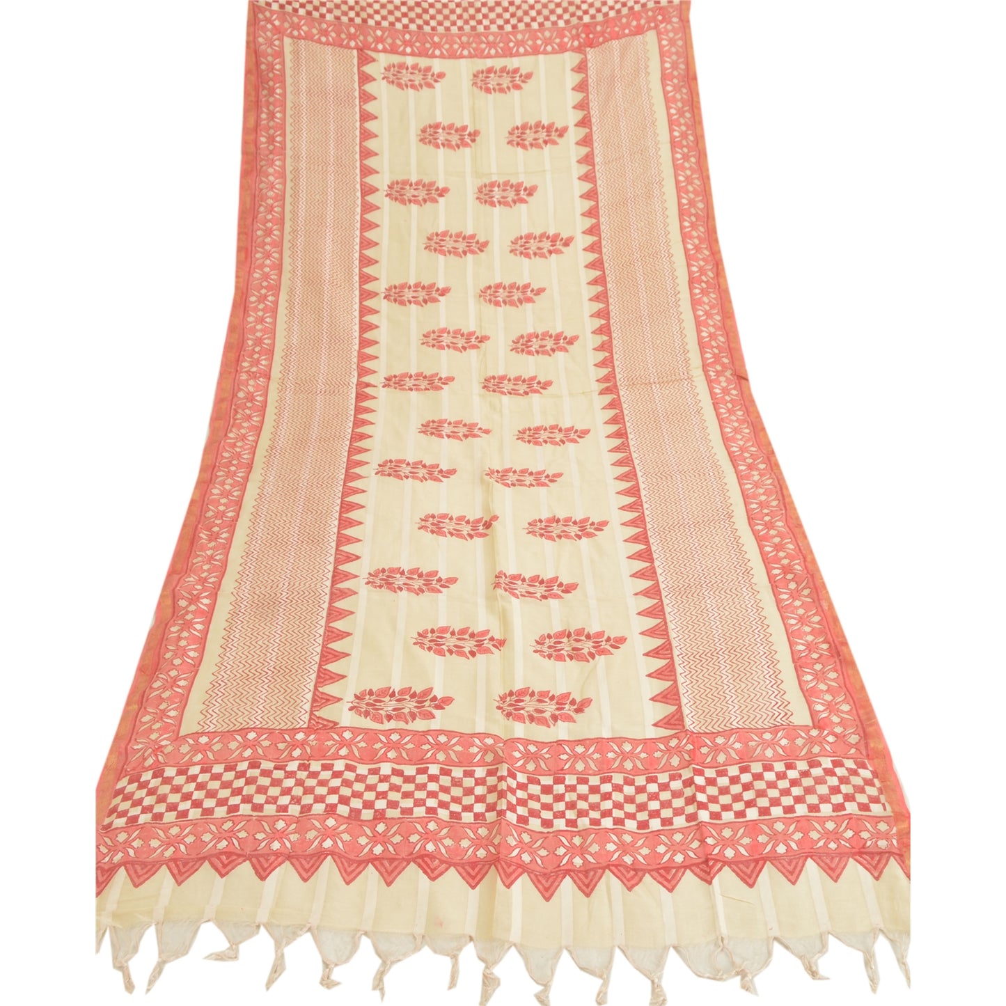 Sanskriti Vintage Dupatta Long Stole Cream Cotton Printed Wrap Hijab