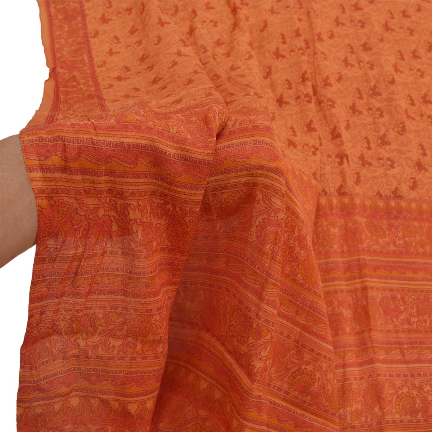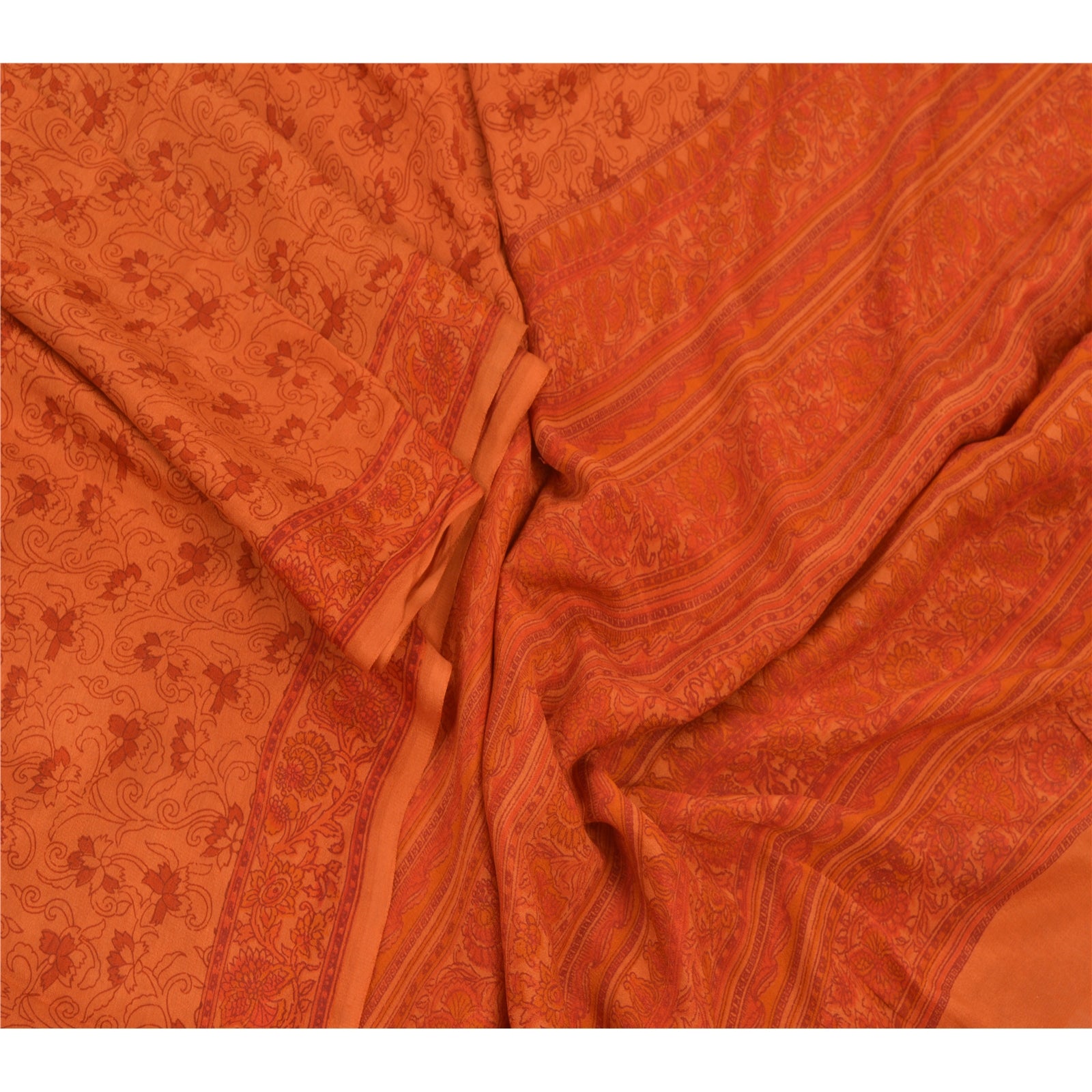 Sanskriti Vintage Dupatta Long Stole Crepe Silk Orange Printed Floral Scarves