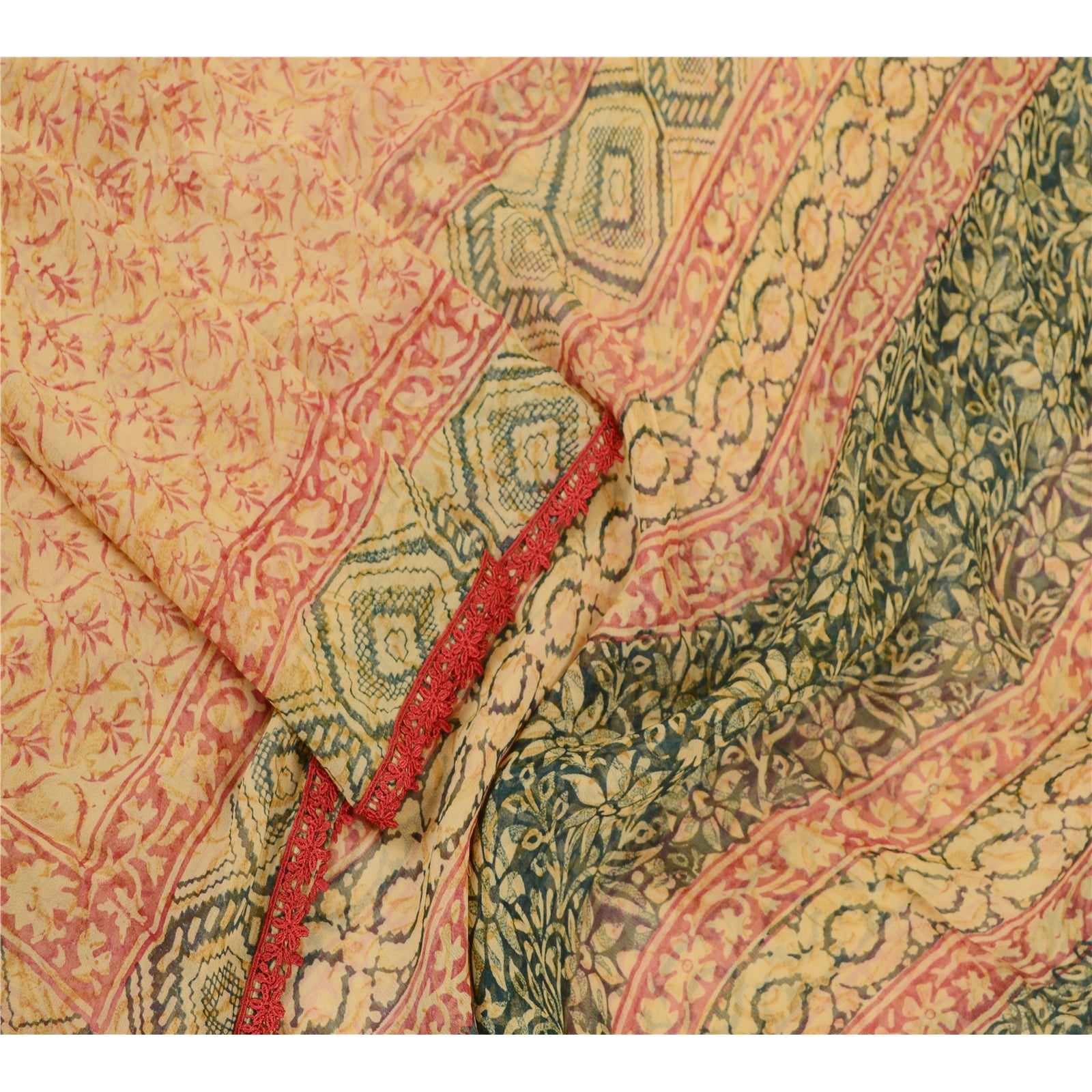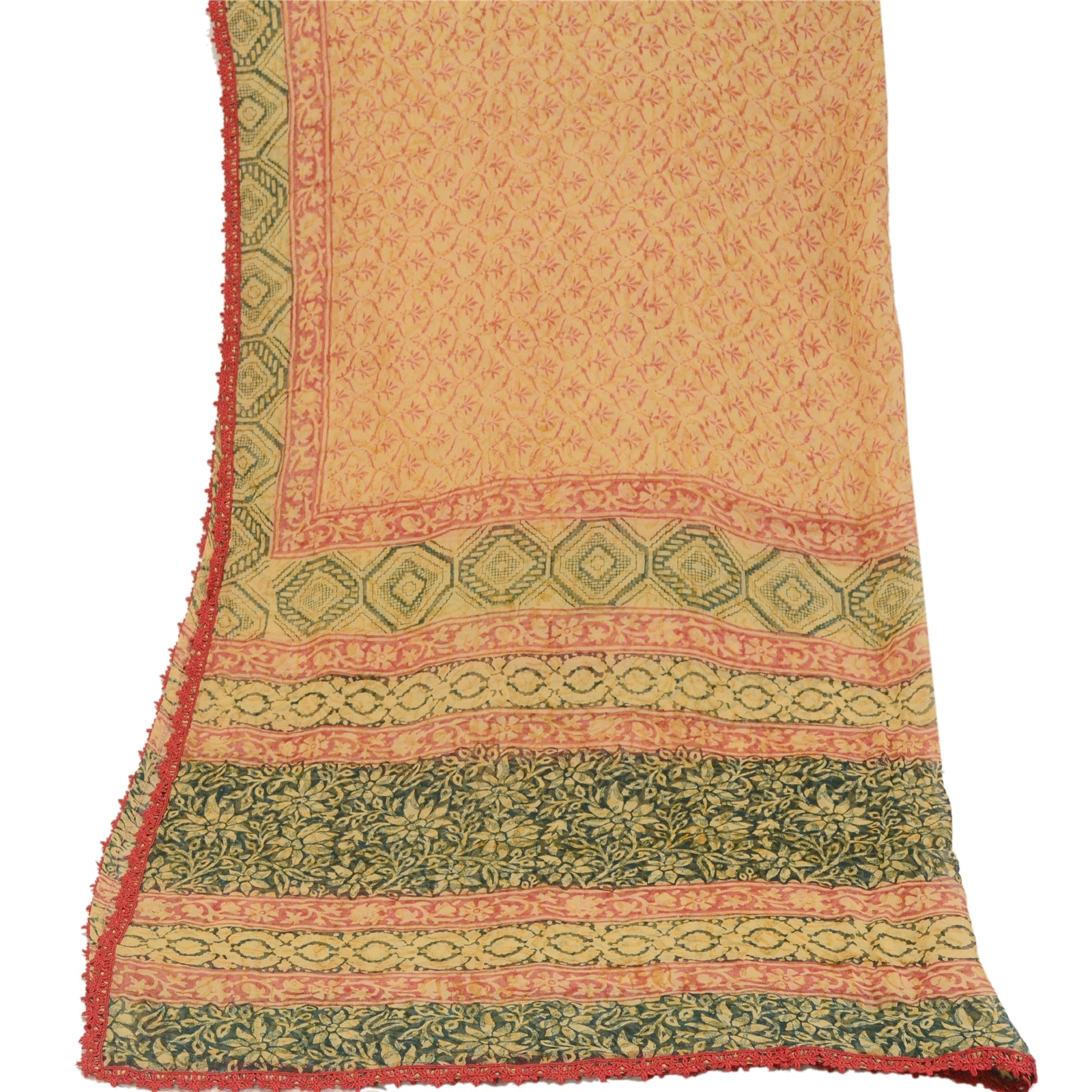 Sanskriti Vintage Dupatta Long Stole Georgette Ivory Hijab Printed Wrap Scarves