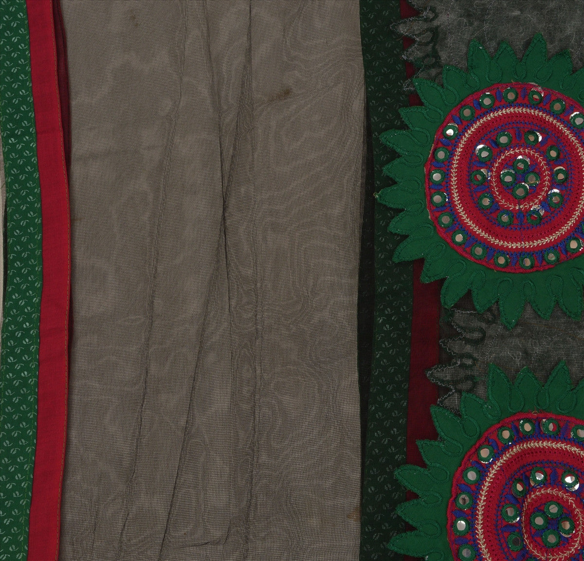 Dupatt has painted green & pink Sustainable Fabric patch work on 4 sides of border .