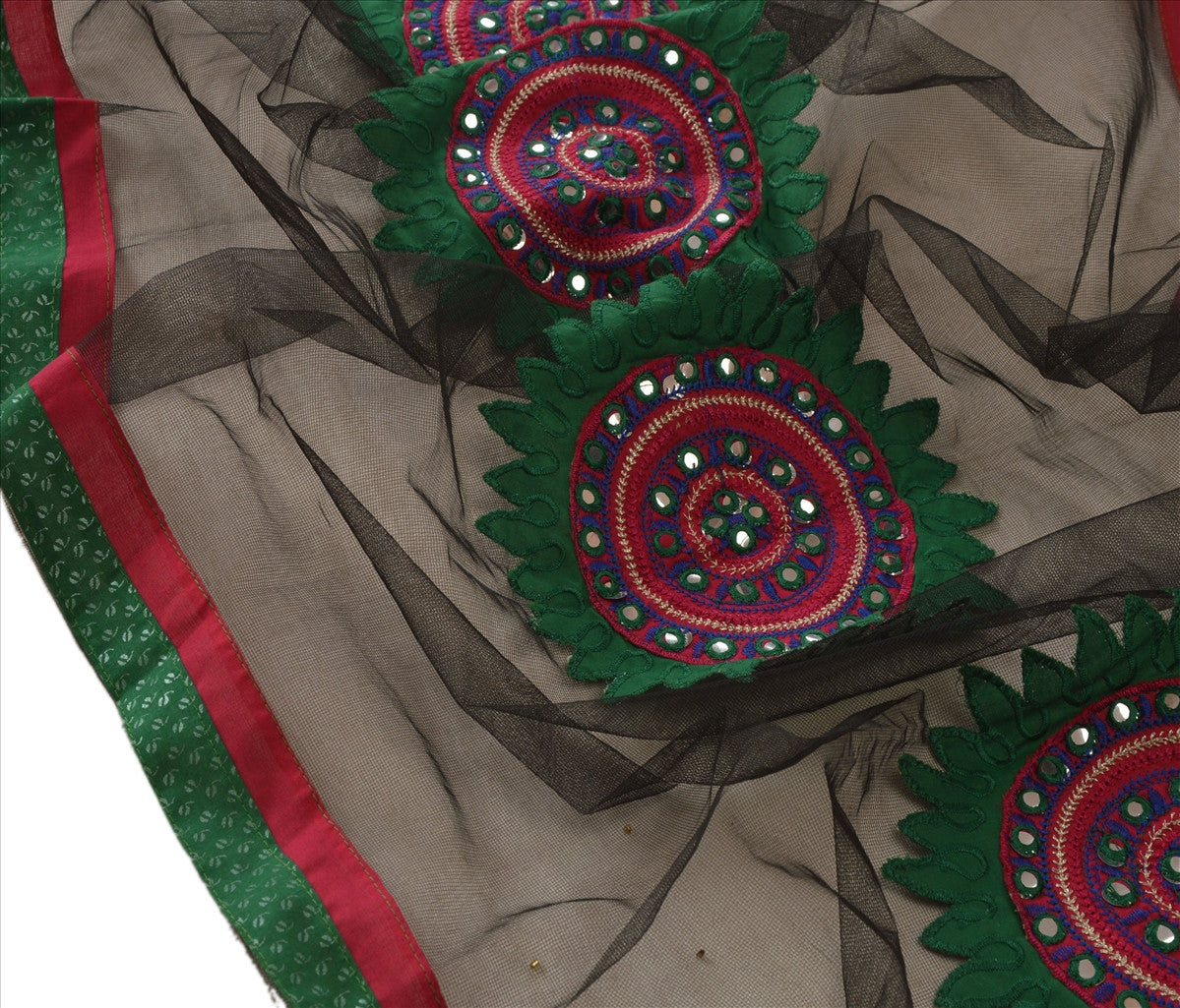 The pink & green Sustainable Fabric patch work with mirror work on black color base Sustainable Fabric is really enhancing the beauty of the dupatta.