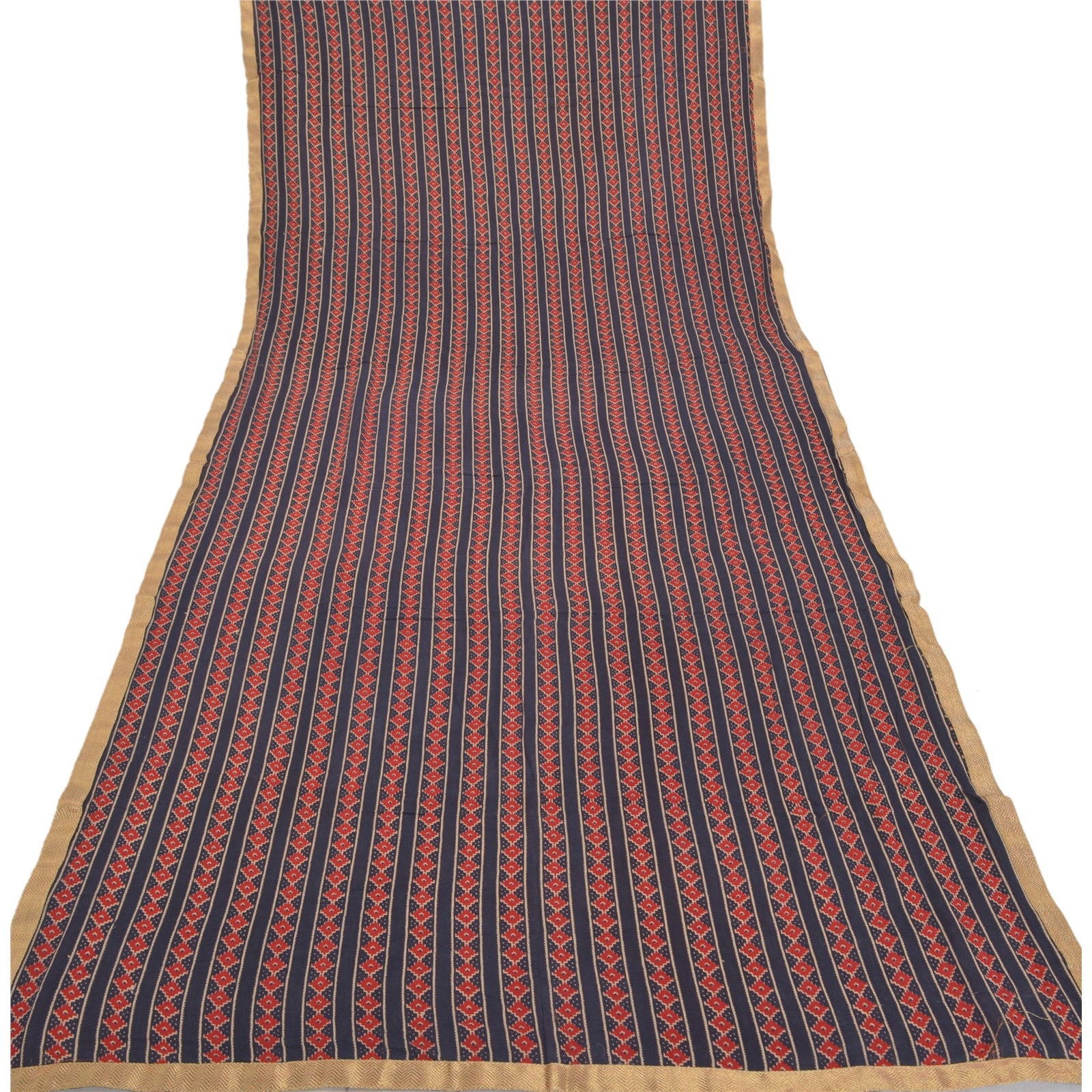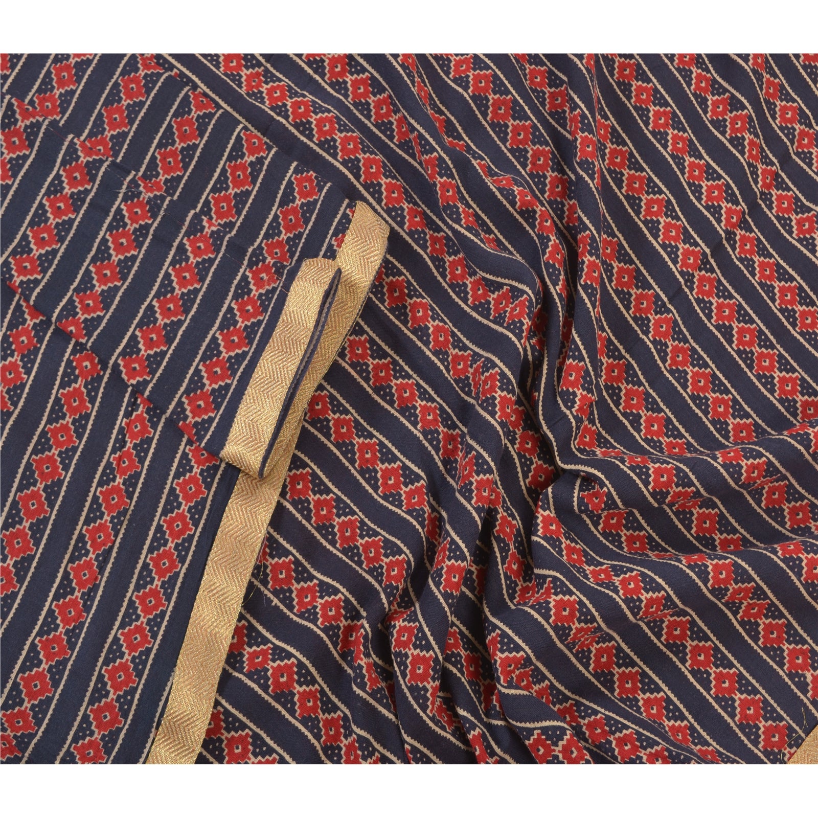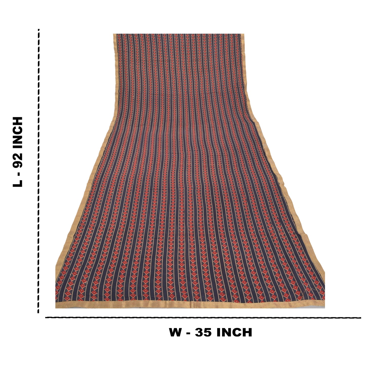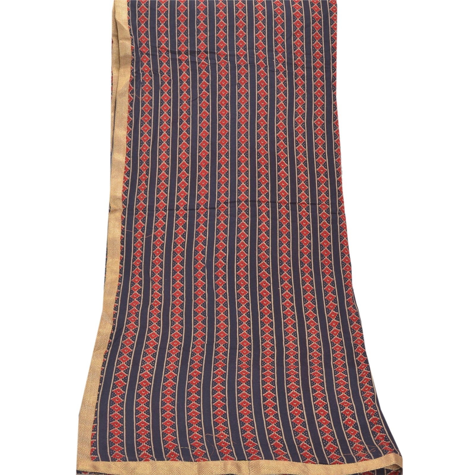 Sanskriti Vintage Dupatta Long Stole Pure Cotton Blue Shawl Printed Wrap Hijab
