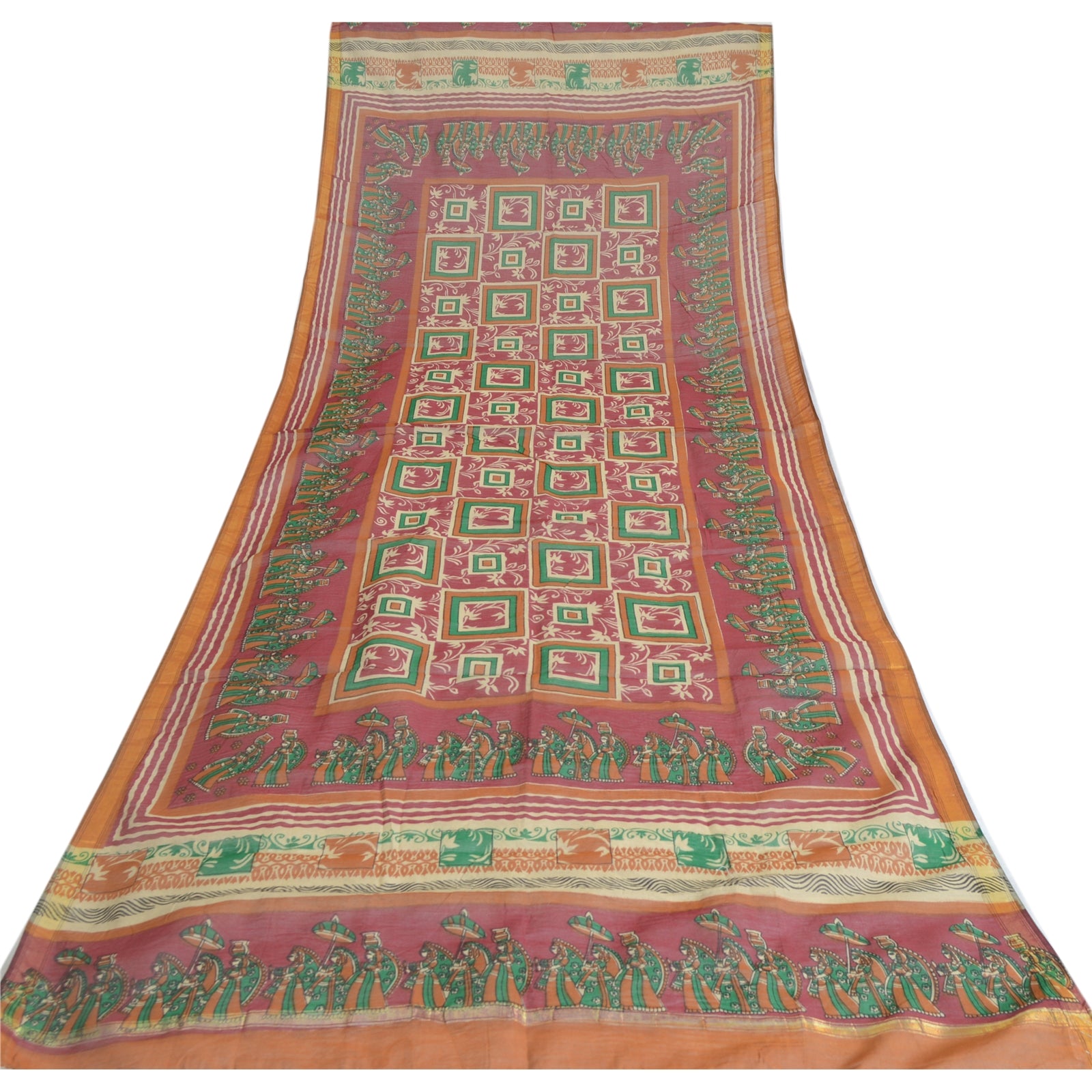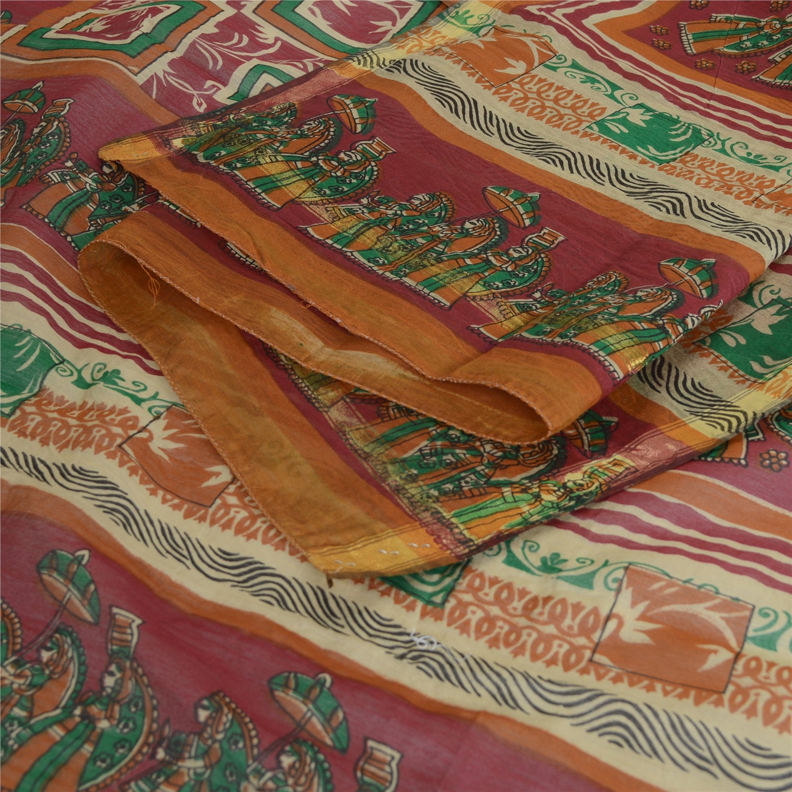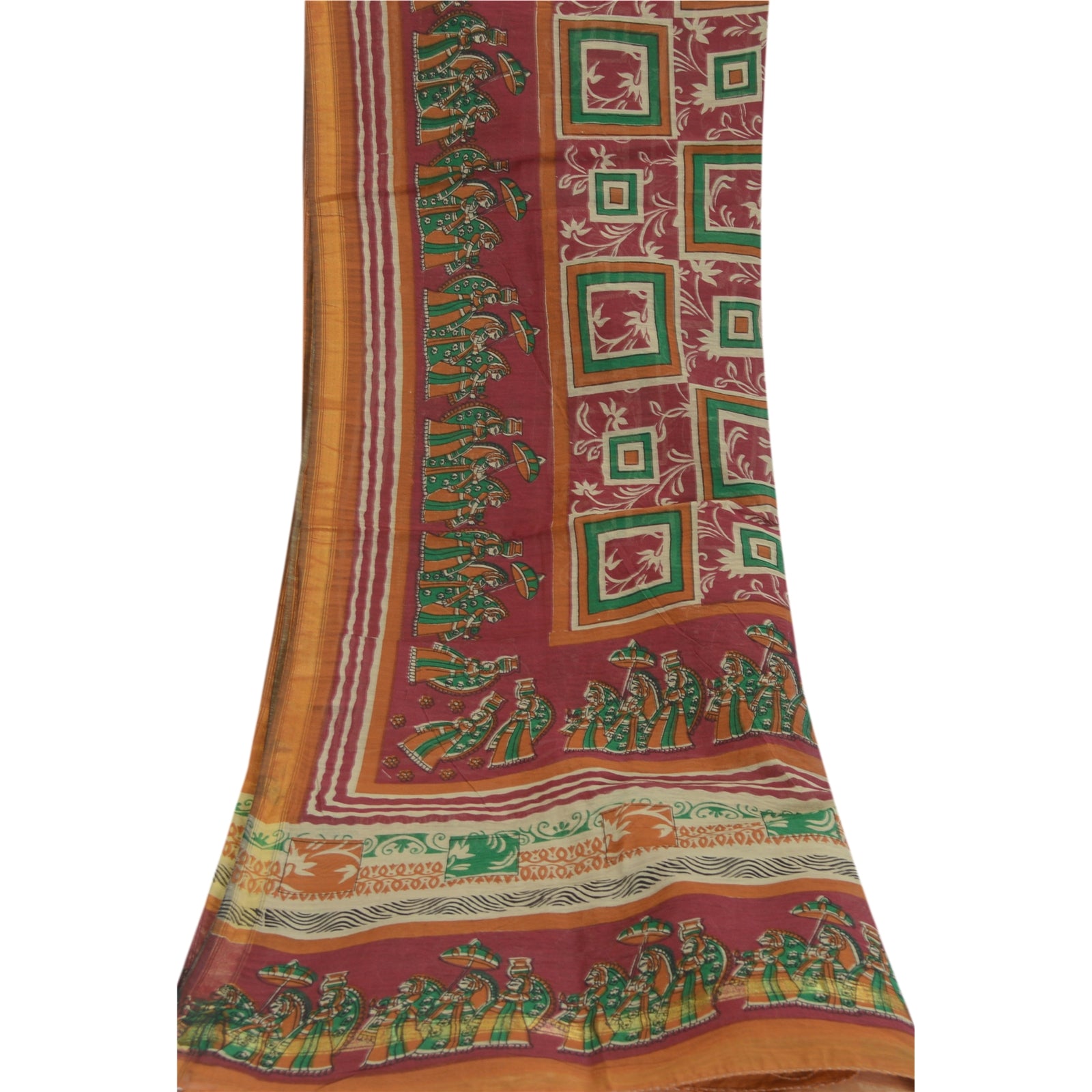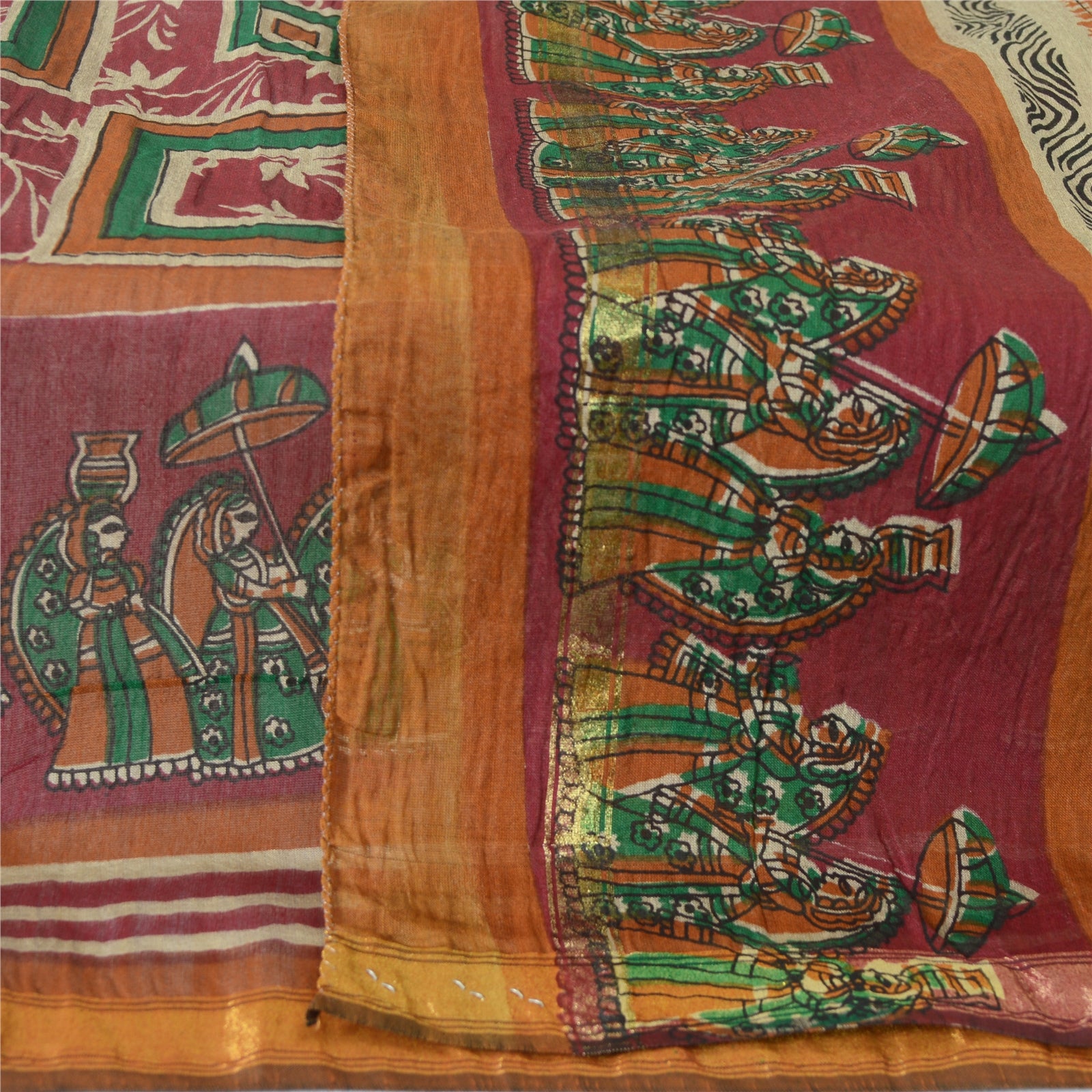 Attractive dark red & cream colored pure cotton printed long scarf/dupatta. The center portion has floral & geometric design with multi color printed work . Border of the dupatta has floral, human, pot & umbrella design with similar work . This item's Beauty Factor Awesome pattern with colorful printed work on blend cotton base fabric is really enhancing the beauty of the dupatta.