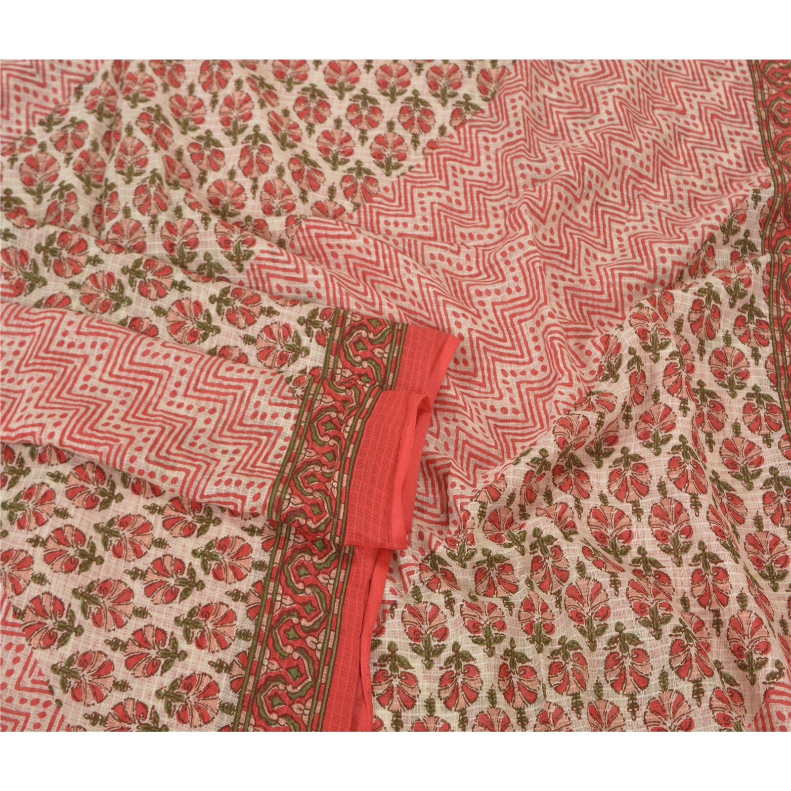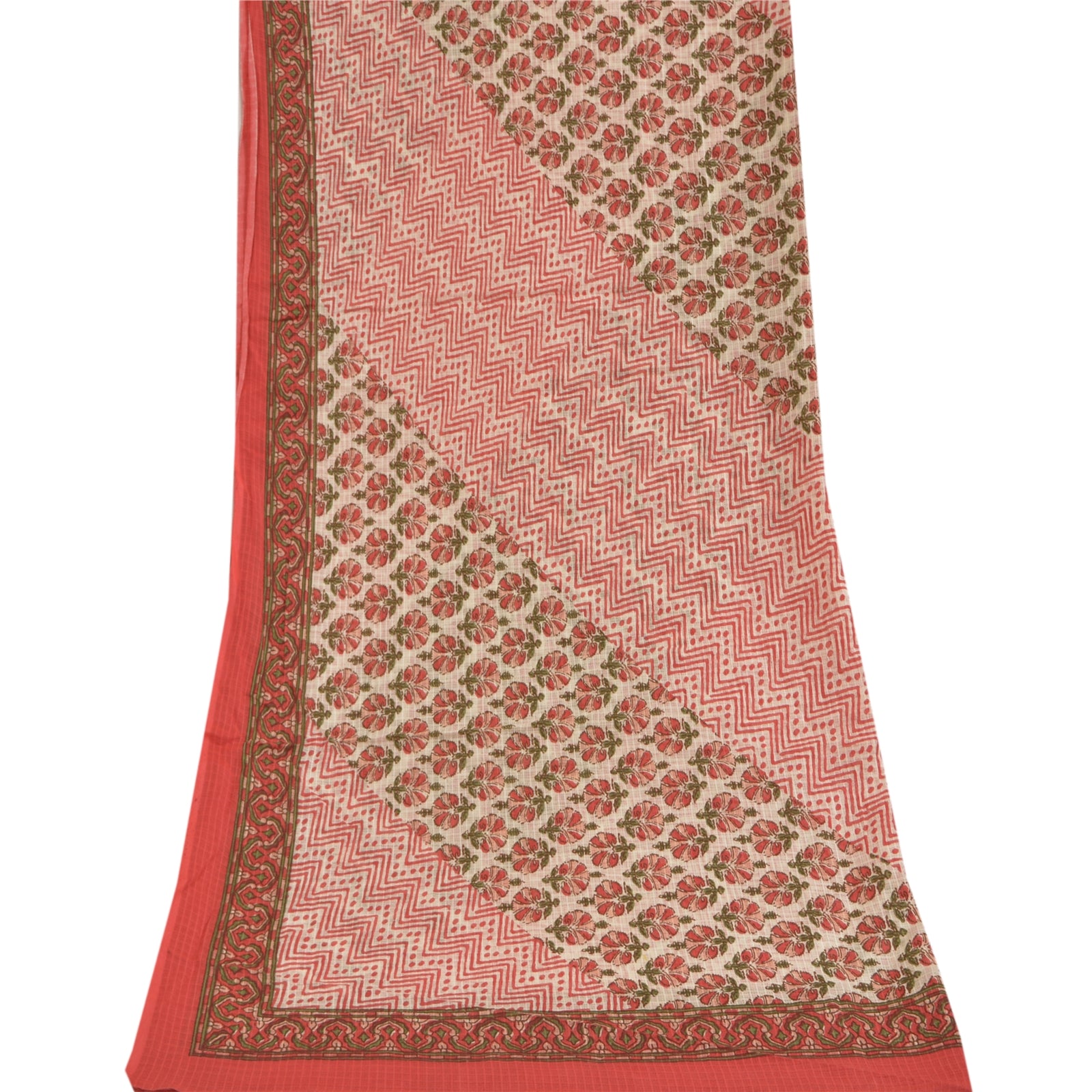Elegant ivory & red colored pure cotton block printed dupatta/stole. Center portion of the dupatta block printed floral & zig- zag design. Border has block printed floral design with soft base Sustainable Fabric is really enhancing beauty of the dupatta/stole. This dupatta/stole can be used for various crafting ideas too. Use it for dress designing, as a throw, as window dressing, upholstery, table linen and much more. Let your creative juices flow.