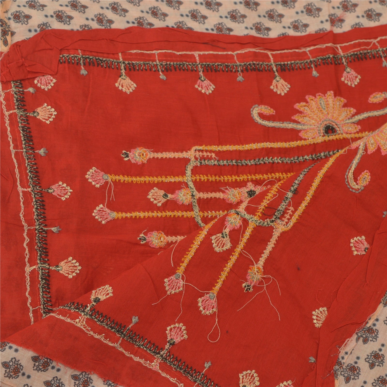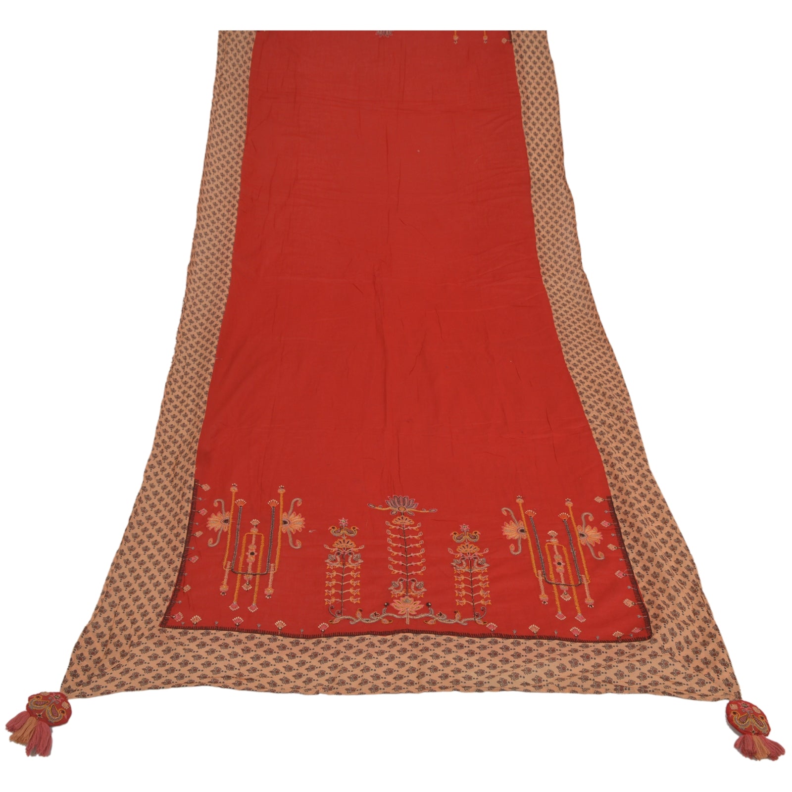 Sanskriti Vintage Dupatta Long Stole Pure Cotton Red Hijab Embroidered Veil