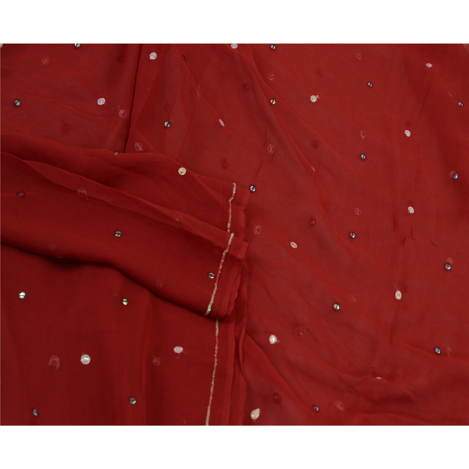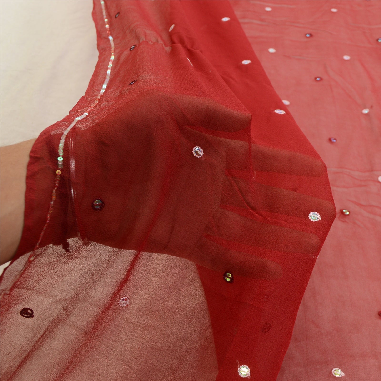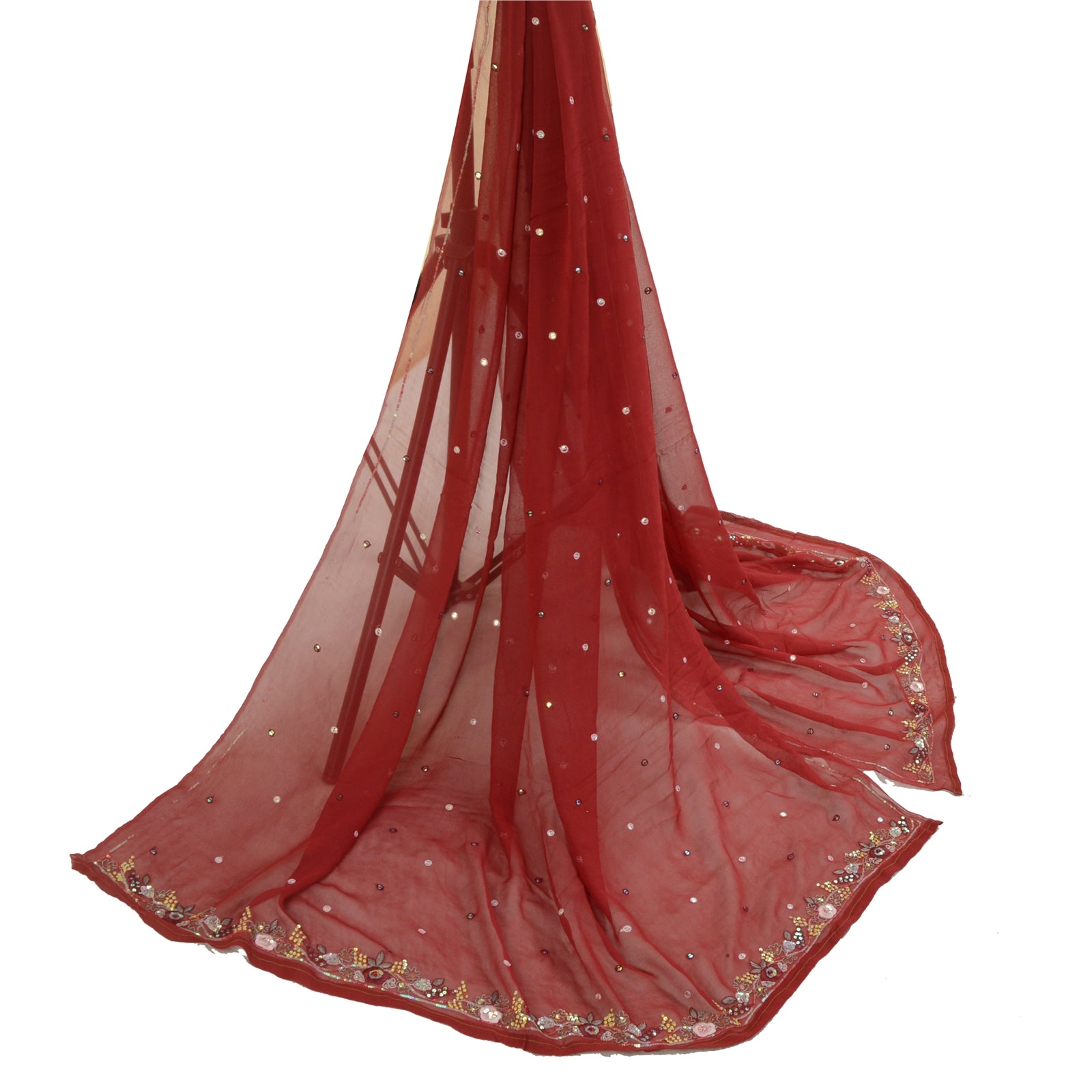 Sanskriti Vintage Dupatta Long Stole Pure Georgette Silk Dark Red Hand Beaded