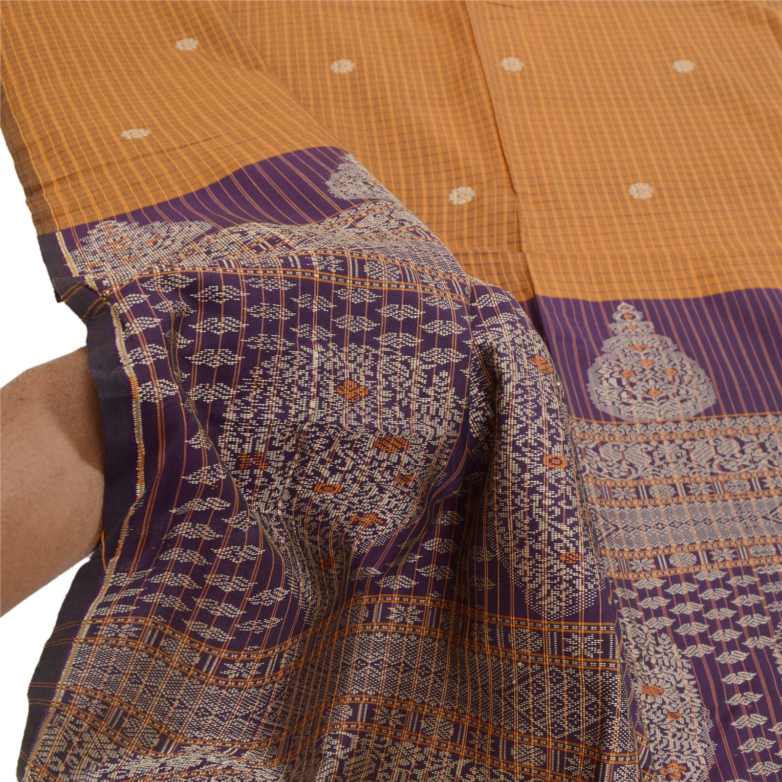 Beautiful saffron & purple pure silk woven long scarf/dupatta. The center features a neat woven grid pattern, while the border showcases floral and paisley motifs that enhance the stole’s regal character. Matching fringes adorn both ends. Beyond draping, this piece is perfect for creative projects—use it for dress designing, as a throw, window dressing, upholstery accents, table layering, and more. Let your creative juices flow.