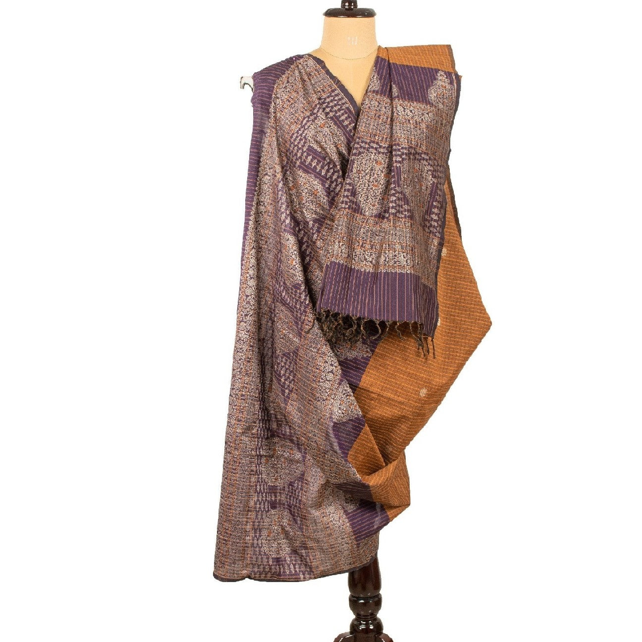 Pure Silk Woven Dupatta / Stole – Saffron & Purple