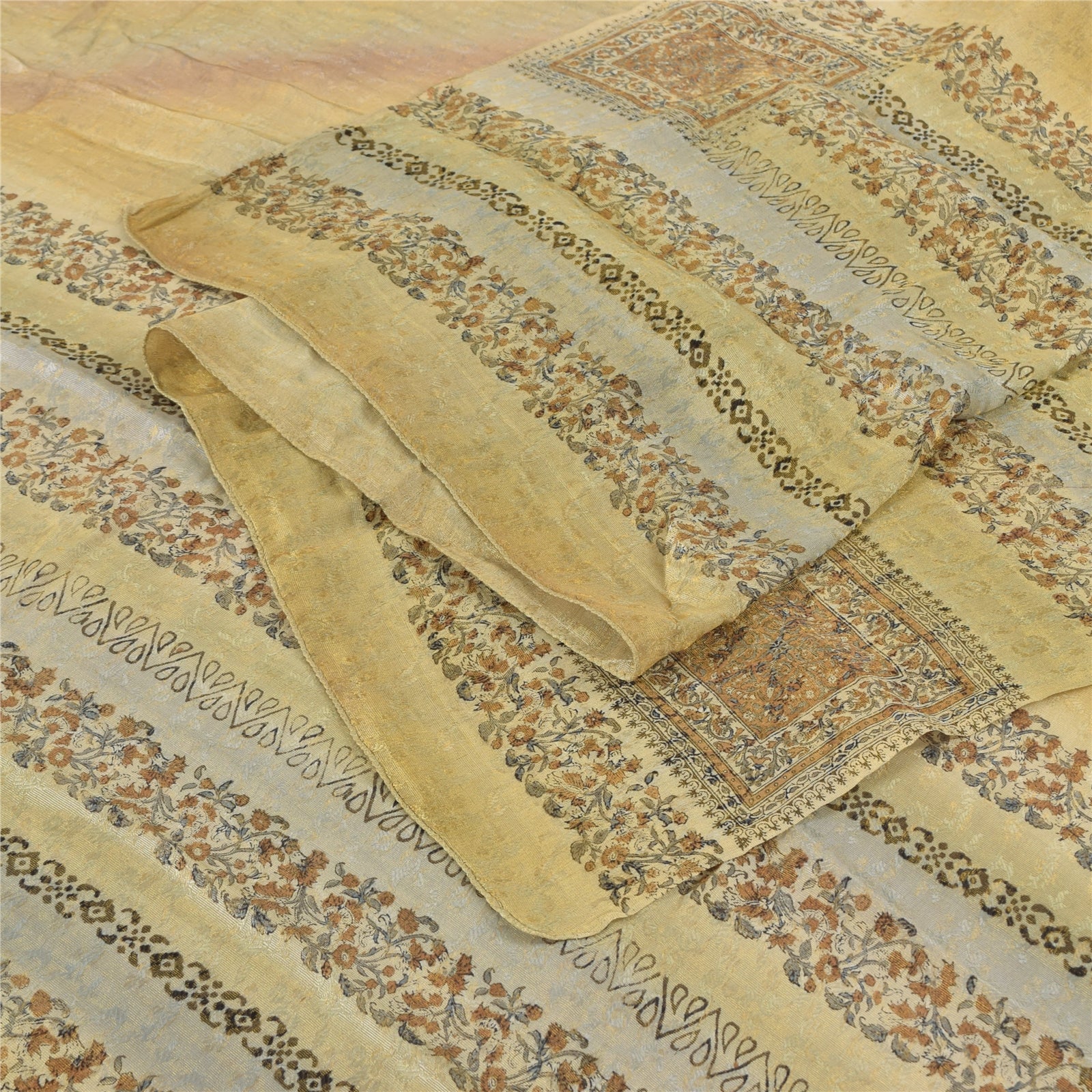 Sanskriti Vintage Gray Dupatta Long Stole Pure Silk Hand Block Print Woven Hijab