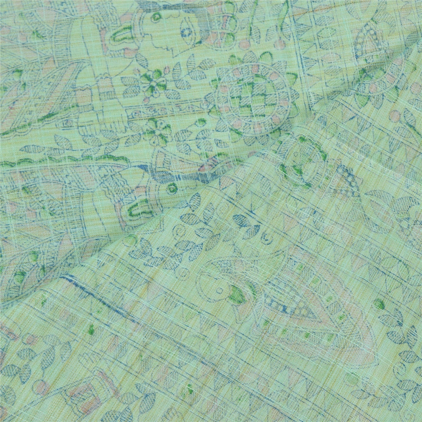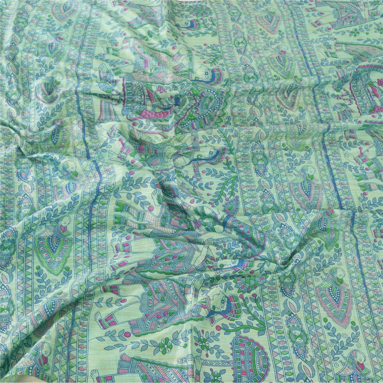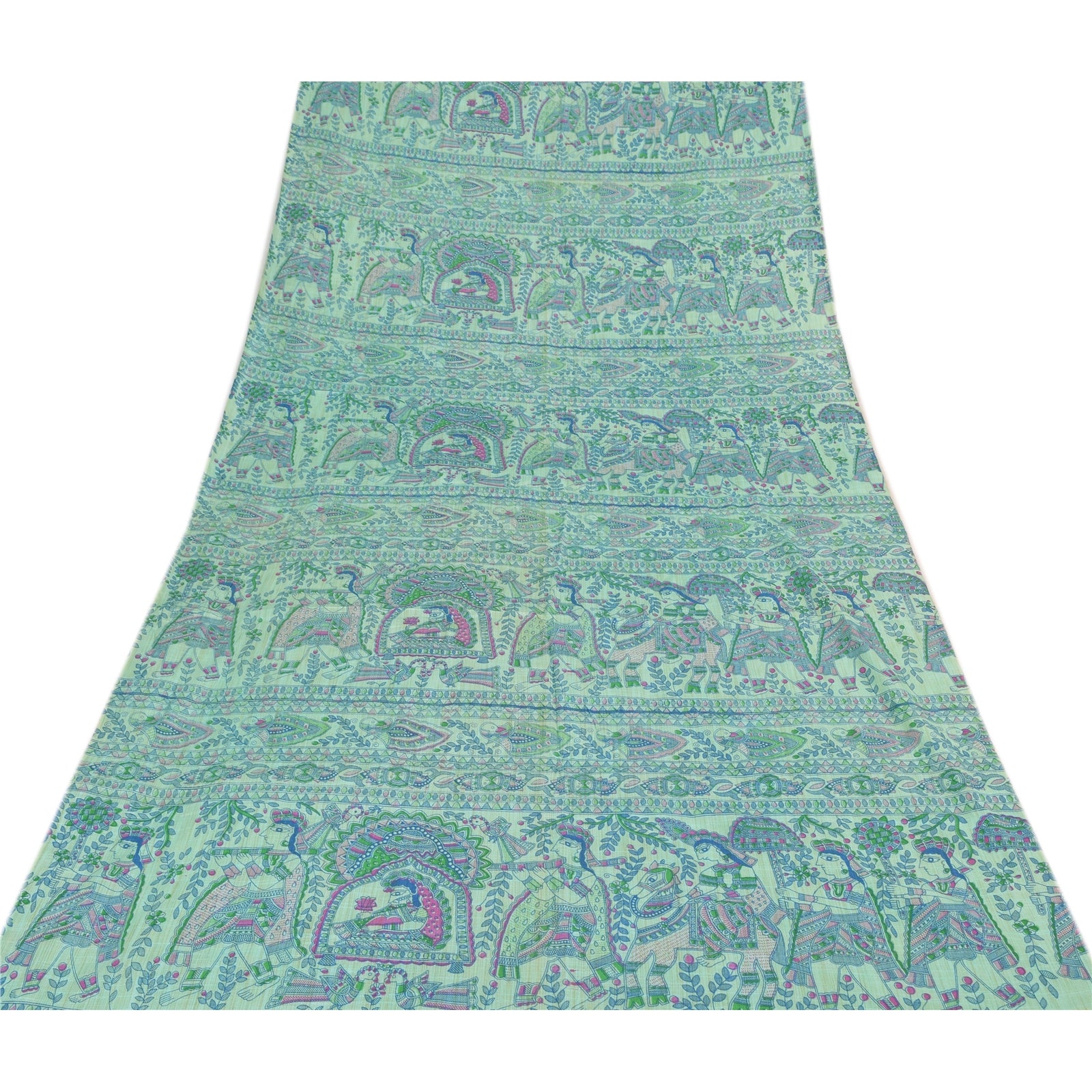 Sanskriti Vintage Green Dupatta Long Stole Art Silk Printed Premium Wrap Scarves
