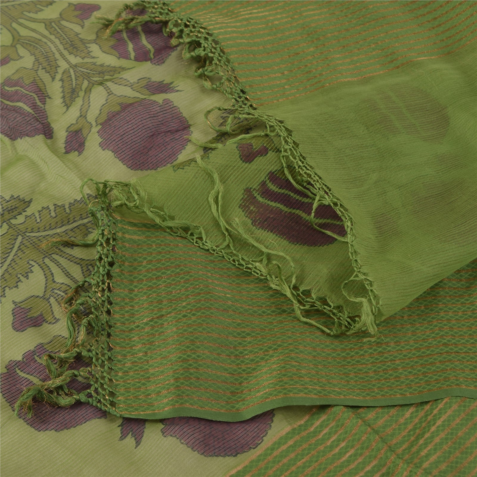 Sanskriti Vintage Green Dupatta Long Stole Pure Cotton Printed Woven Wrap Hijab