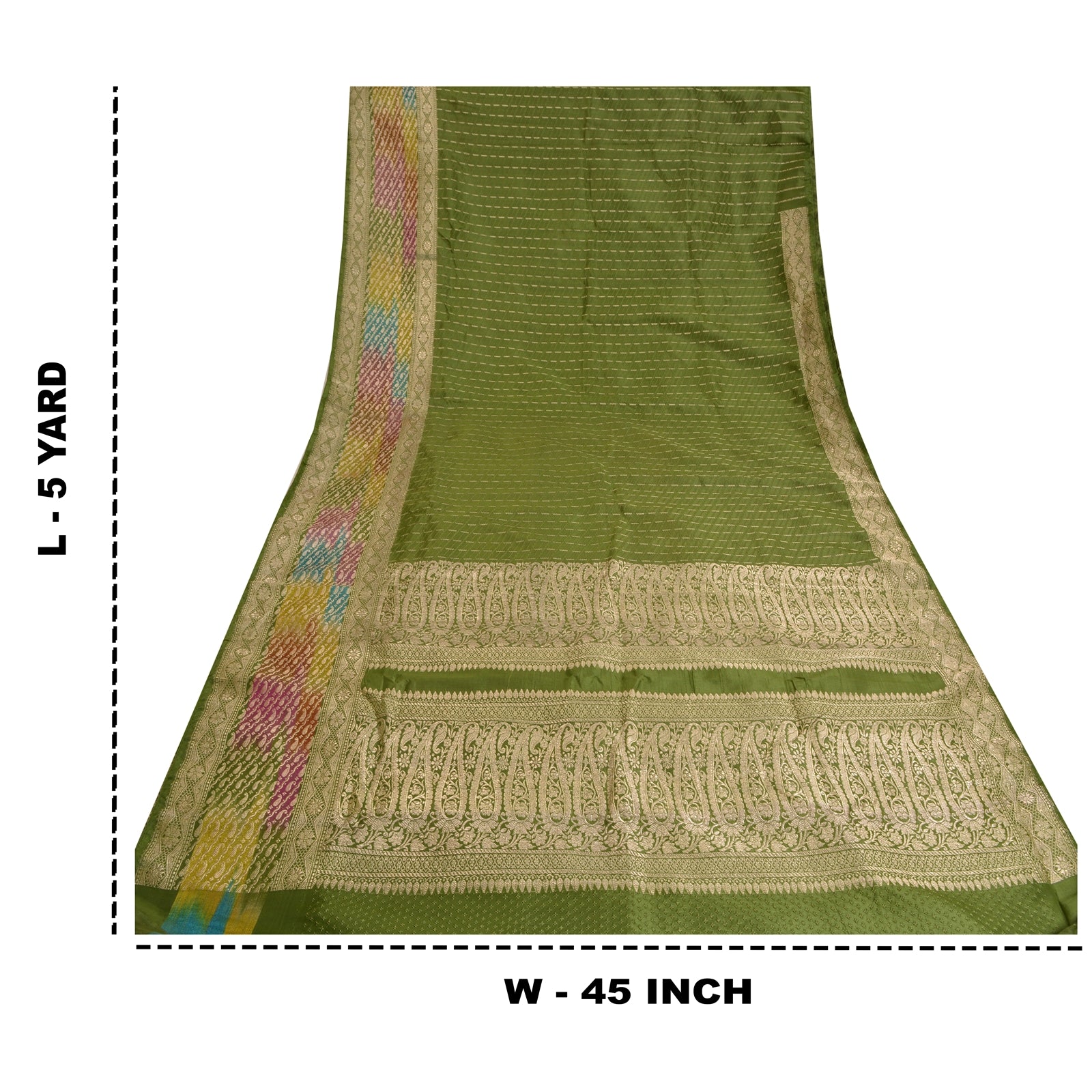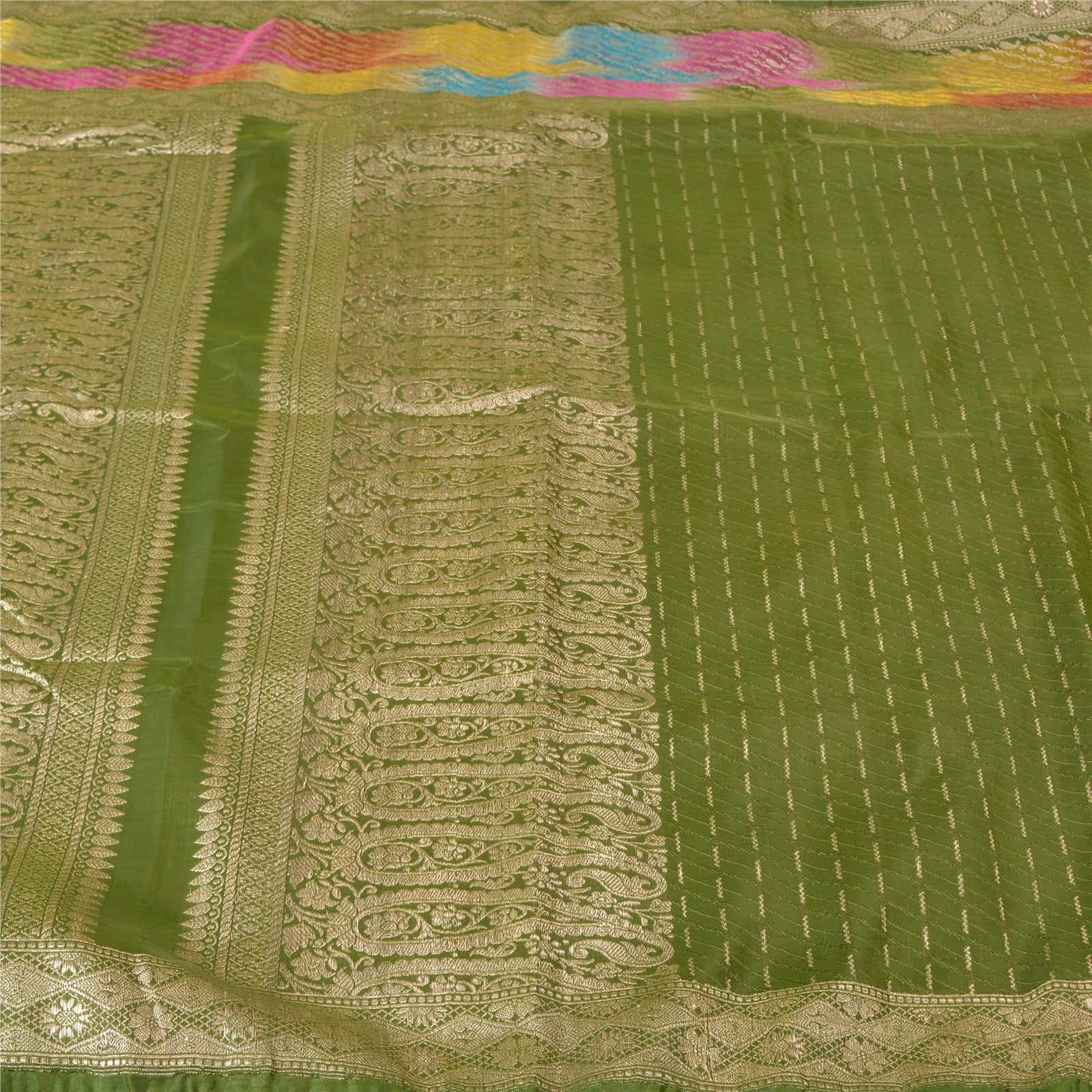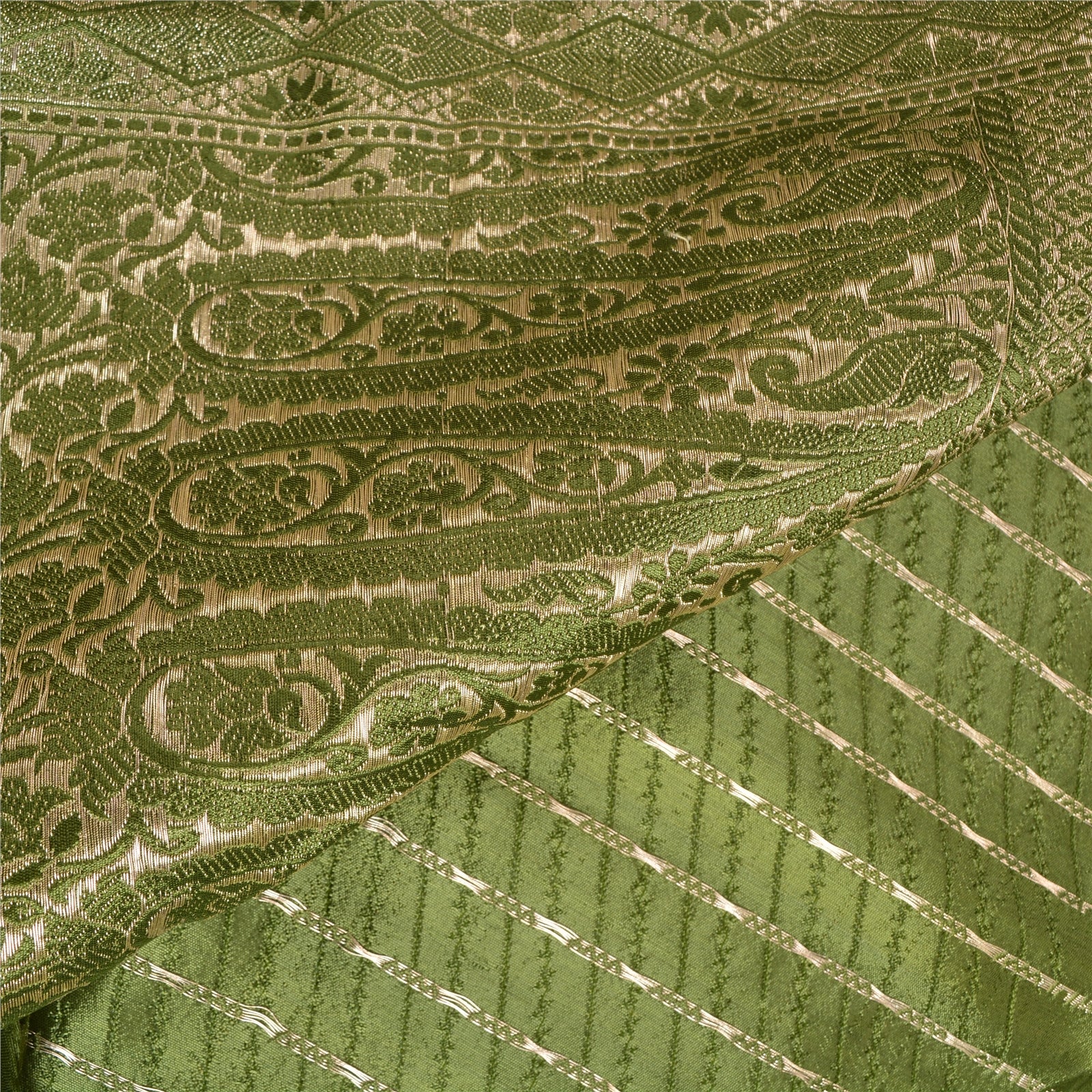 Sanskriti Vintage Green Heavy Sarees Pure Satin Silk Woven Brocade Sari Sustainable Fabric