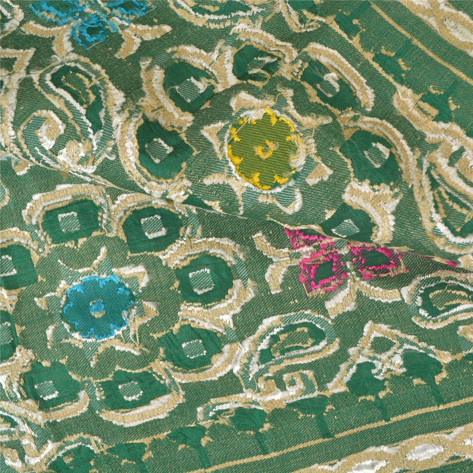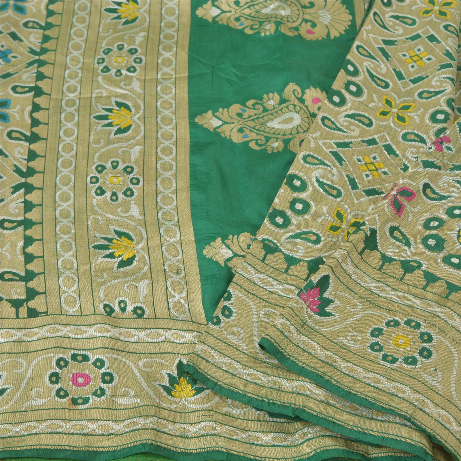 Sanskriti Vintage Green Indian Sarees Hand Woven 100% Pure Silk Sari 5yd Fabric