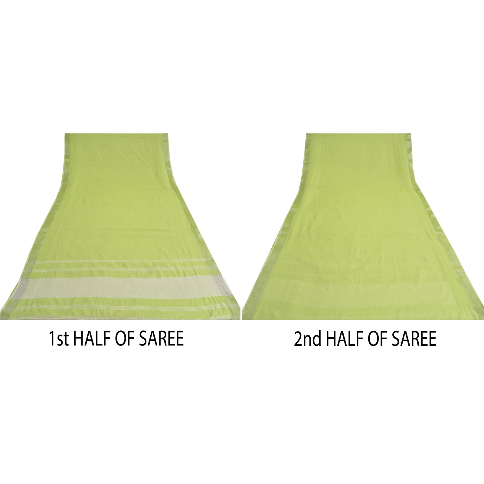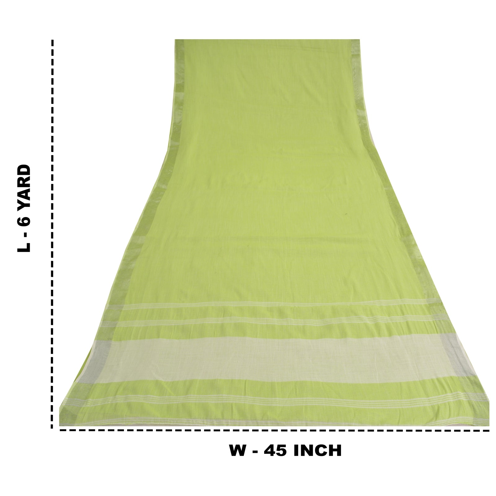 'THE ITEM COLOR OR SHADE MAY BE DARKER OR LIGHTER THAN THE PICTURE.' One Of A Kind Item. Beautiful Green & Ivory Colored Cotton (not pure Sustainable Fabric) Woven Sari/Sustainable Fabric. Pallu & Border has woven lines pattern. You can see plain solid color in center portion of saree. This item can be used for various crafting ideas too. Use it for dress designing, as a throw, as window dressing, upholstery, table linen and much more. Let your creative juices flow. International buyers please note: Import duties, taxes, and charges are not included in the item price or postage cost. These charges are the buyer's responsibility. Please check with your country's customs office to determine what these additional costs will be prior to bidding or buying. Buyer will pay custom duty/tax. It is calculated and charged differently by every country. As a seller I do not have any control over it. VAT or sales tax is calculated by the platform at the time of checkout. Customs charge is payable at the time of delivery.