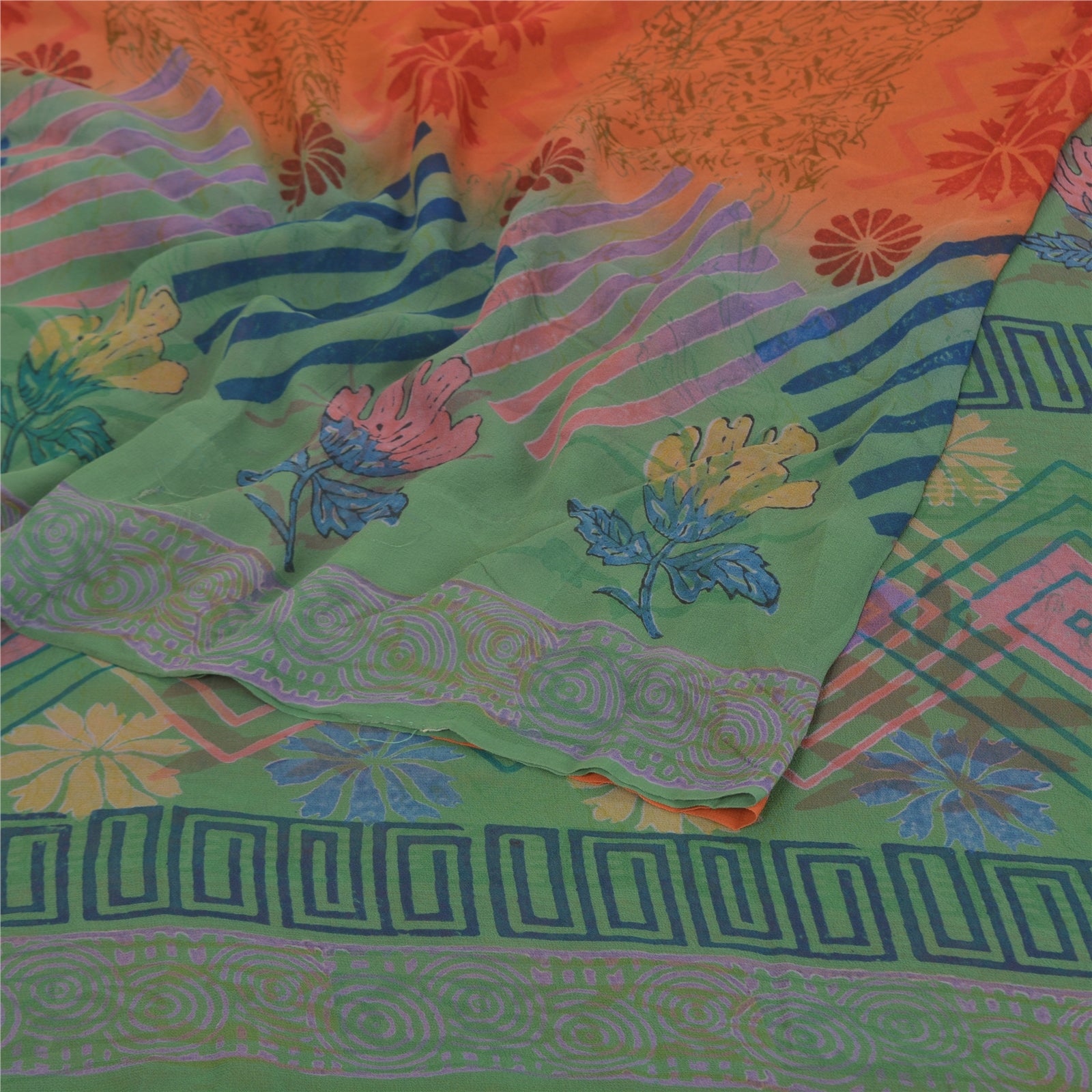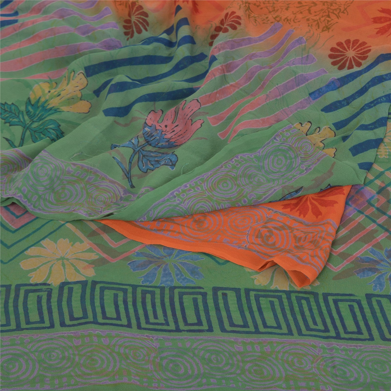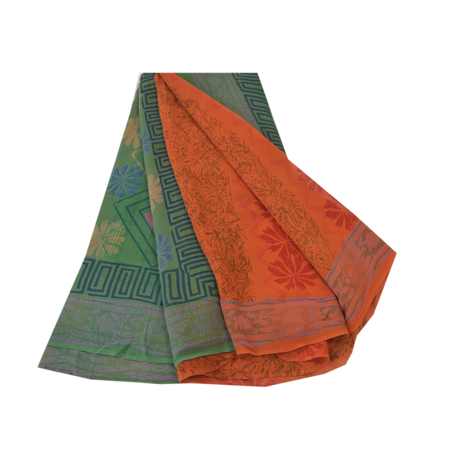 Sanskriti Vintage Green & orange Sarees 100% Pure Georgette Printed Sari Craft