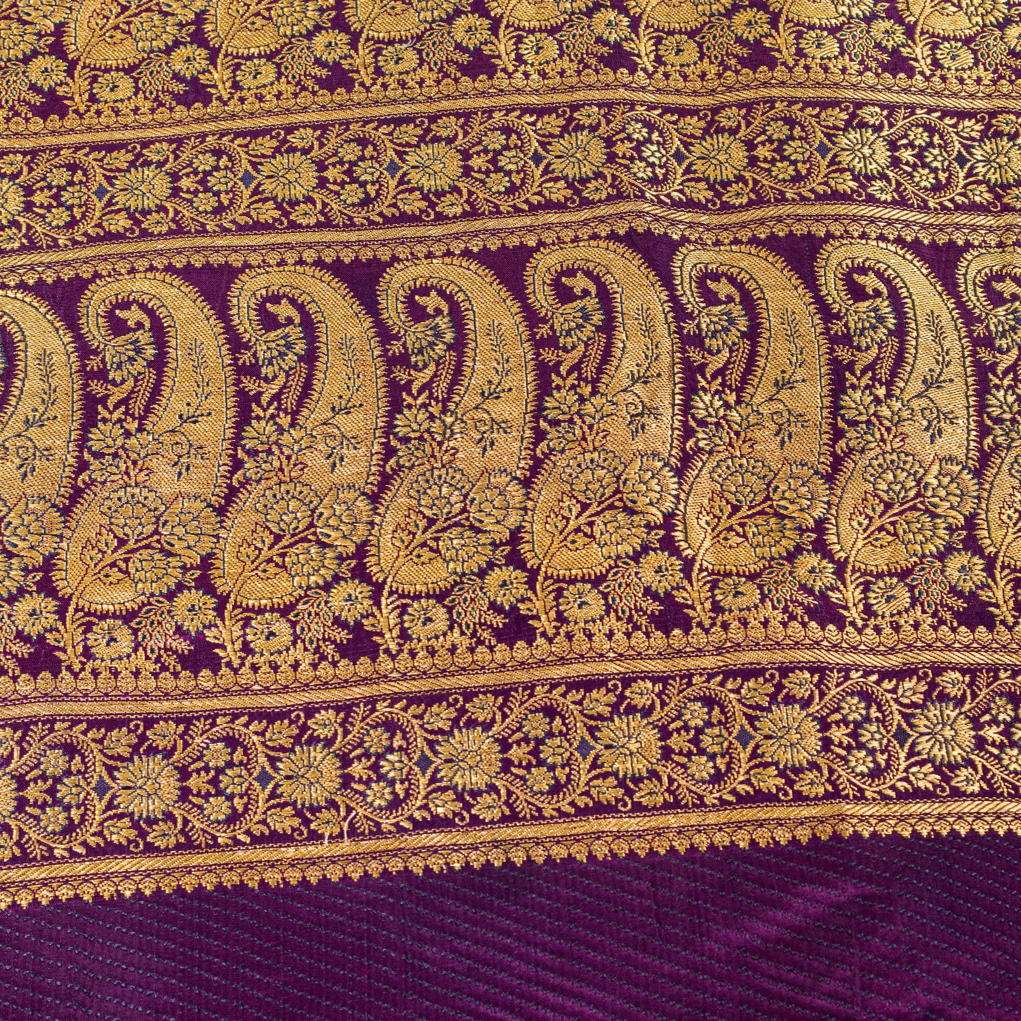 • Premium Fabric: Crafted from 100% pure satin silk, offering a luxurious feel and rich, smooth texture. • Authentic Handloom: A genuine hand woven Banarasi masterpiece, showcasing traditional artisan craftsmanship. • Intricate Zari Work: Features beautiful, detailed pure metallic golden zari woven work and traditional Mughal-inspired floral paisley motifs, typical of Banarasi design. • Vibrant Color: Stunning green & purple color a radiant and festive hue perfect for weddings, parties, or grand celebrations. • Vintage Appeal: This piece has a timeless, vintage elegance, making it a potential heirloom item. • Uses: Ideal for craft projects, dressmaking, costume design, and upcycling • Eco-Friendly: Repurposed from vintage Indian sarees – sustainable craft trim • Condition: Vintage condition – may have minor wear, adds to its charm • Perfect For: Home décor accents, accessories, ethnic wear embellishments & DIY projects • Length: 5+ Yards (approx.) • Width: Approx. 1+ Yards. • Care Instructions: Dry Clean Only recommended to maintain the fabric's integrity and luster. THE ITEM COLOR OR SHADE MAY BE DARKER OR LIGHTER THAN THE PICTURE.' International buyers please note: Import duties, taxes, and charges are not included in the item price or postage cost. Buyer will pay custom duty/tax,VAT, and any applicable charges at the time of delivery. BHS-2909