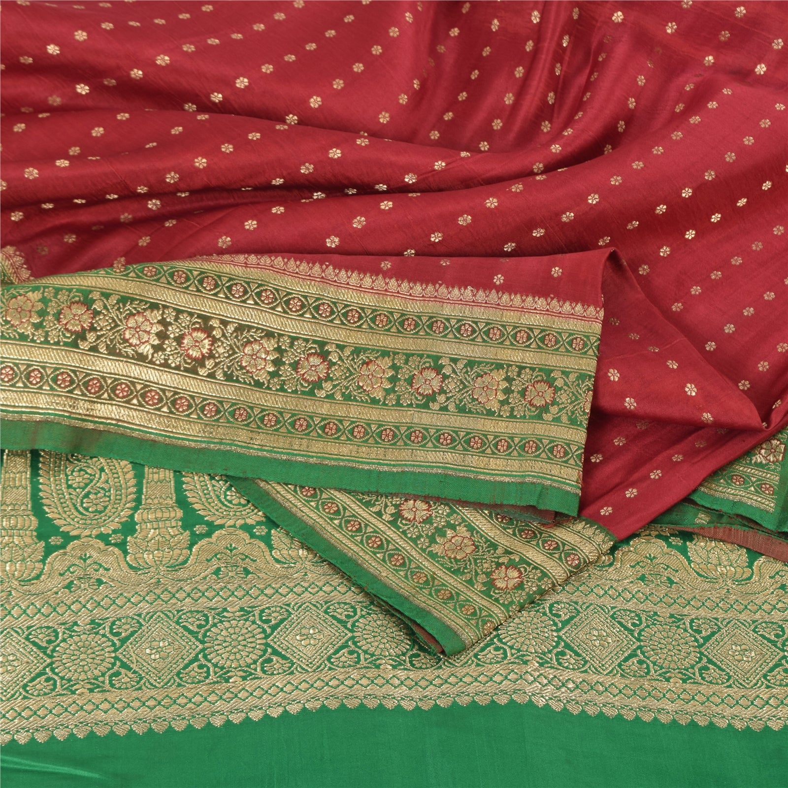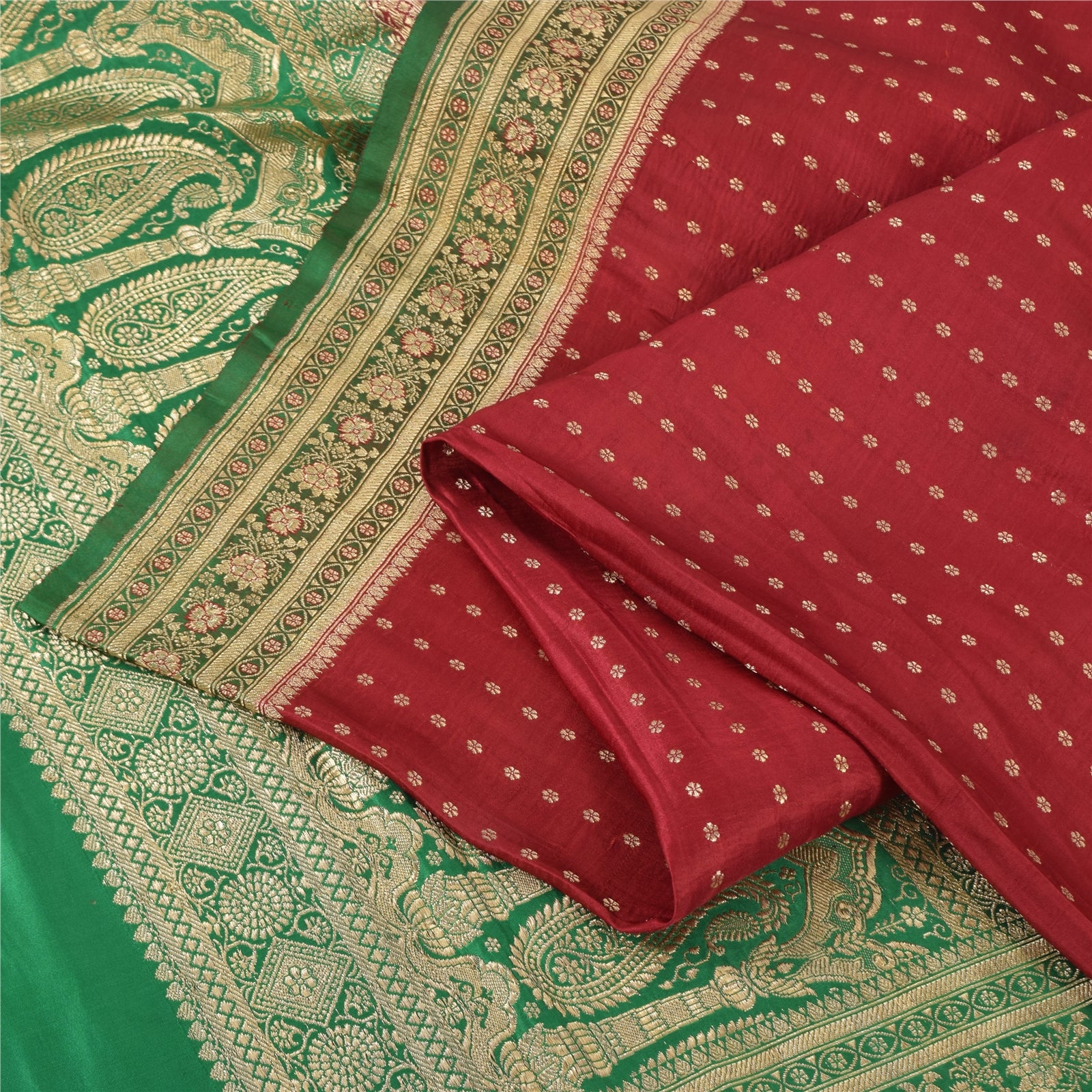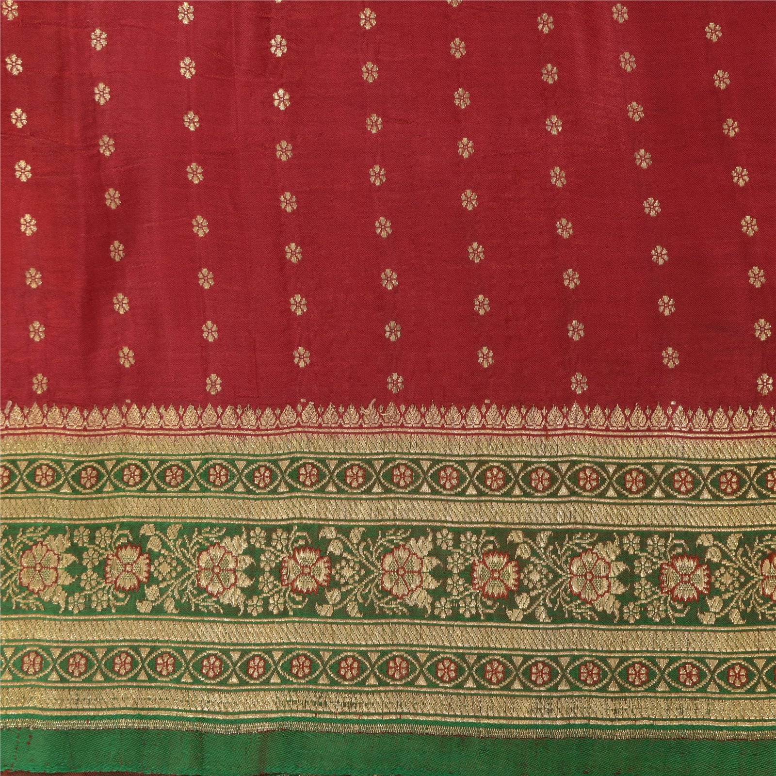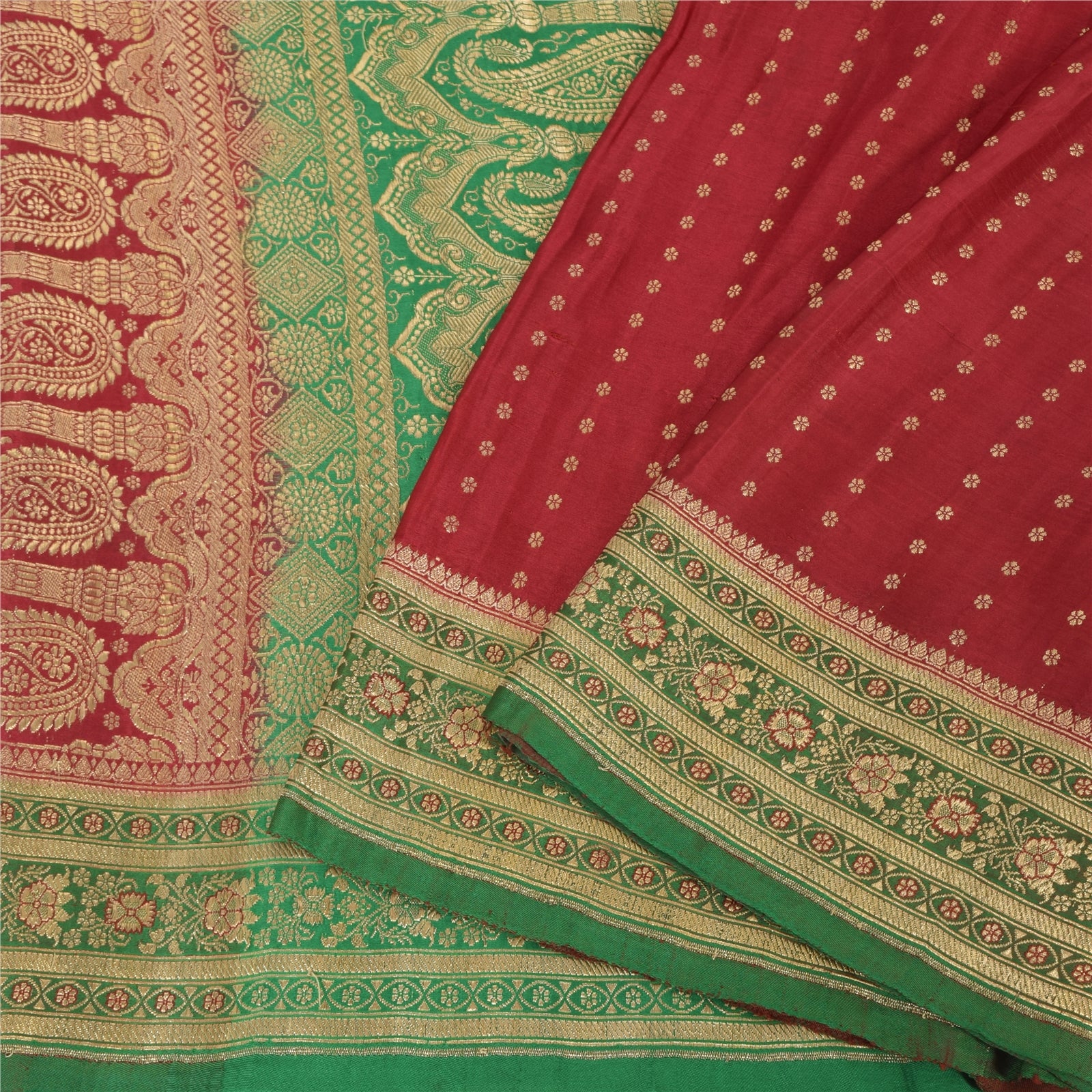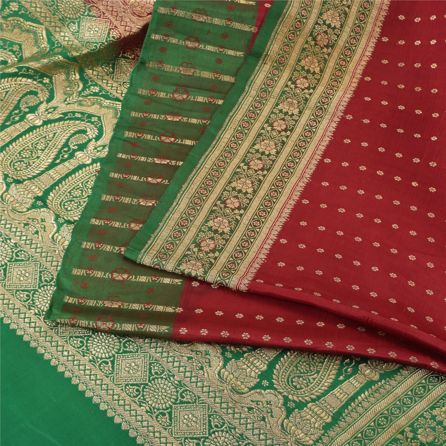 Sanskriti Vintage Green/Red Sarees Pure Silk Brocade/Banarasi Woven Sari Sustainable Fabric
